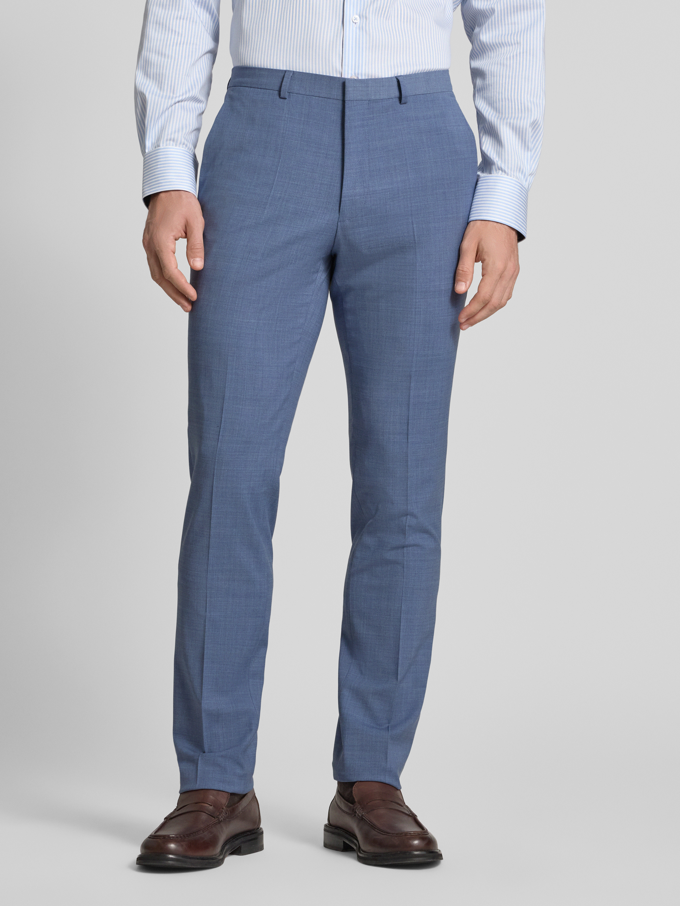HUGOSlim fit pantalon van wolmix, model 'HESTEN' in lichtblauw