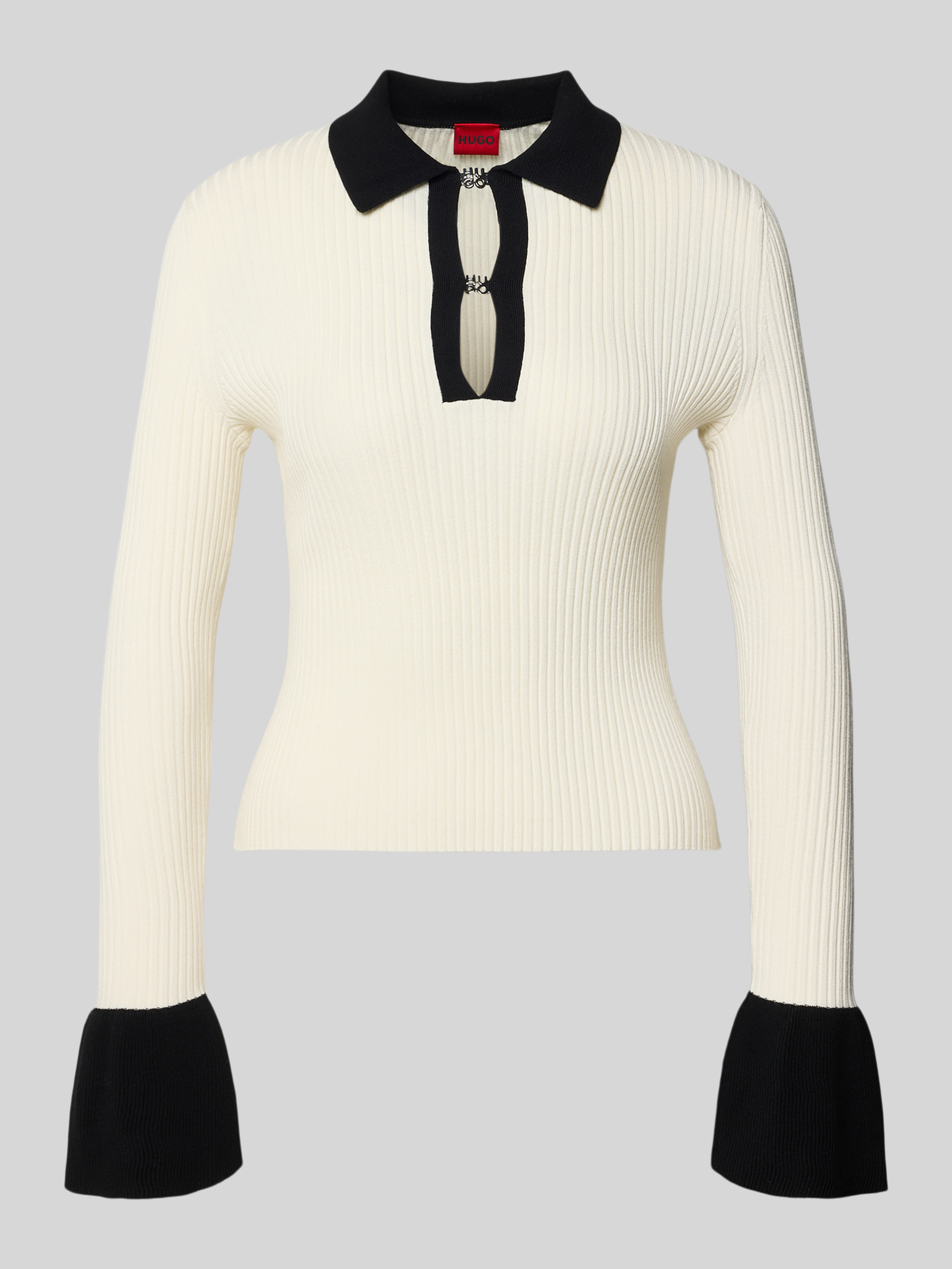 Slim fit poloshirt van viscosemix, model 'SHARRO' in offwhite