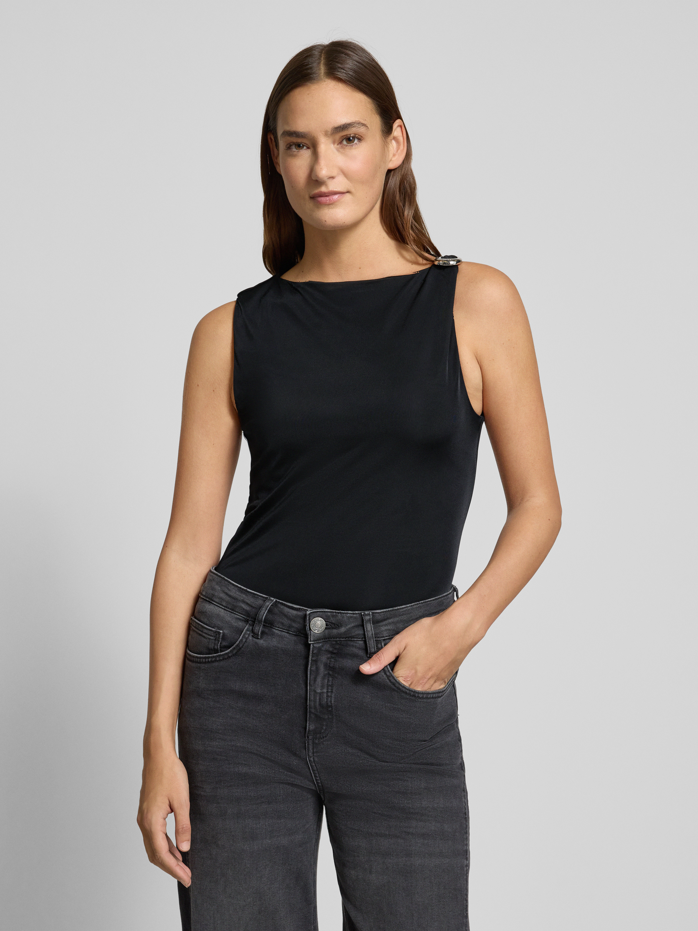 HUGOSlim fit top van pure viscose, model 'DASTASY' in zwart