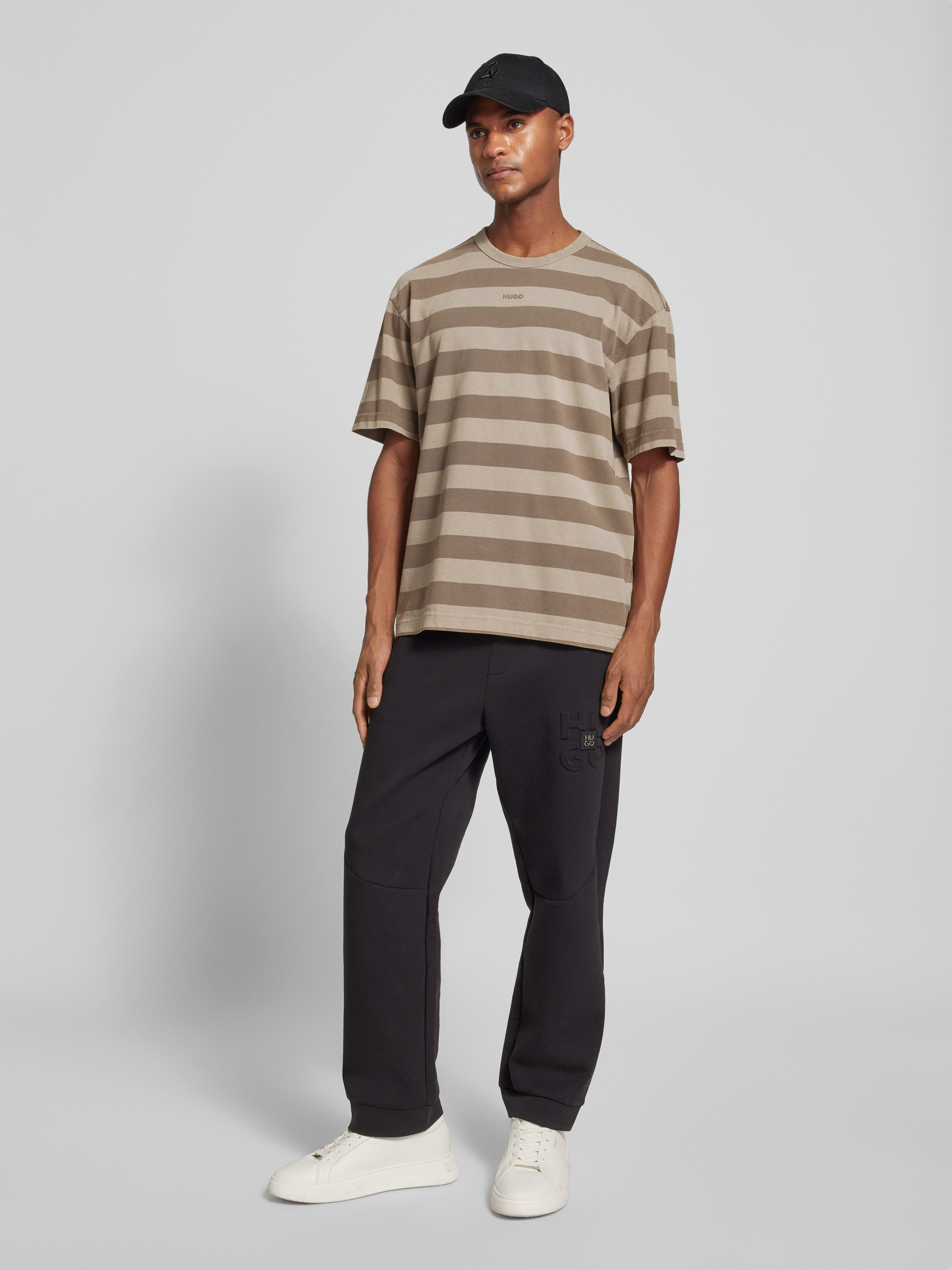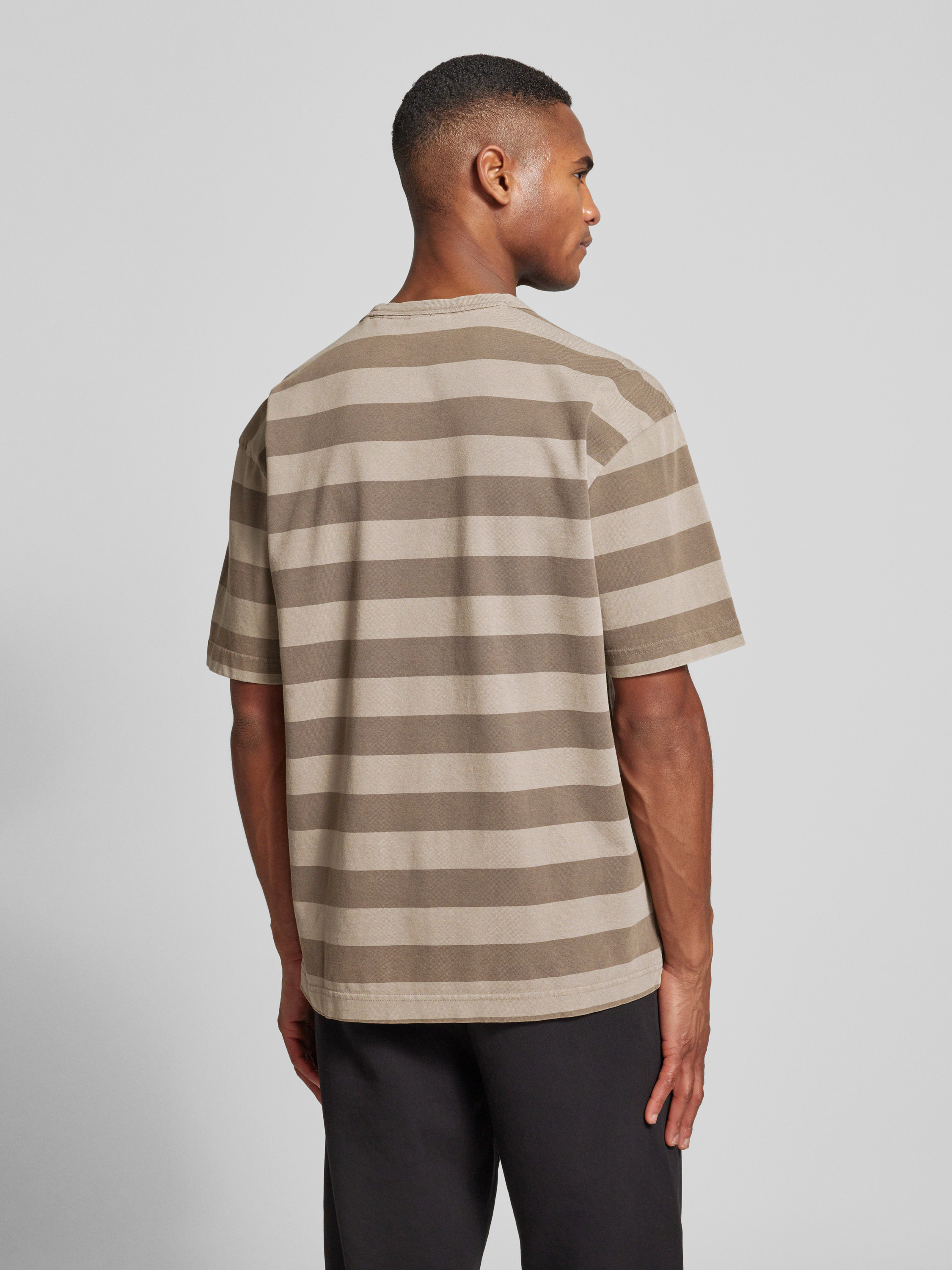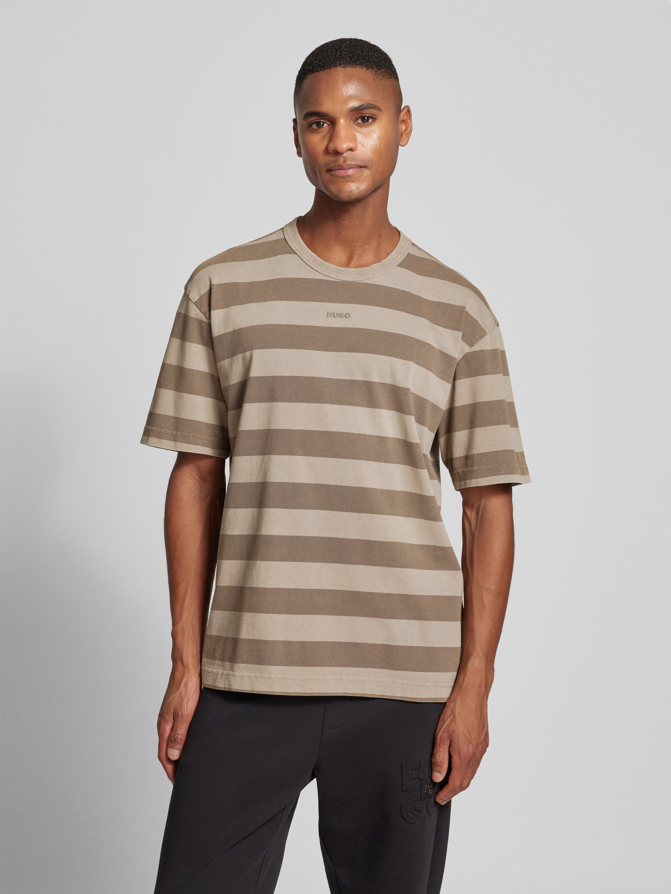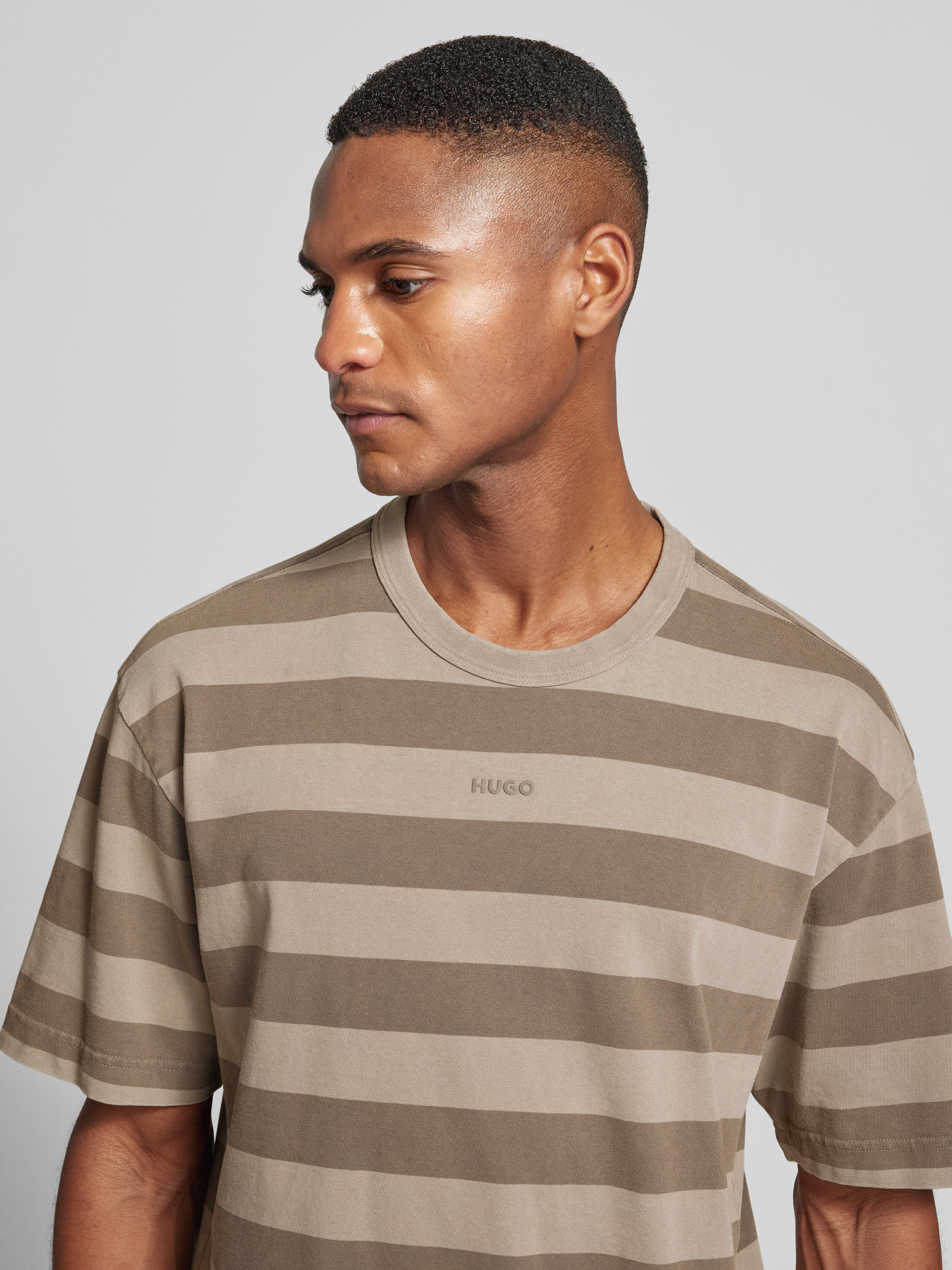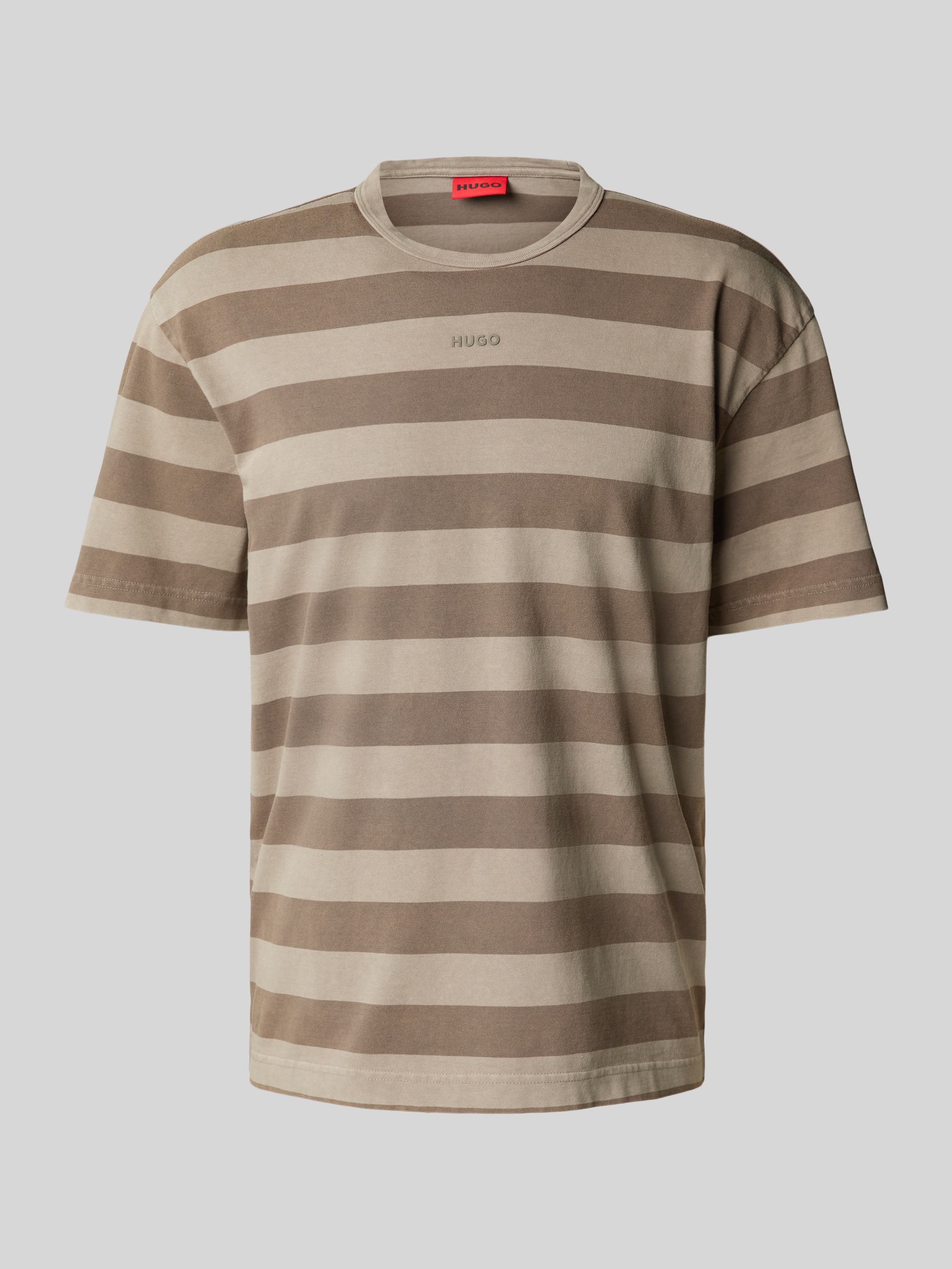 T-shirt met geribde ronde hals, model 'Dockoe' in lichtbruin
