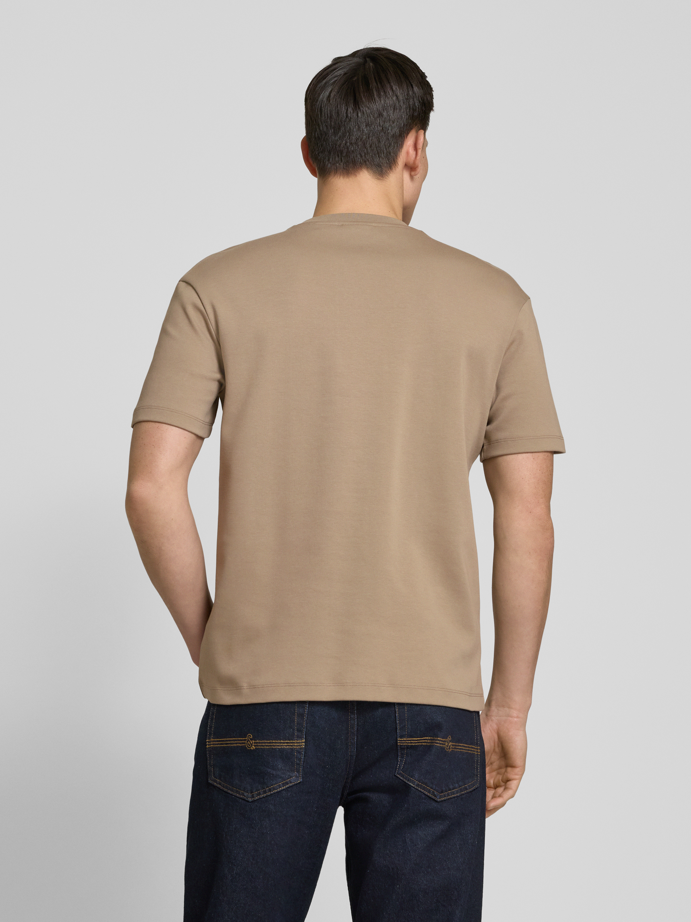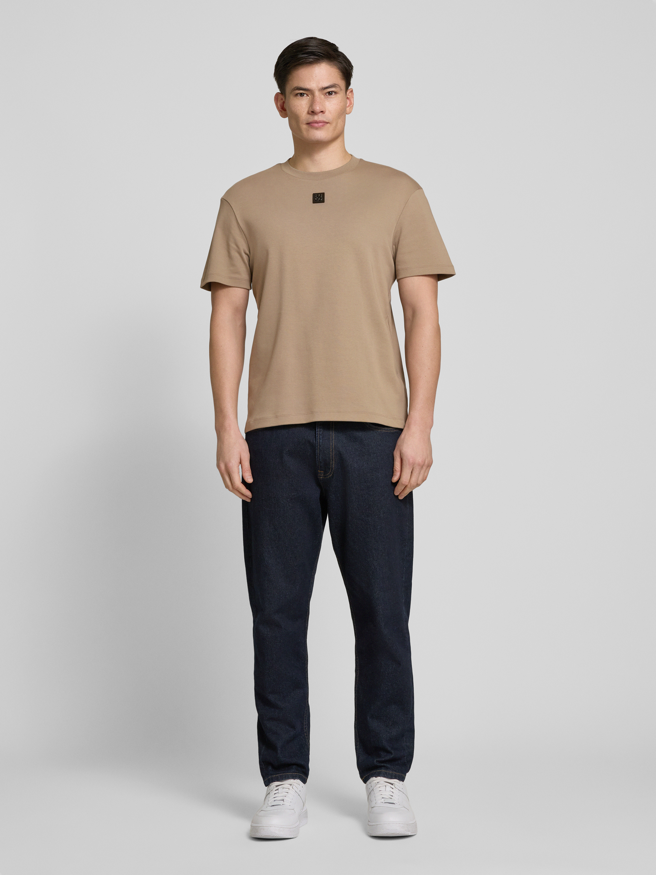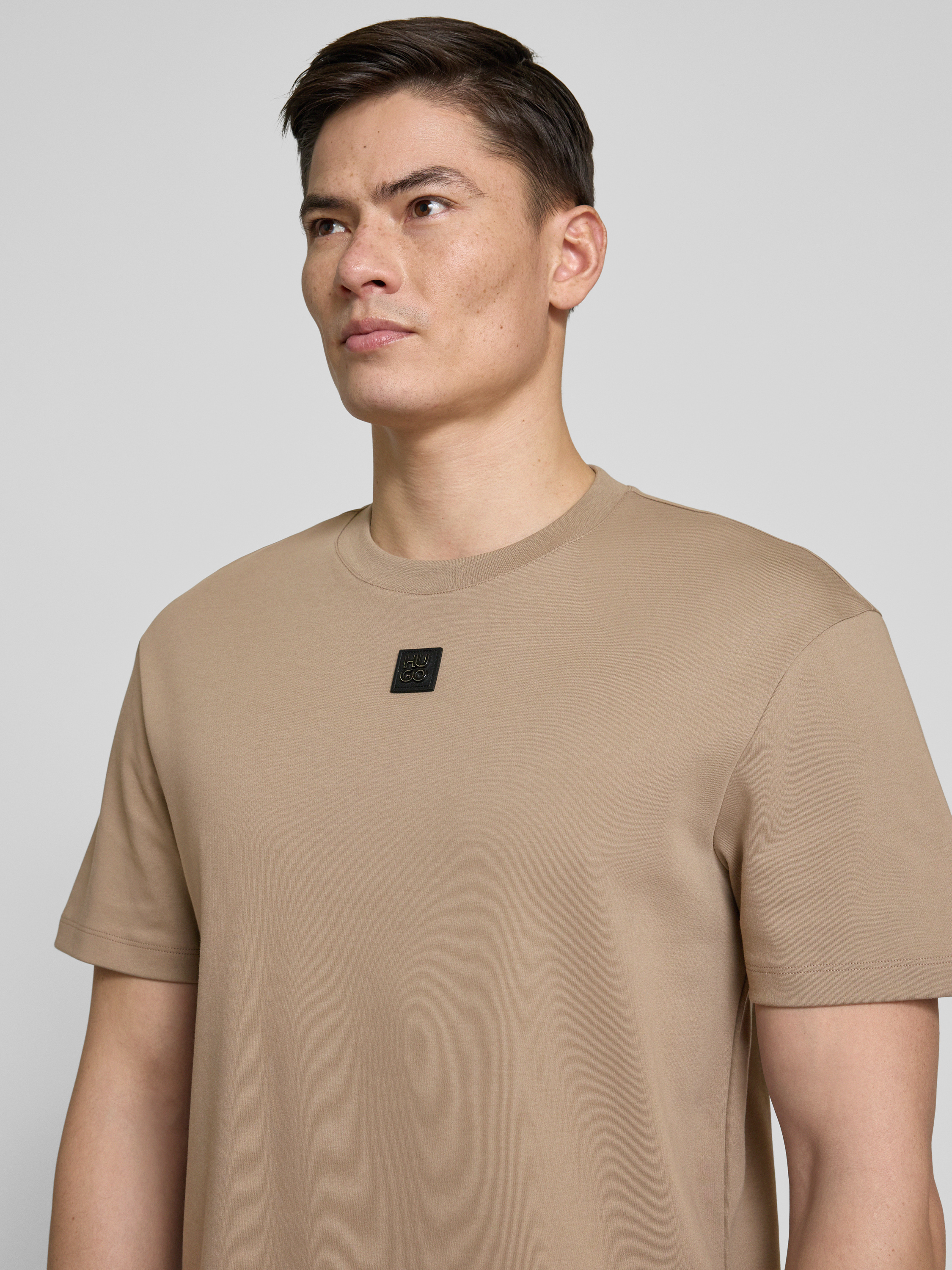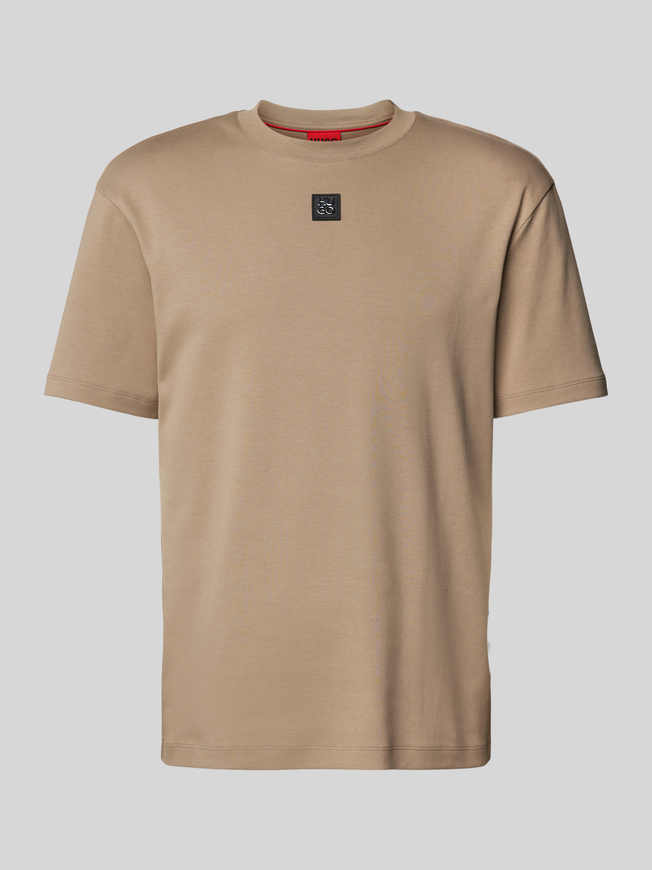HUGOT-shirt met labelpatch, model 'Dalile' in lichtbruin
