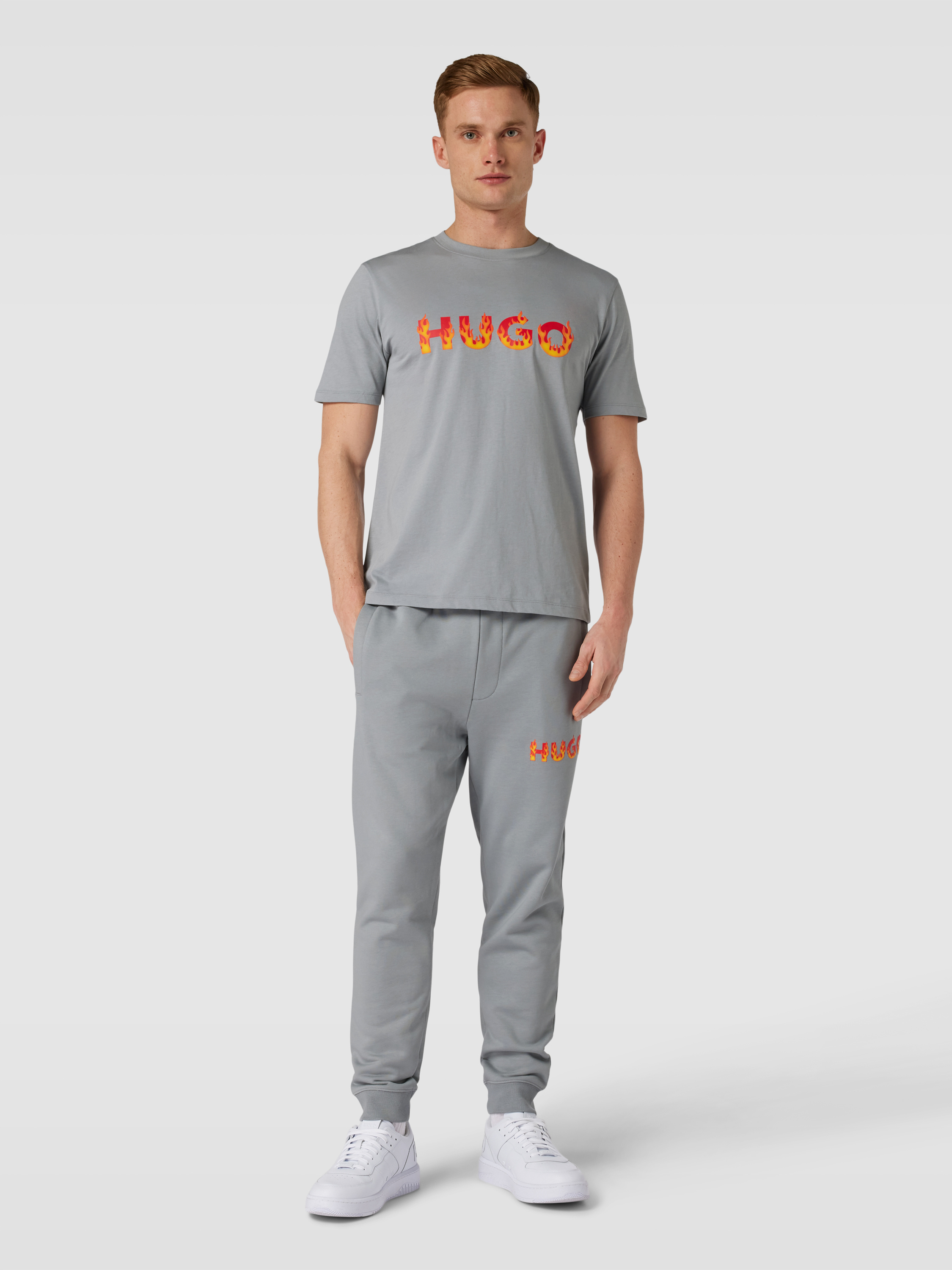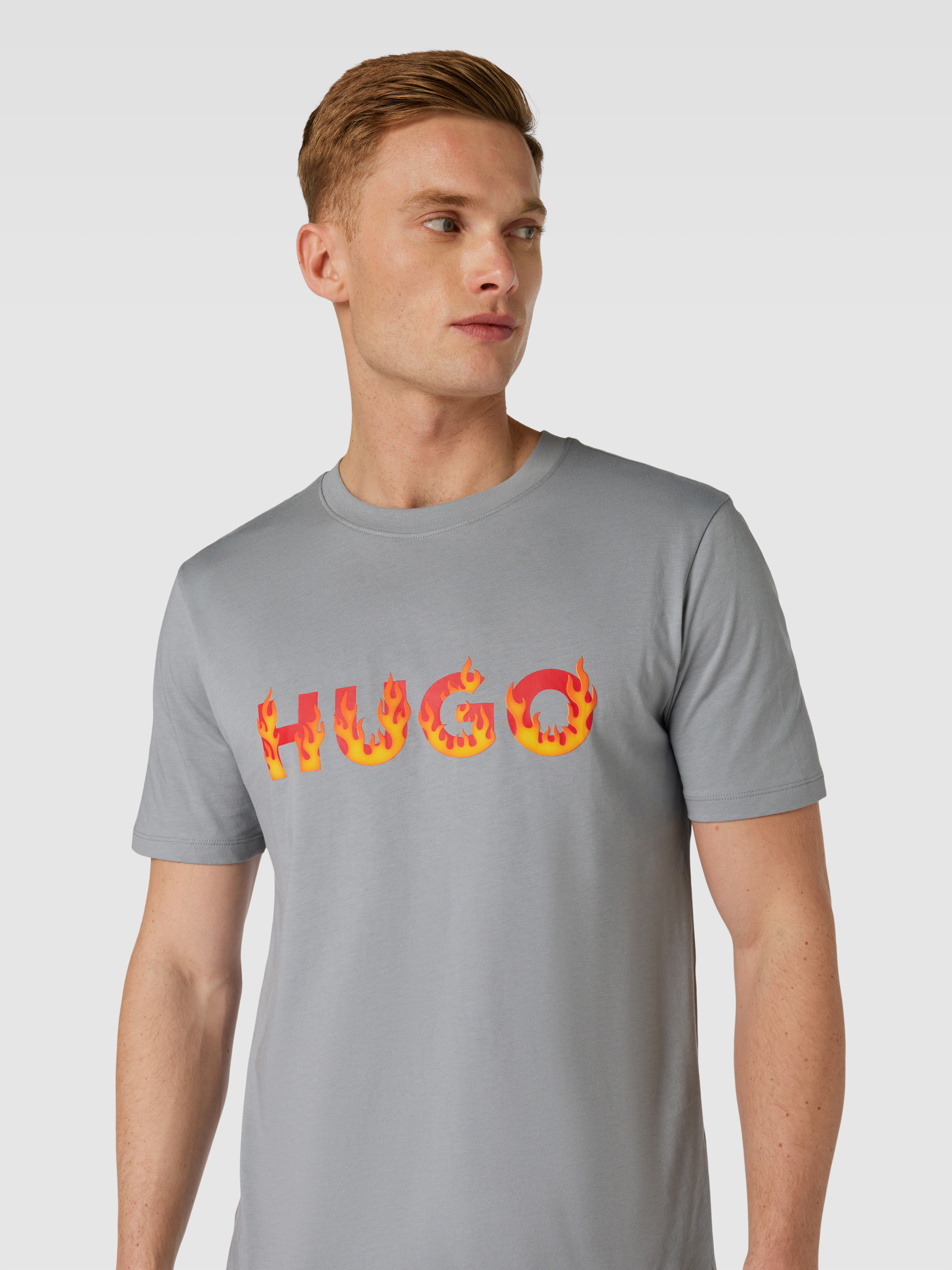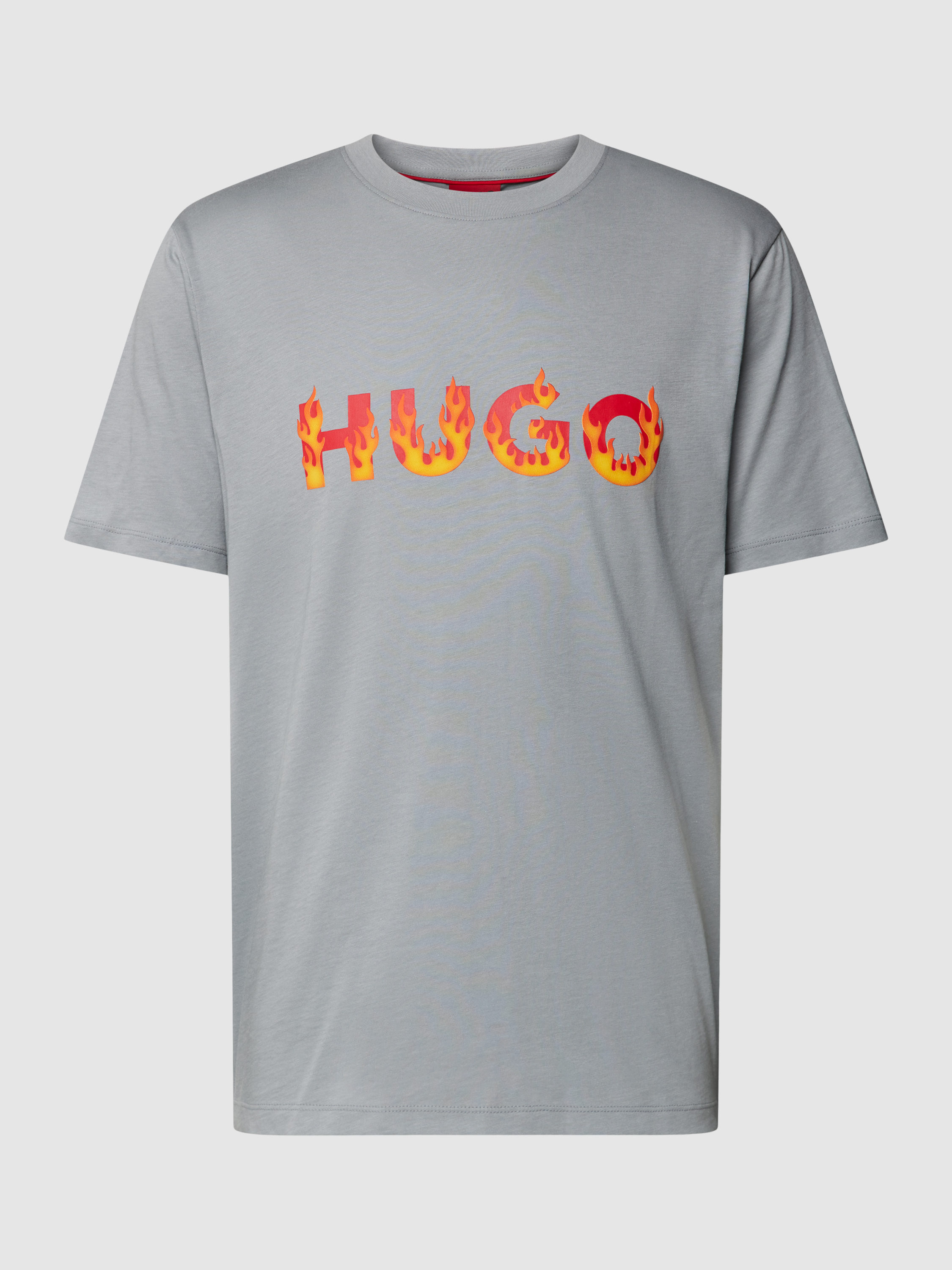 T-shirt met labelprint, model 'Danda' in steengrijs