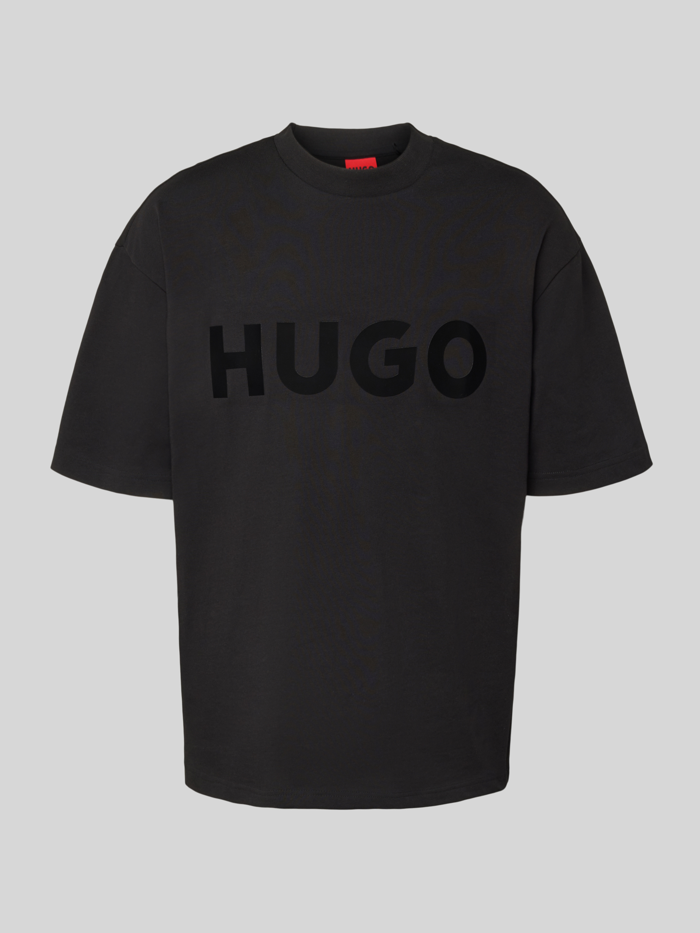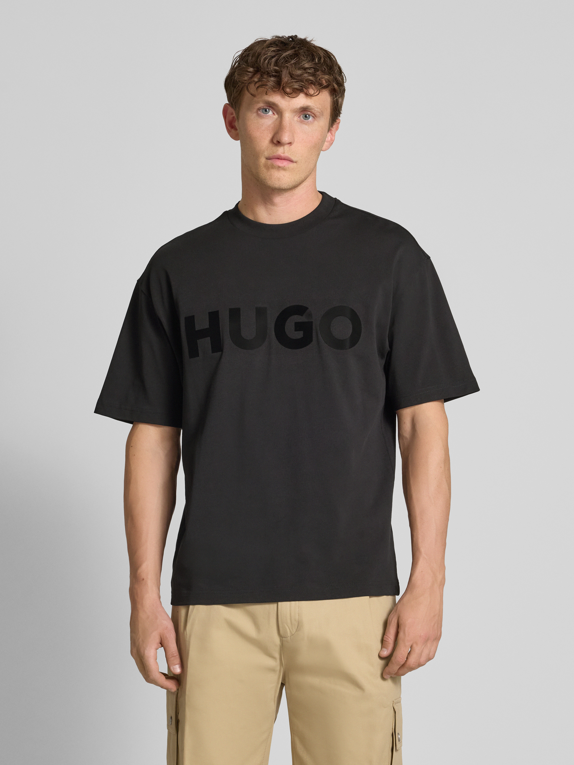 T-shirt met labelprint, model 'Dinkee' in zwart