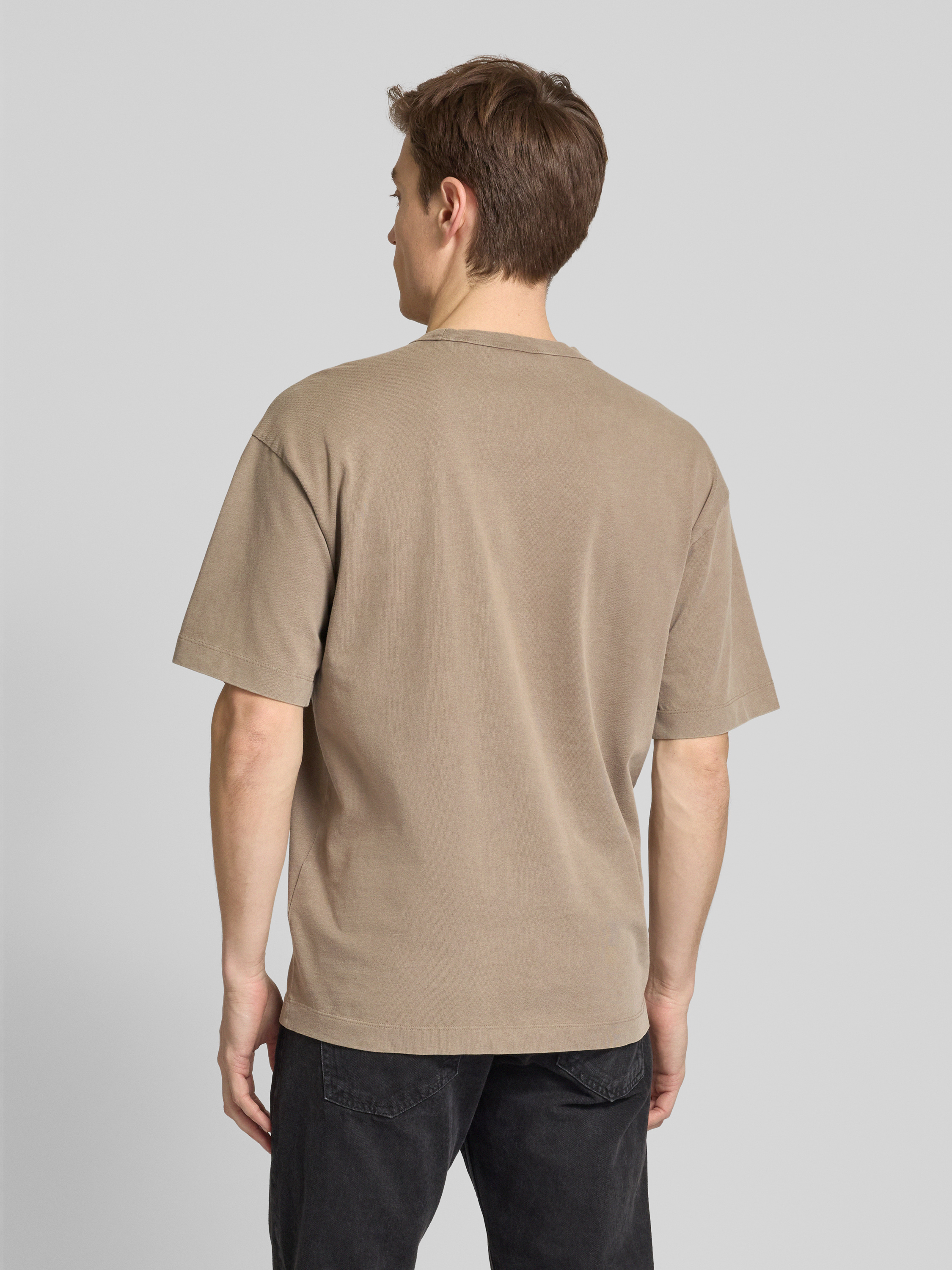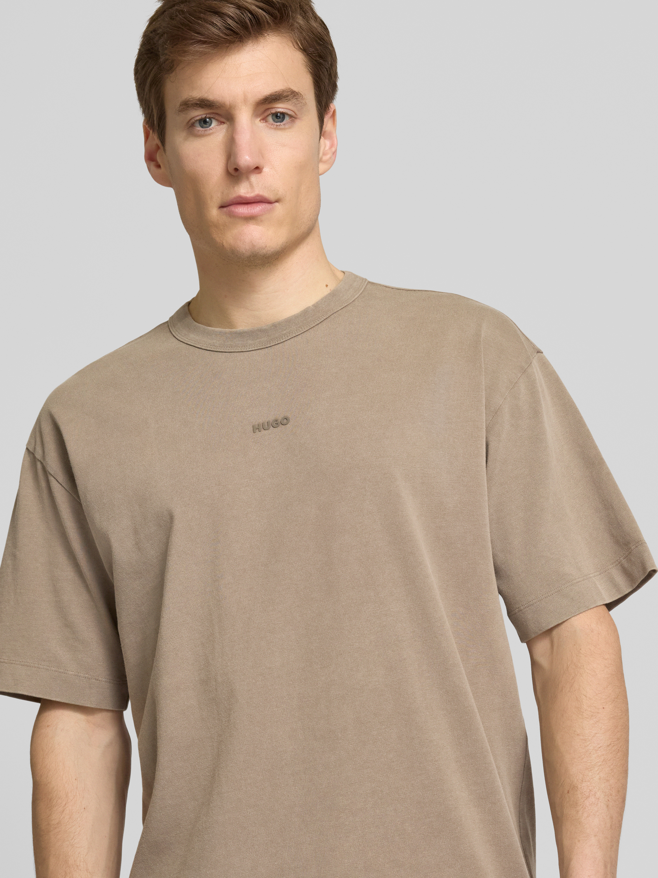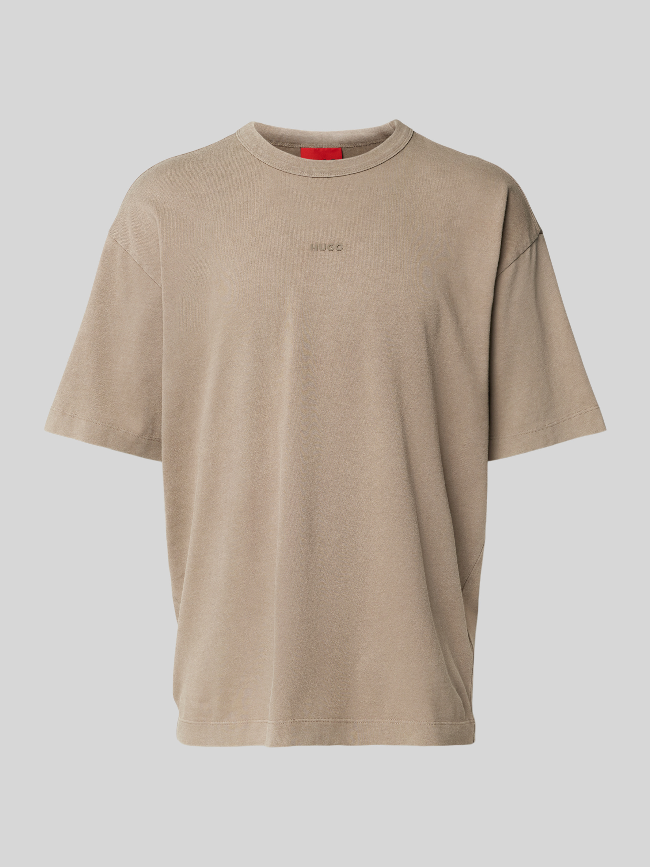 T-shirt met labelprint, model 'Docku' in lichtbruin