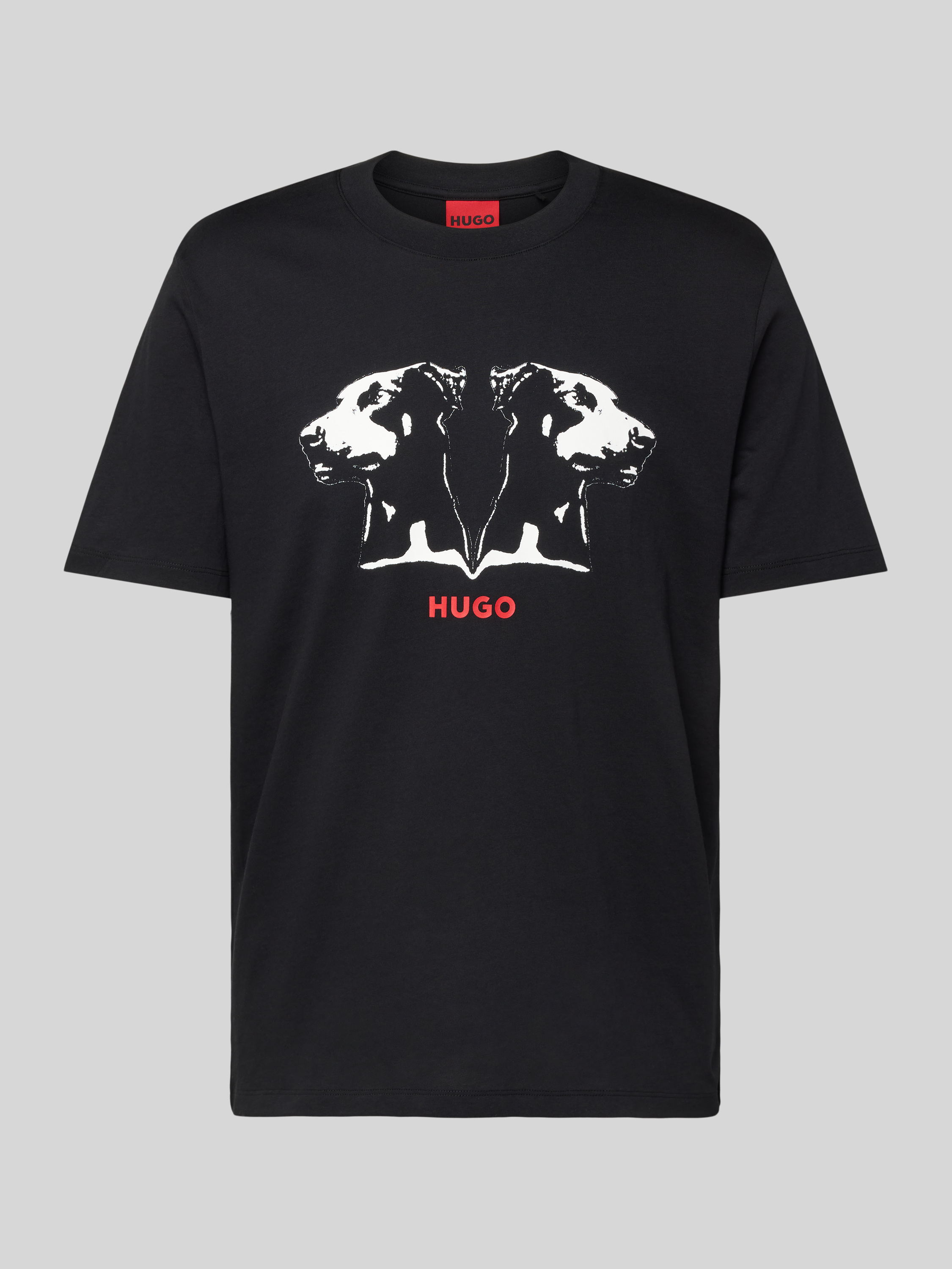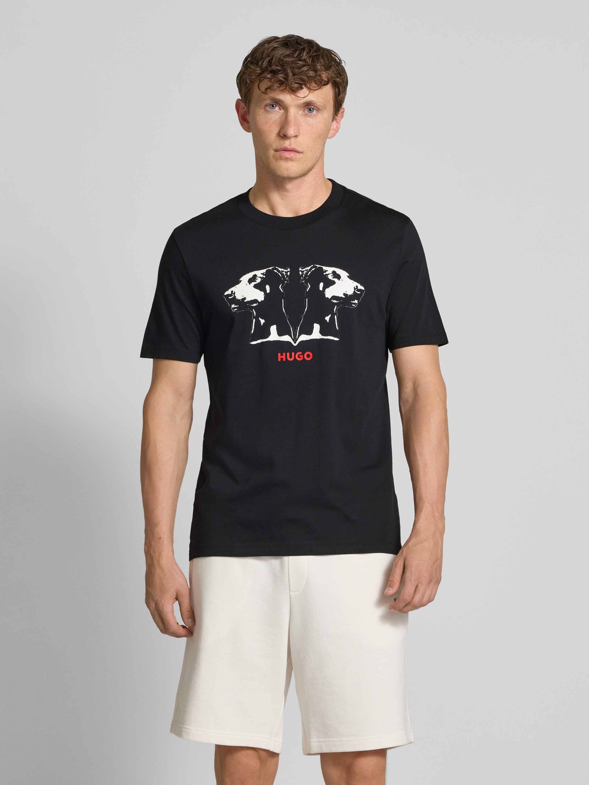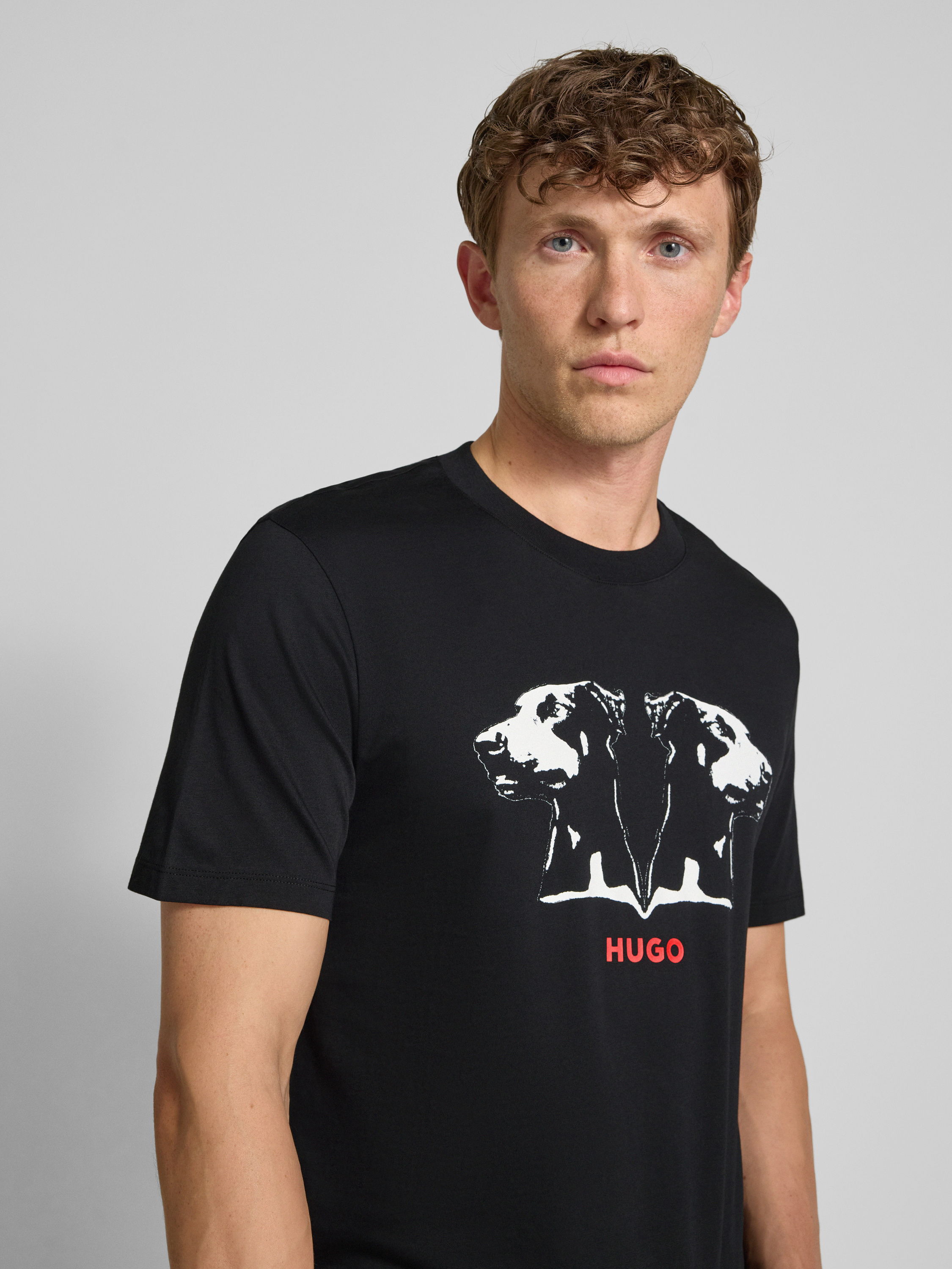 T-shirt met motief- en labelprint, model 'Dobero' in zwart