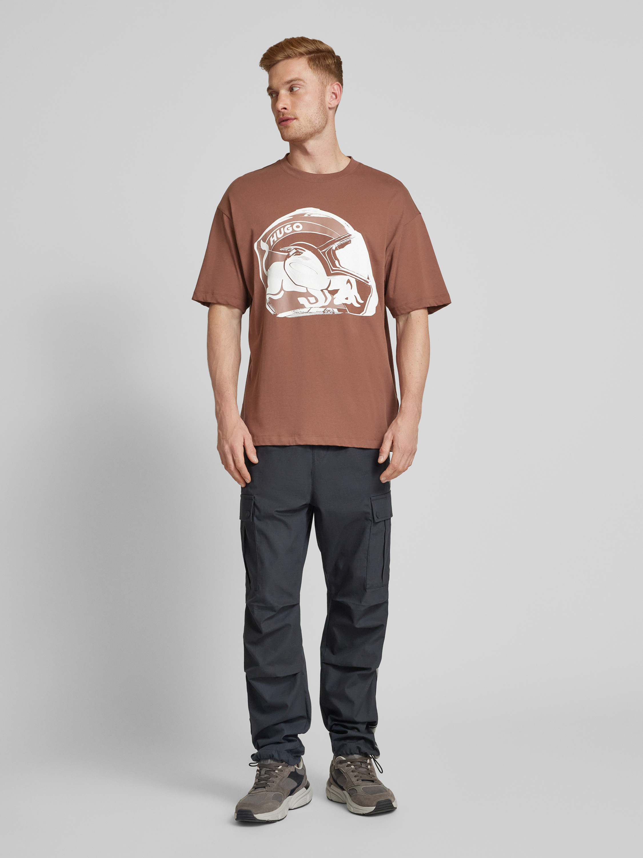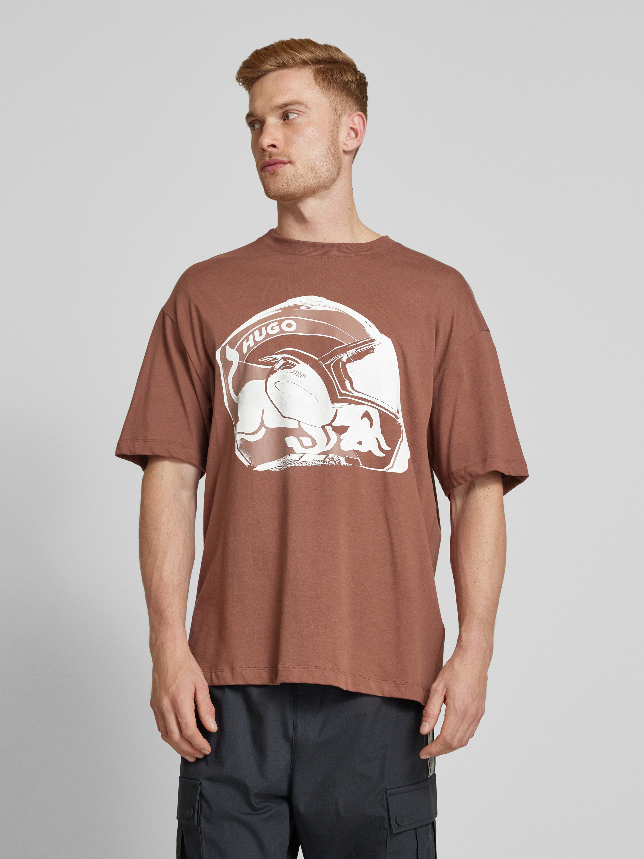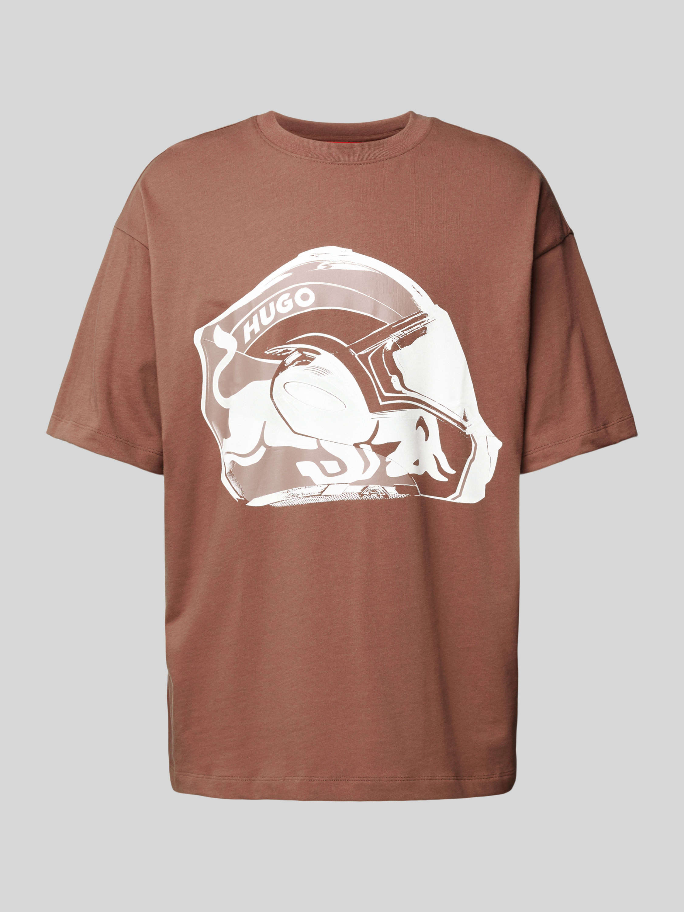 T-shirt met ronde hals, model 'Dit' in lichtbruin