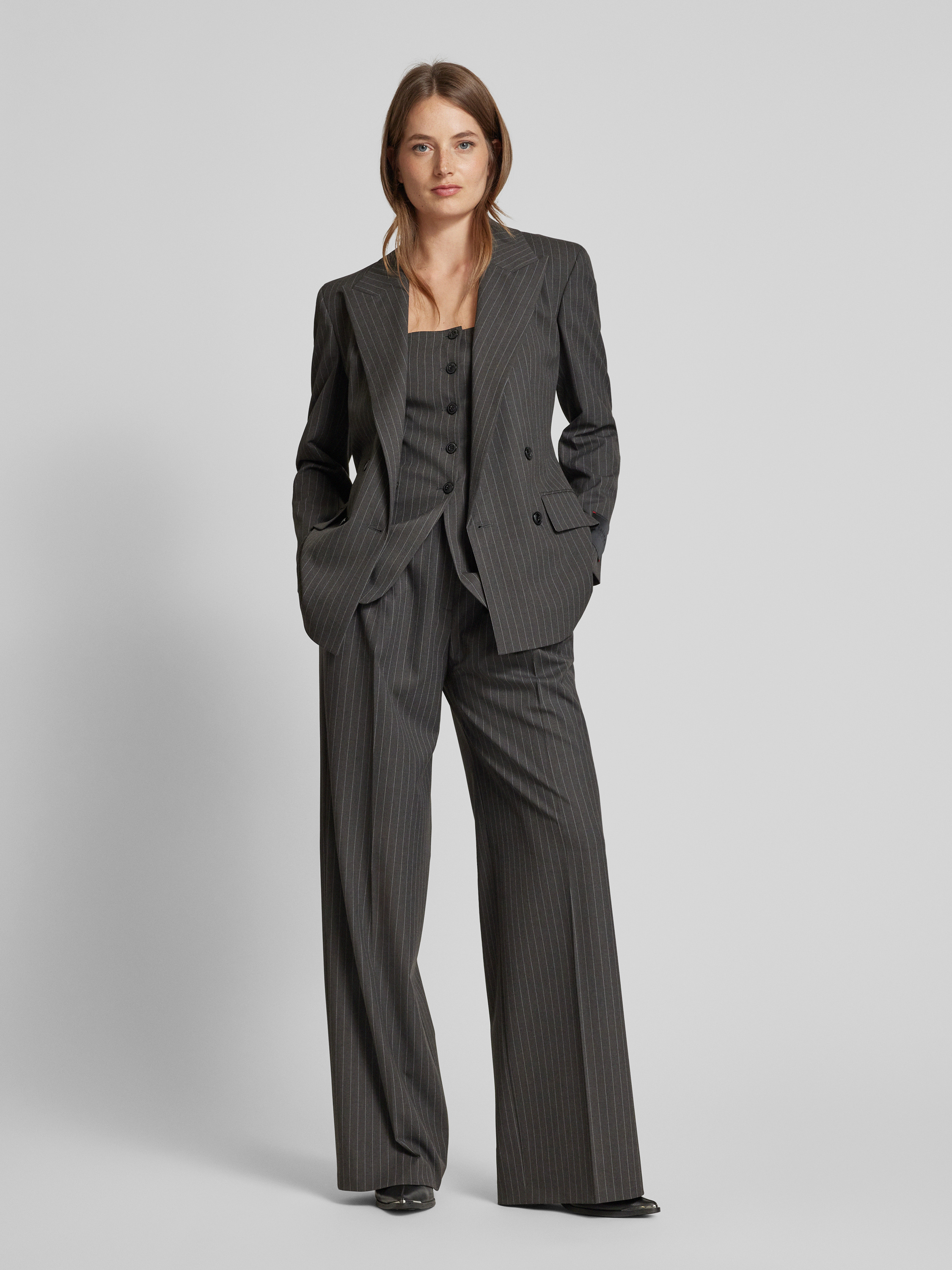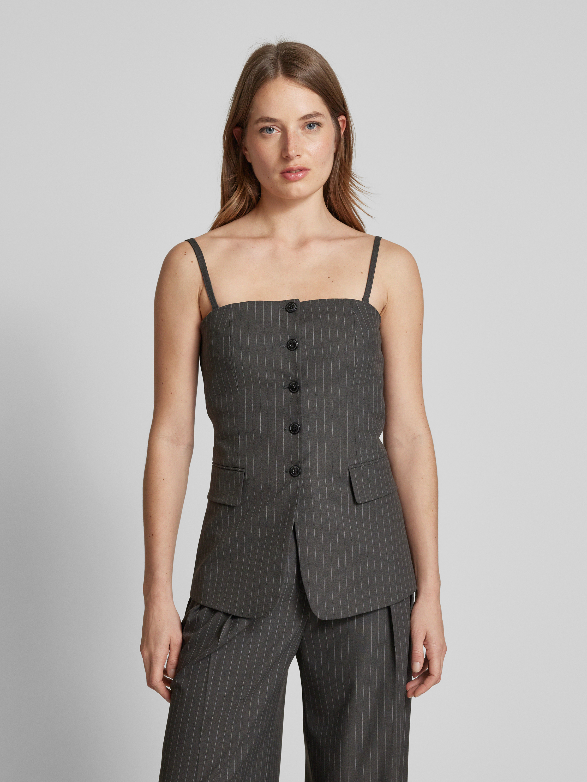 HUGOTop met spaghettibandjes, model 'Asiane' in donkergrijs