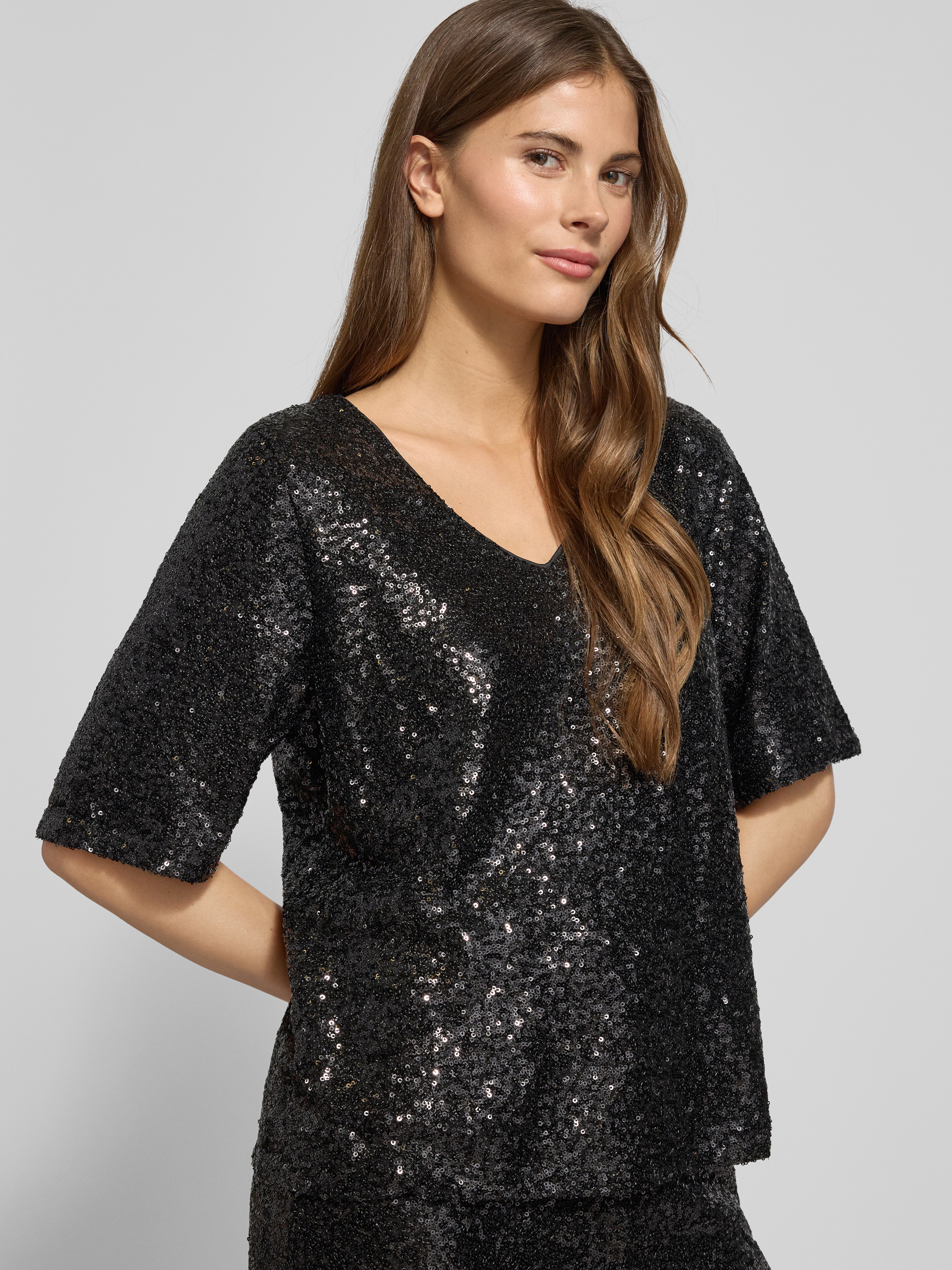 Wide fit stoffen broek met all-over pailletten, model 'Fauca'
