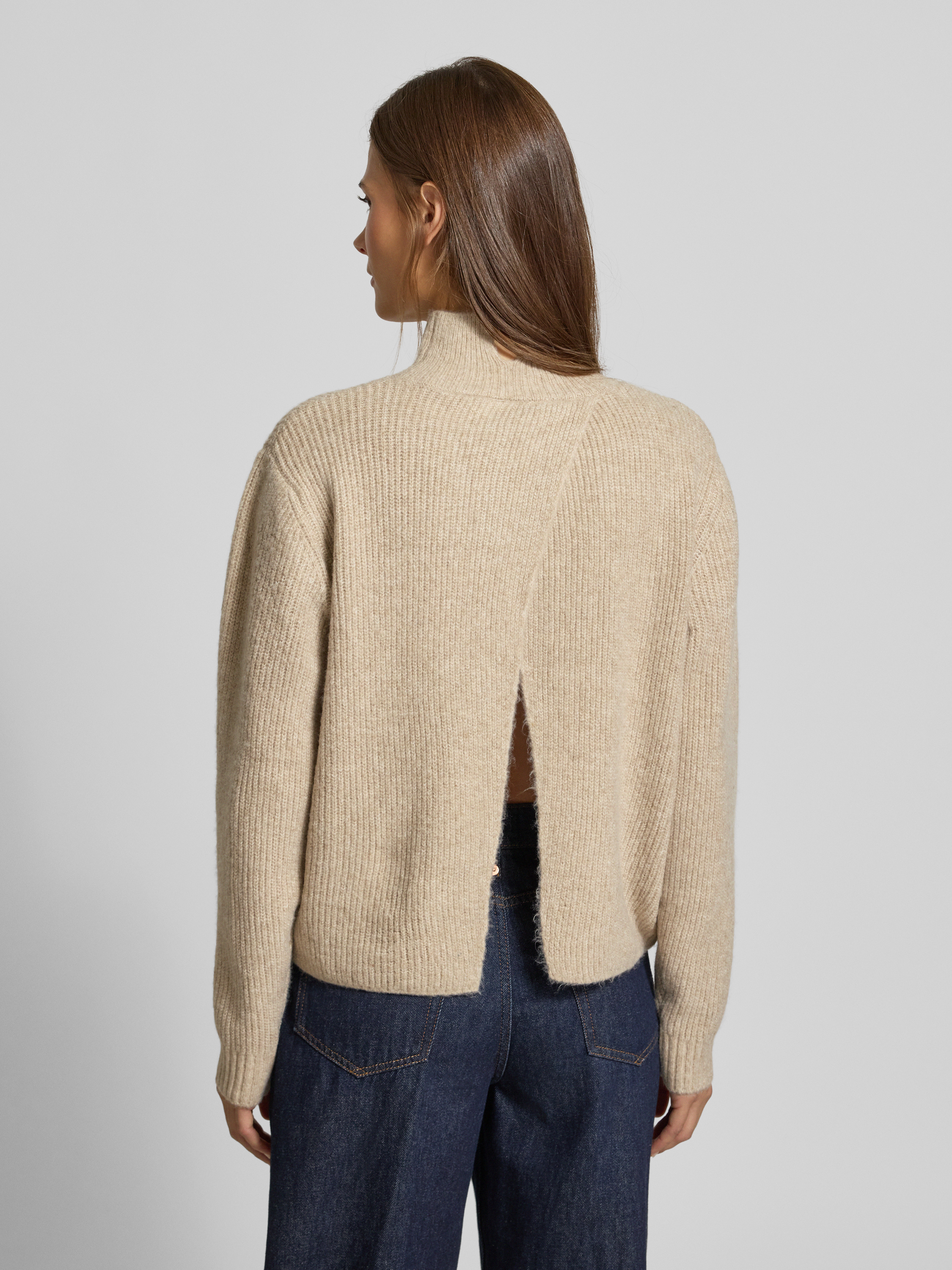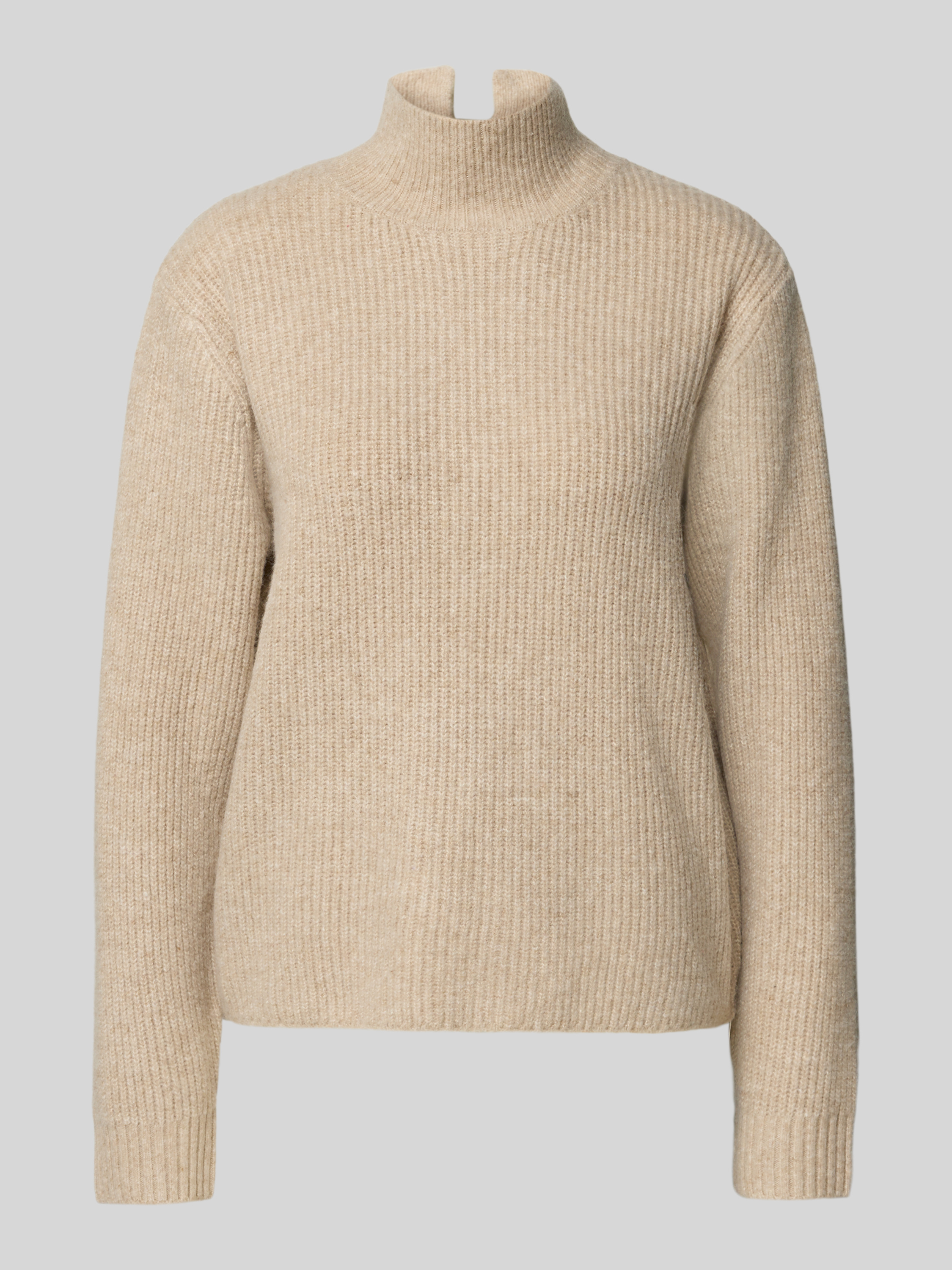 ICHIGebreide pullover met opstaande kraag en extra brede schouders in beige
