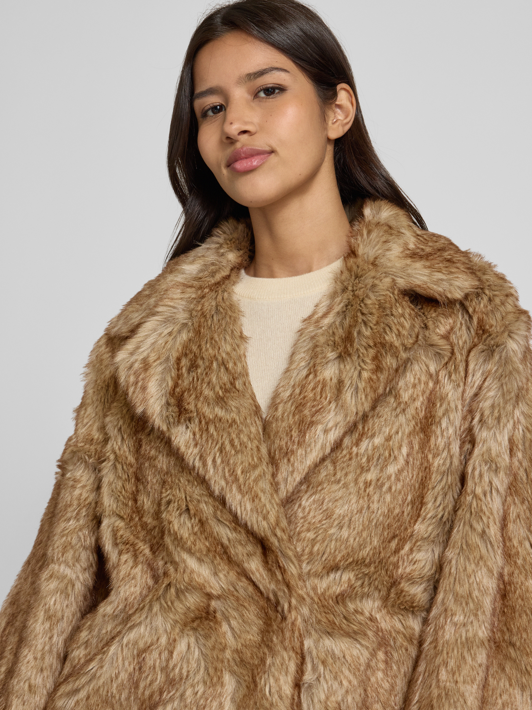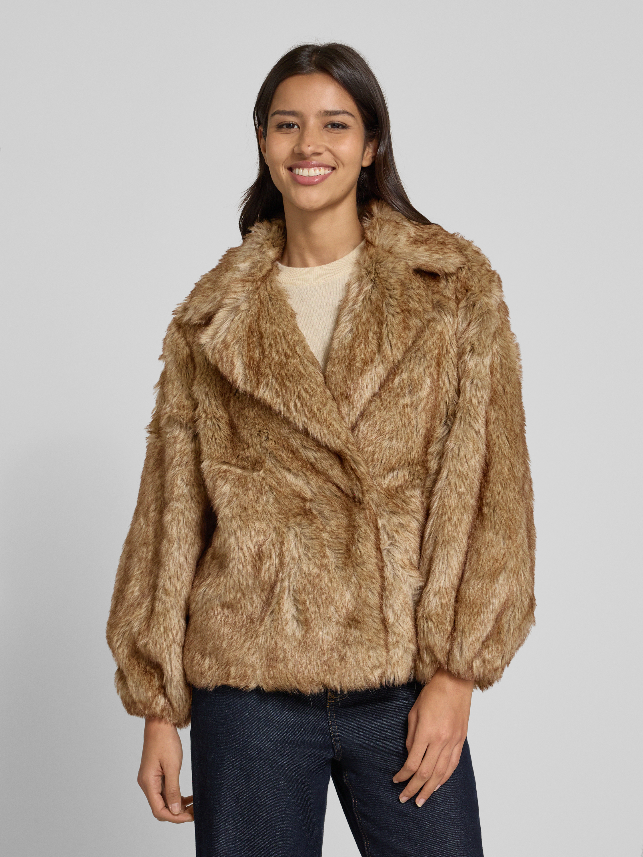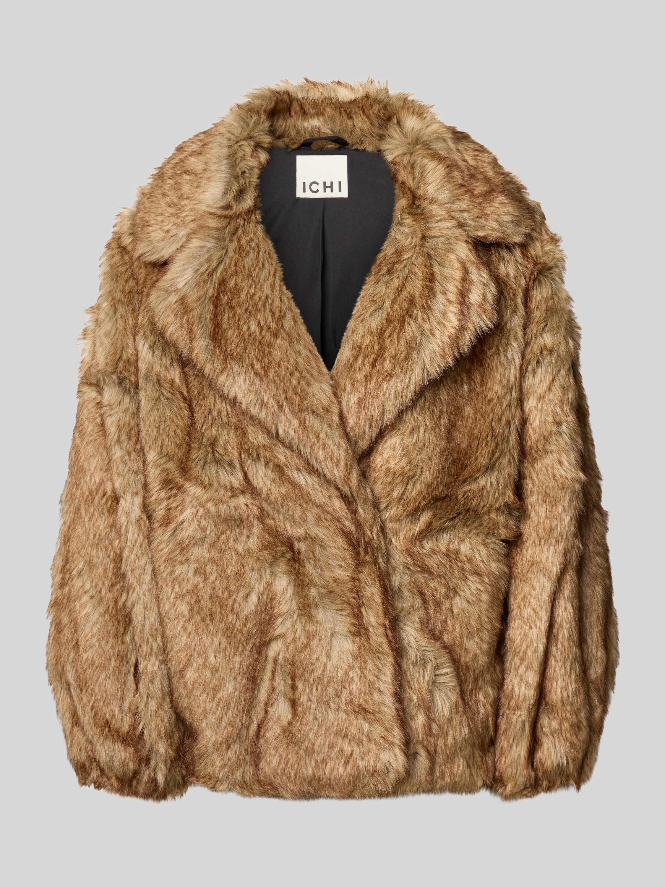 ICHIJack van imitatiebont met reverskraag, model 'FAZOCA' in lichtbruin
