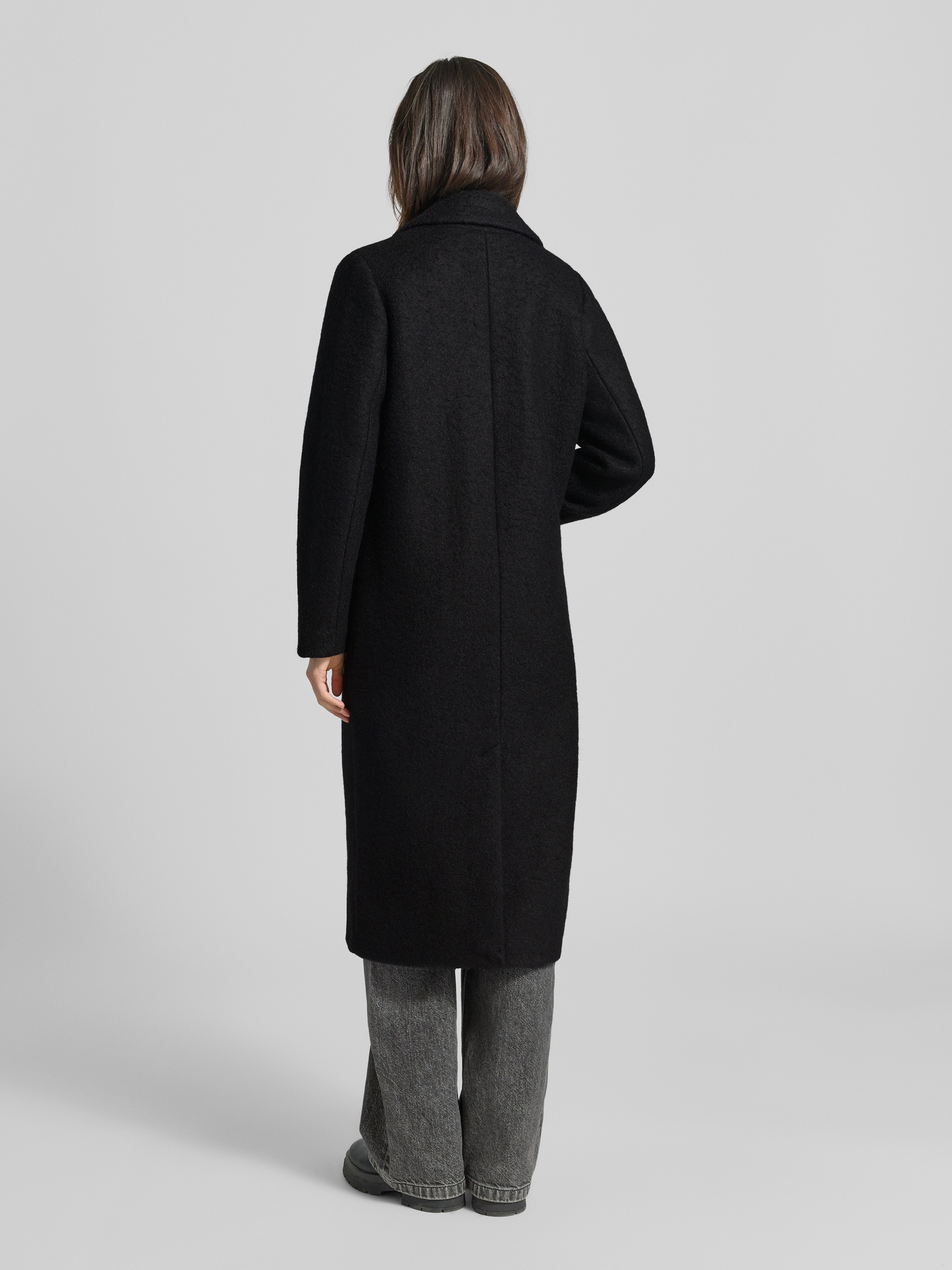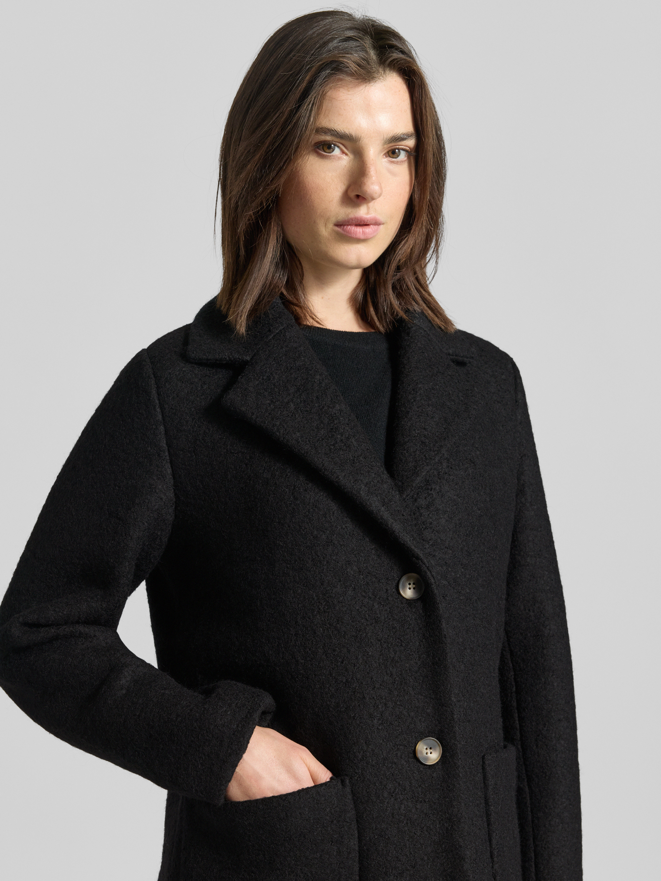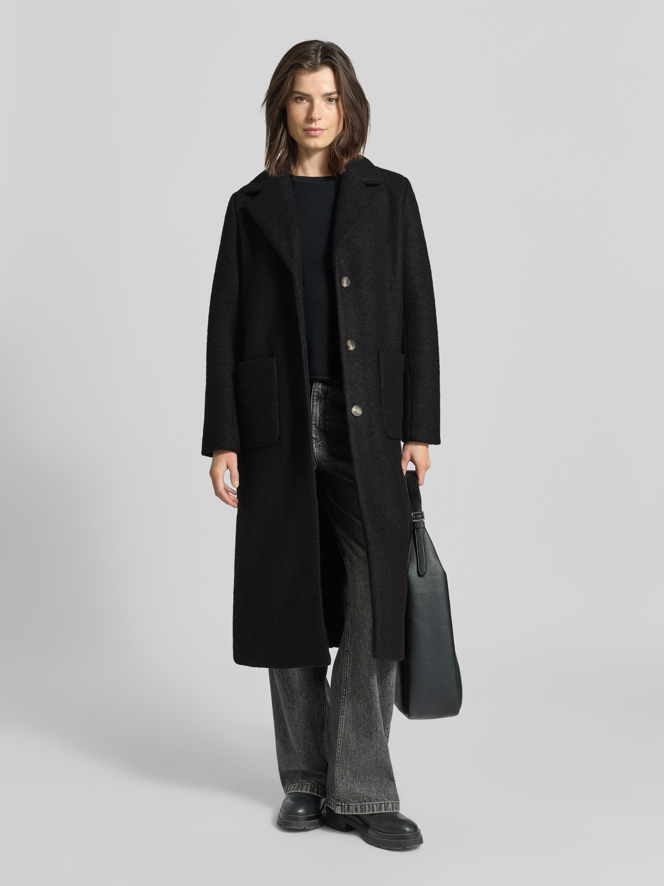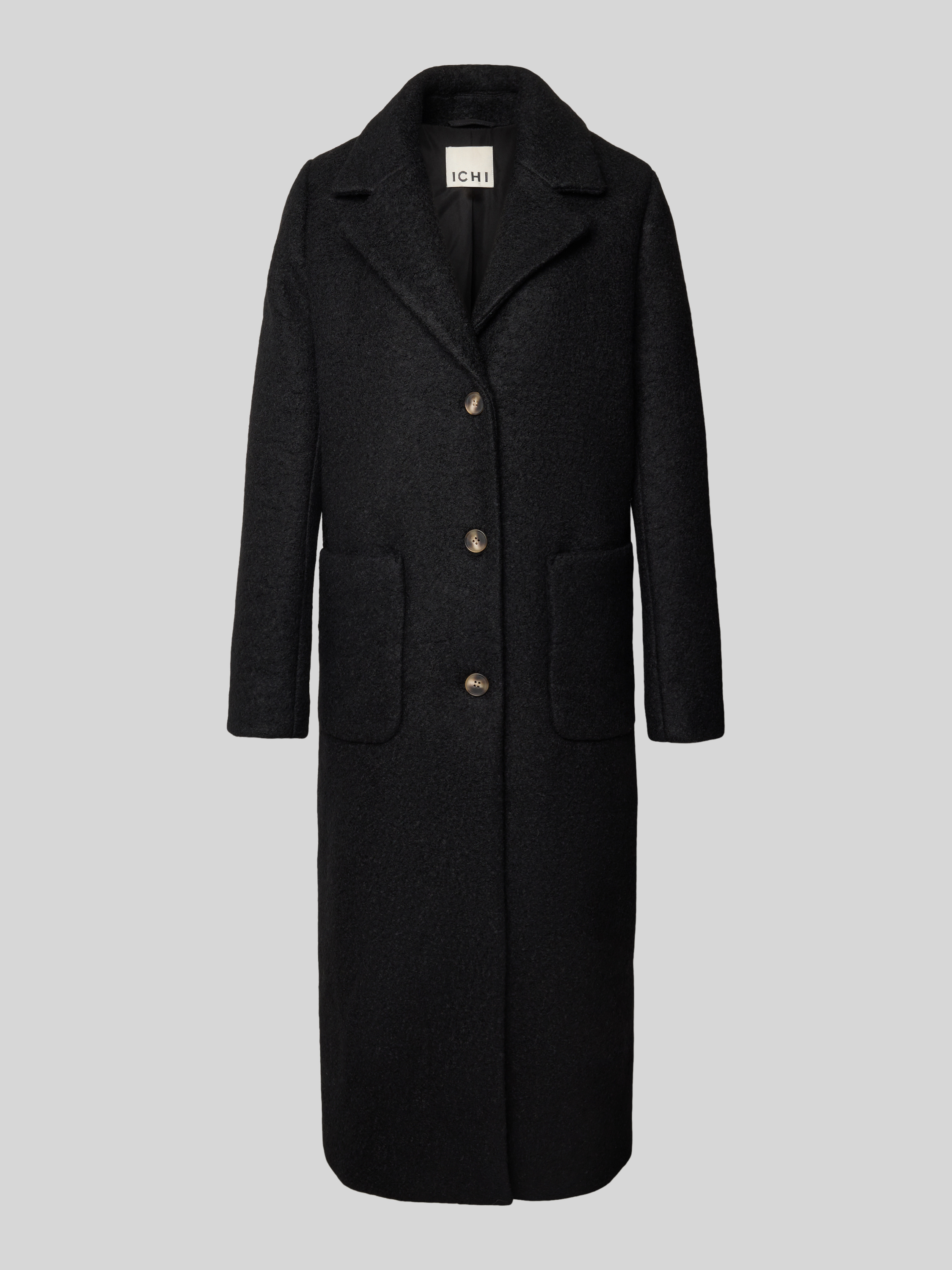 ICHILange jas met reverskraag en opgestikte zakken in zwart