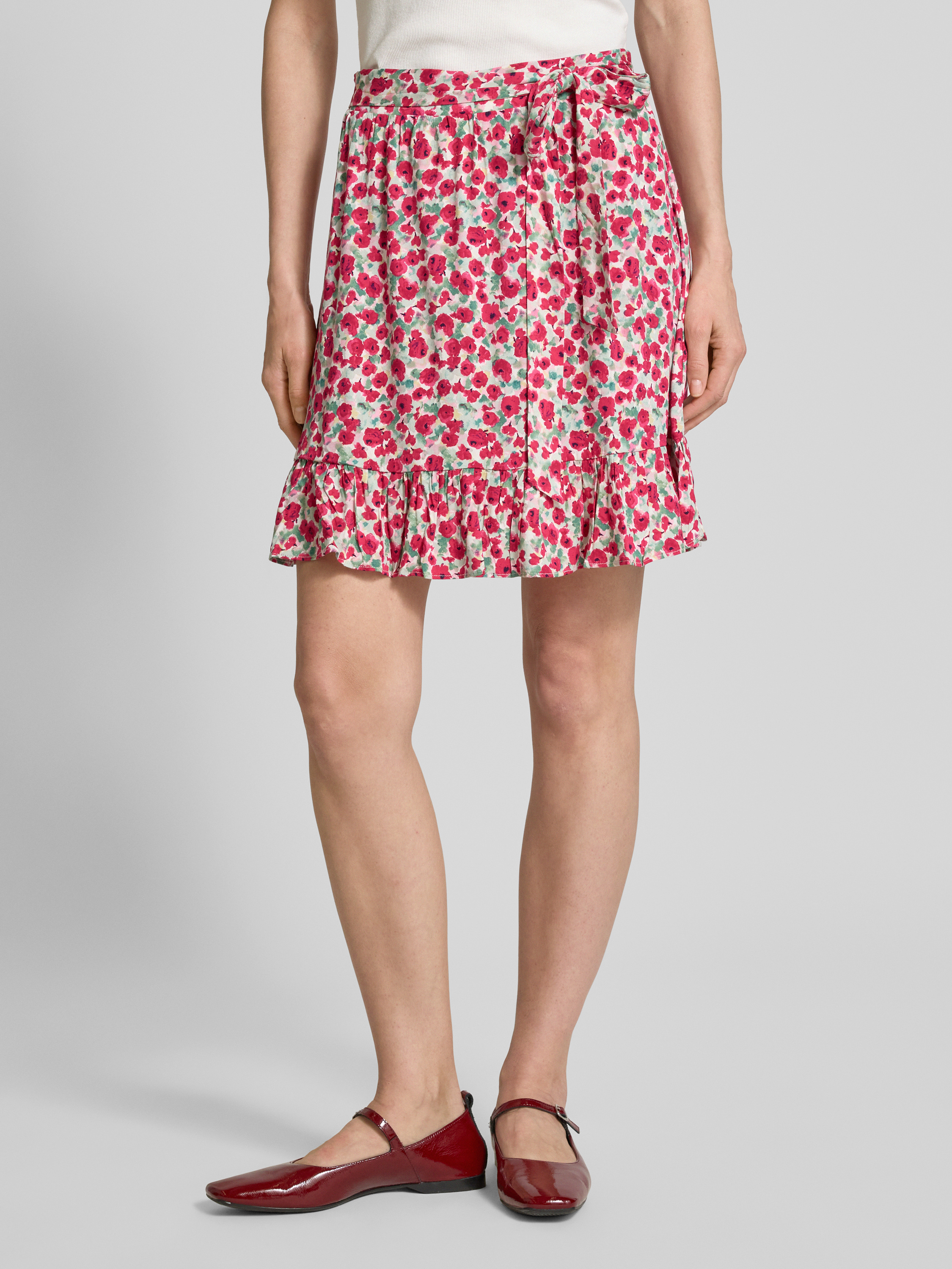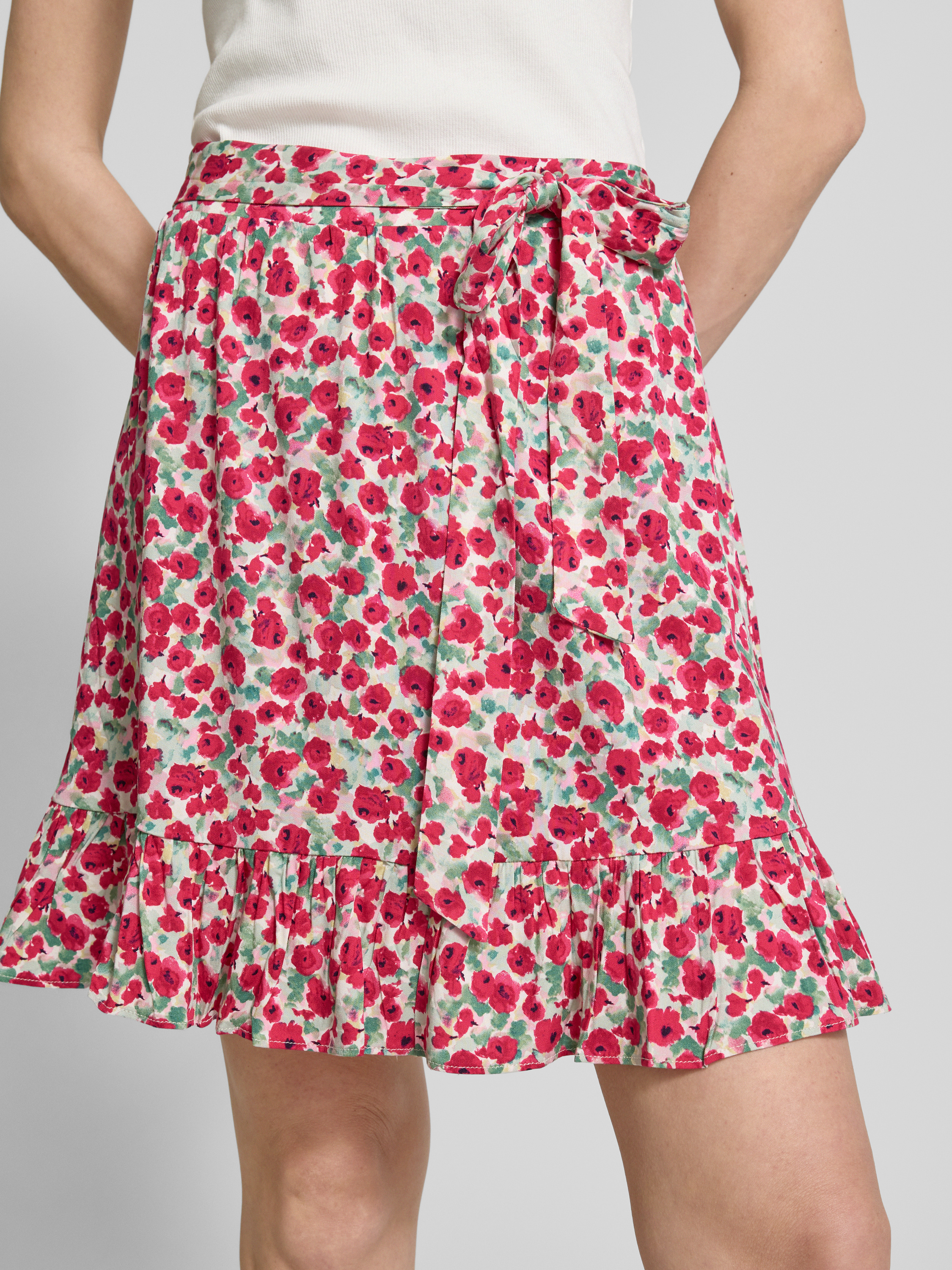 Minirok met strikceintuur, model 'AYA' in felroze