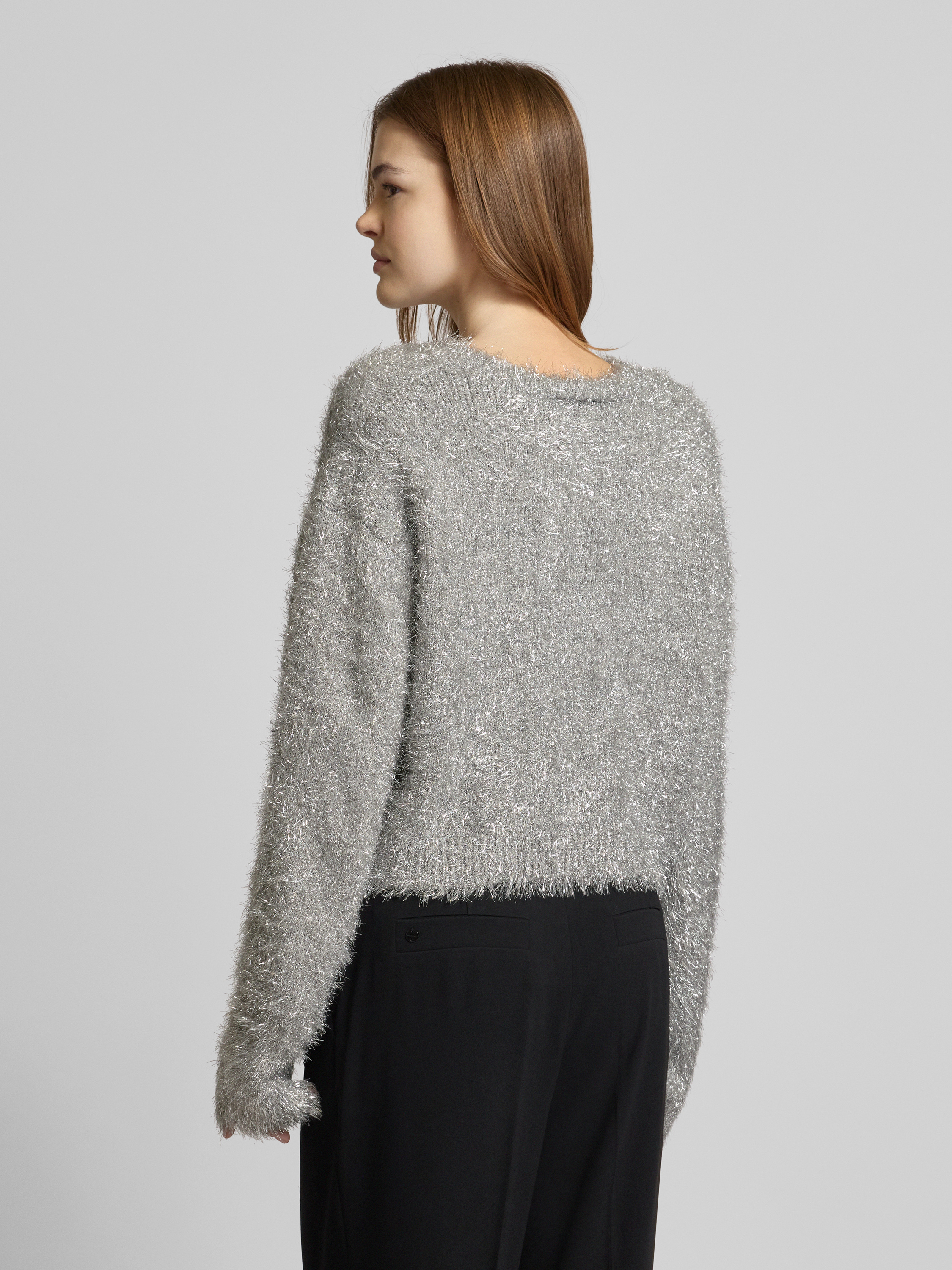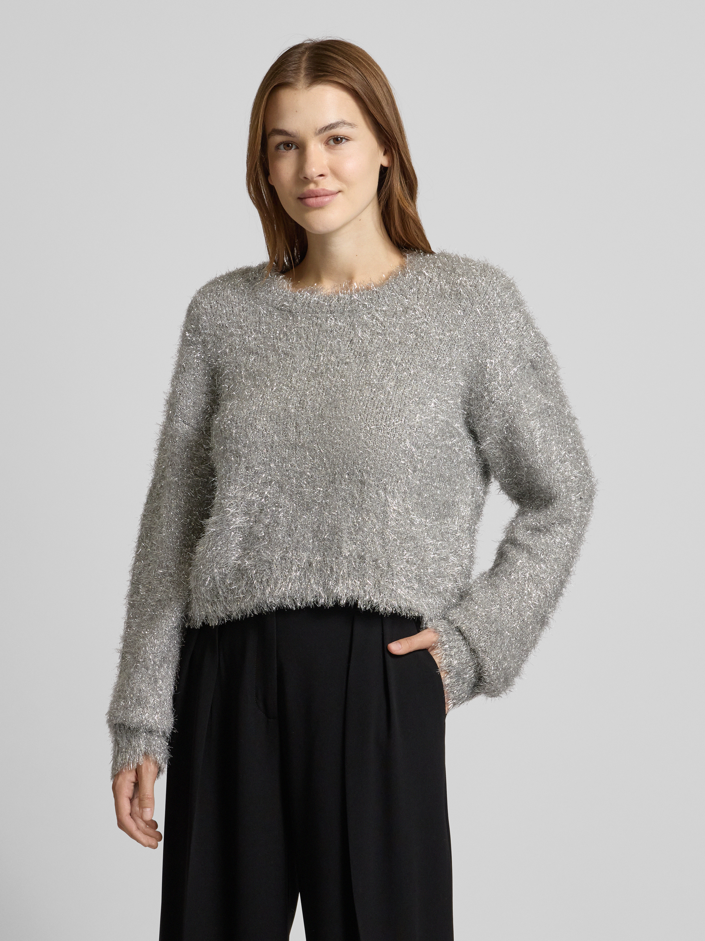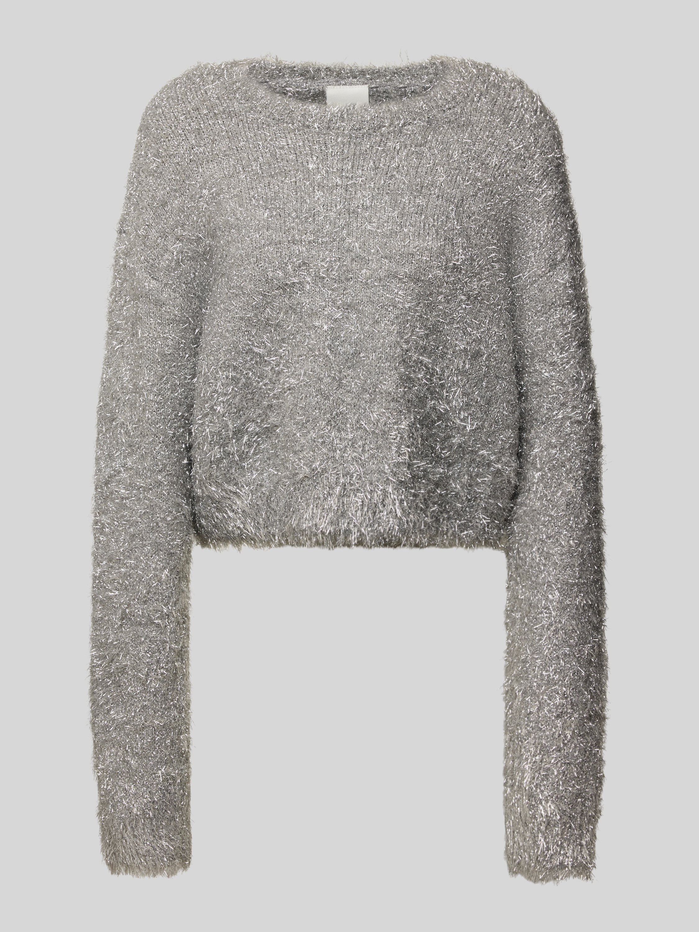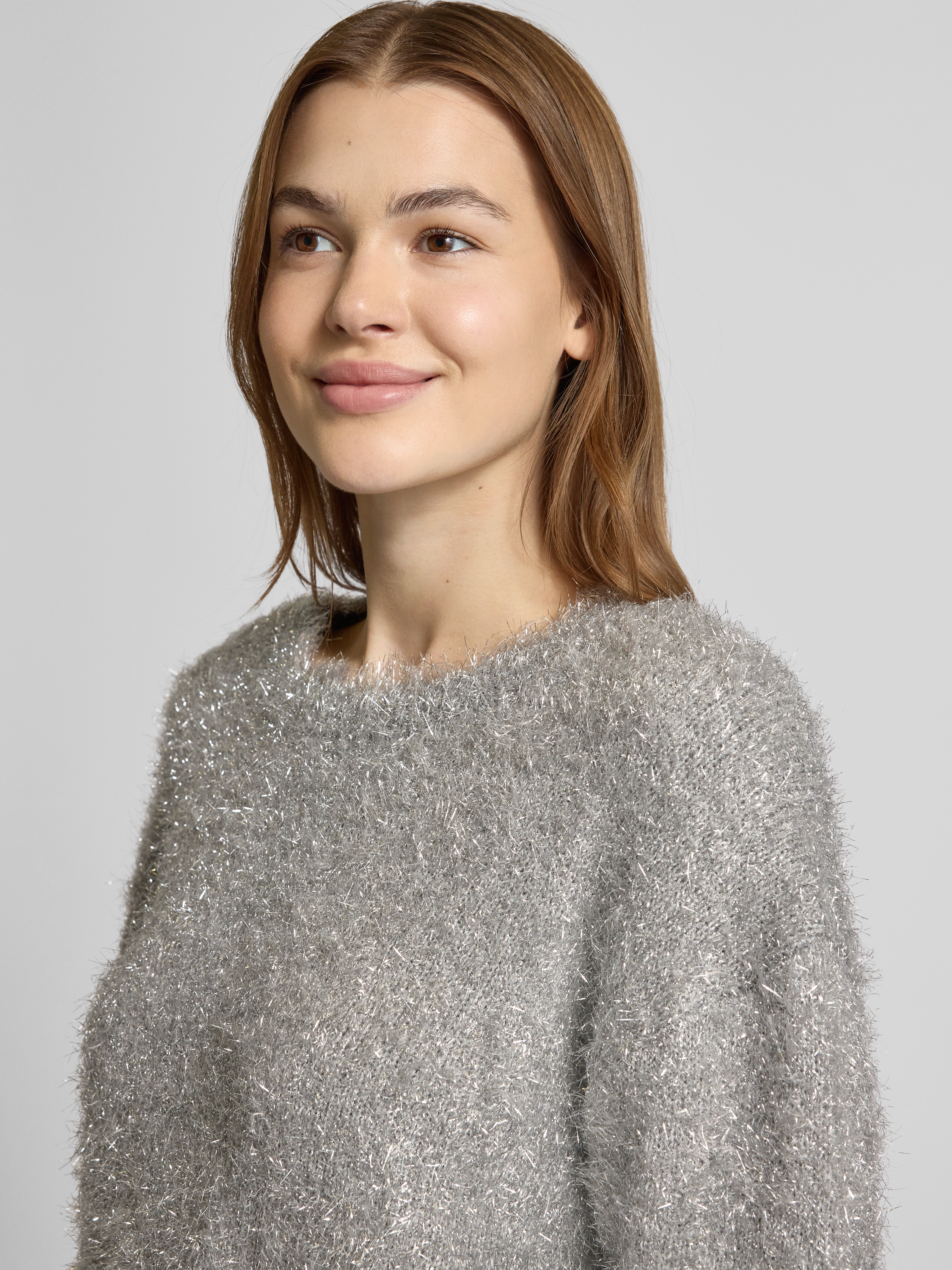 ICHIOversized gebreide pullover met ronde hals, model 'BLIZI' in zilver