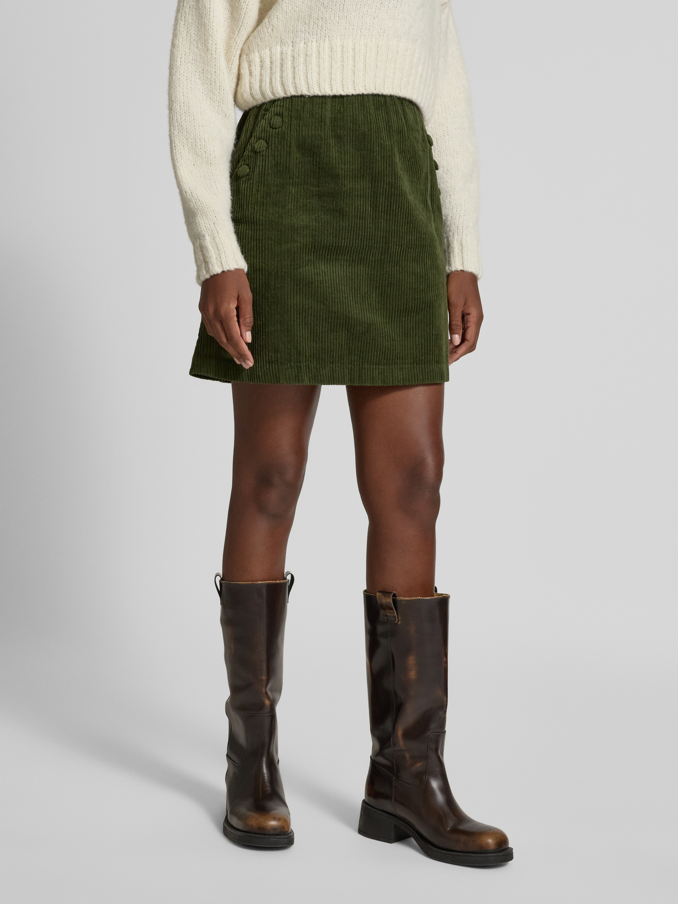 Regular fit minirok in ribcordlook, model 'Focaro' in kaki