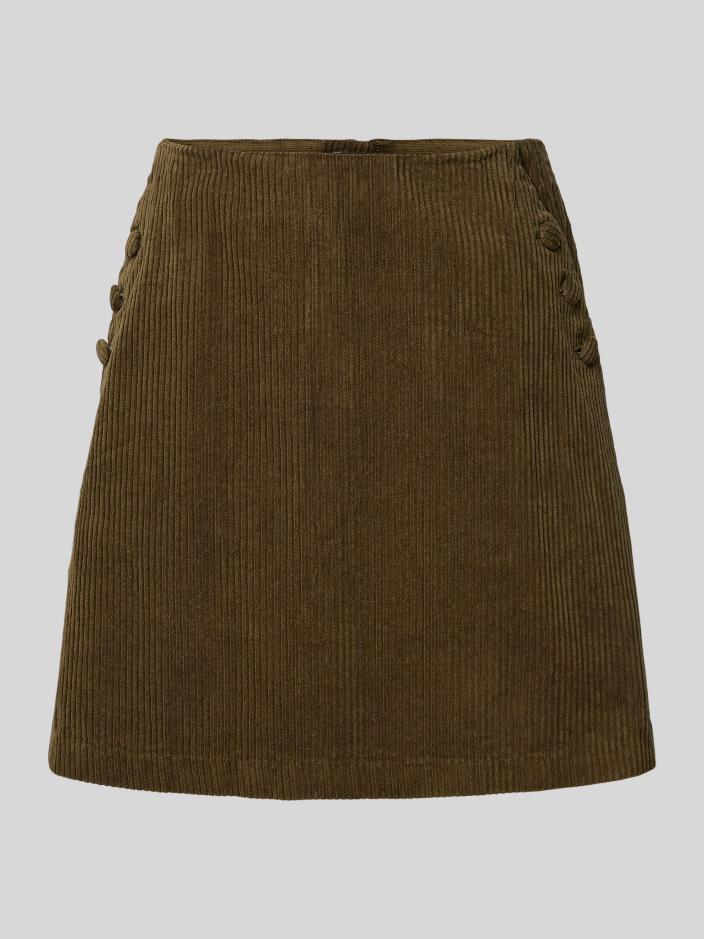 Regular fit minirok in ribcordlook, model 'Focaro' in olijfgroen