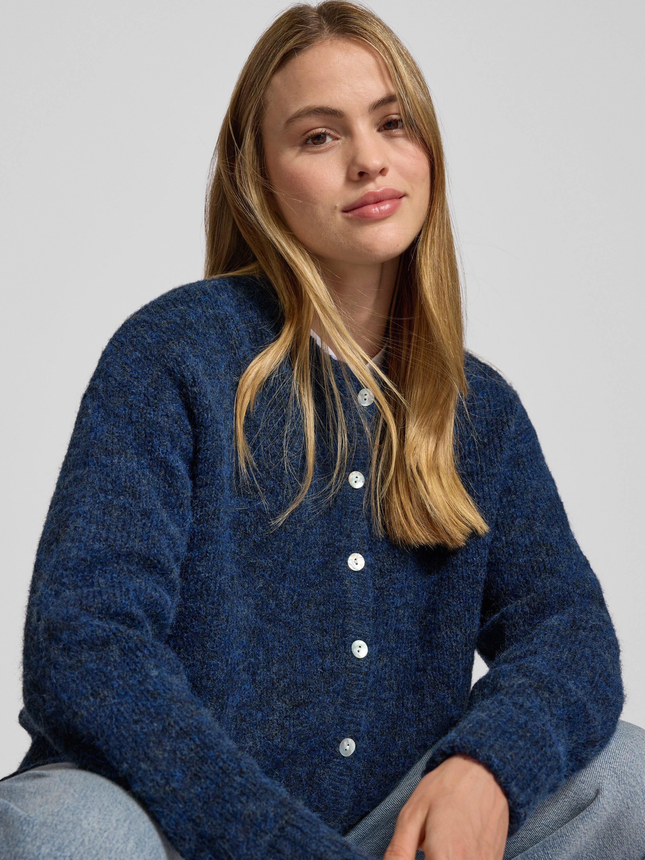 ICHIRelaxed fit gebreid jack met wol, model 'Bela' in marineblauw