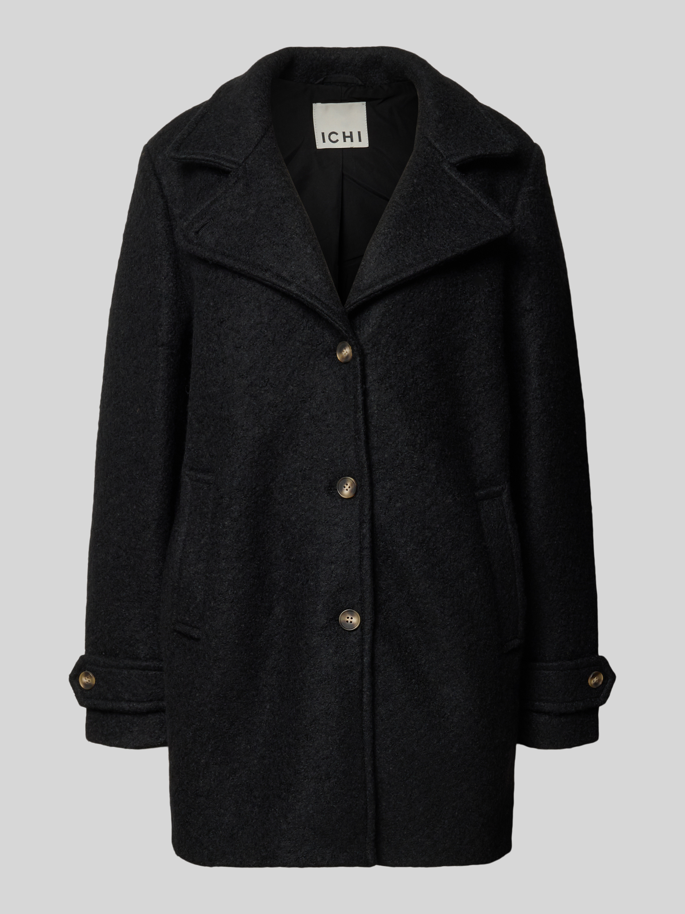ICHIRelaxed fit lange jas van wolmix, model 'Tipa' in zwart