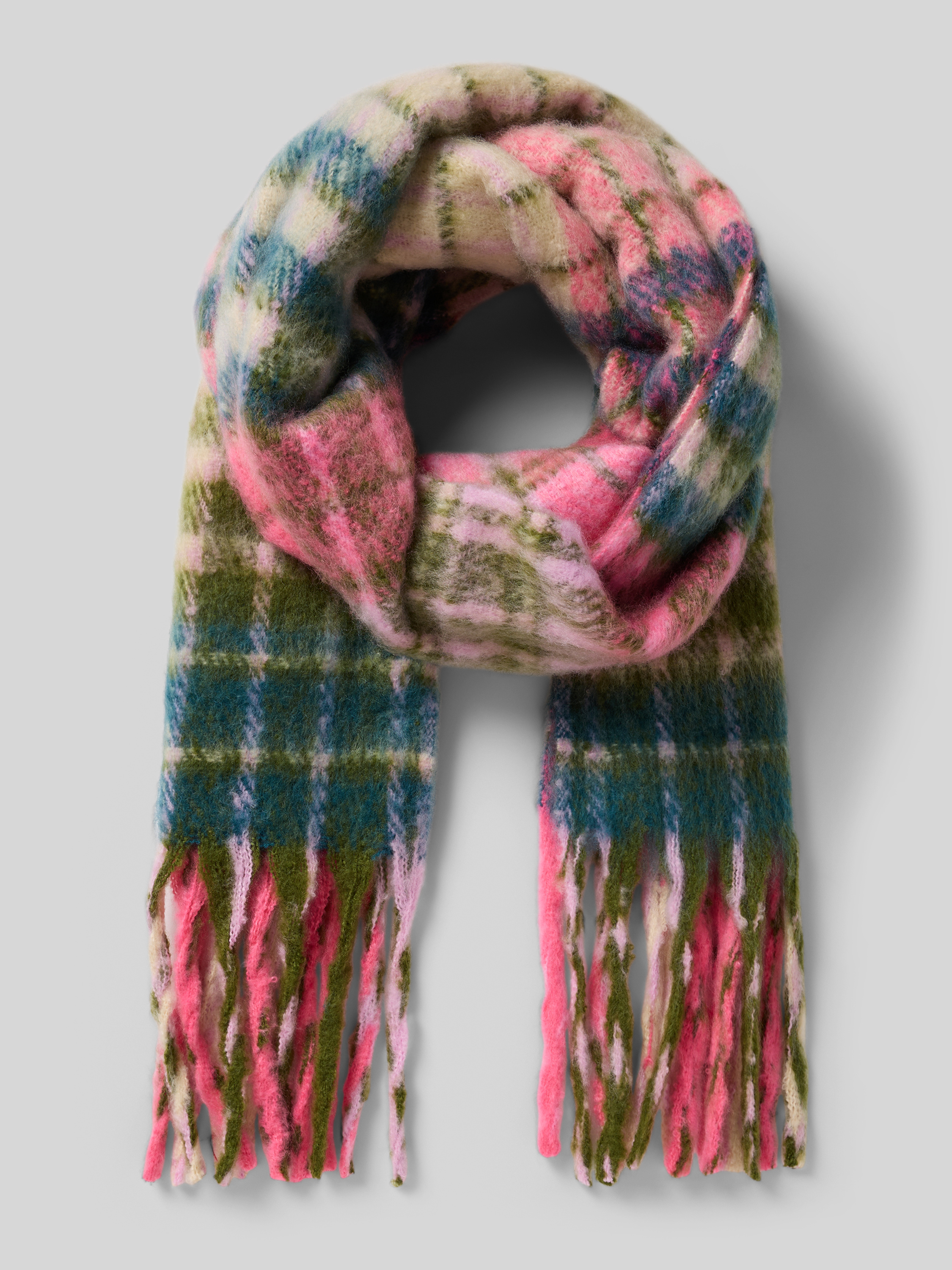 Sjaal met franjes, model 'ALAYA' in roze