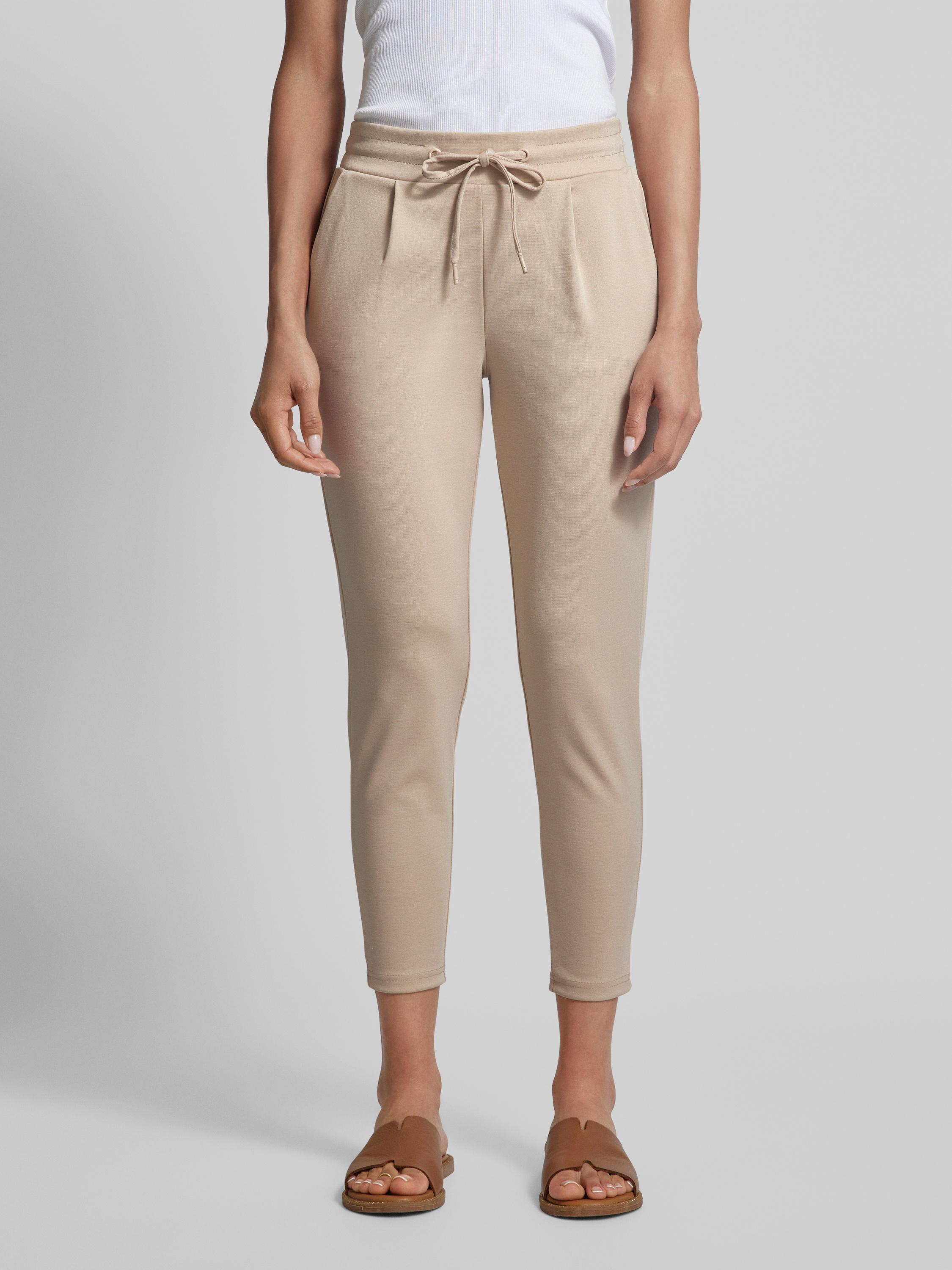 Sweatpants met verkorte pasvorm, model 'KATE' in beige