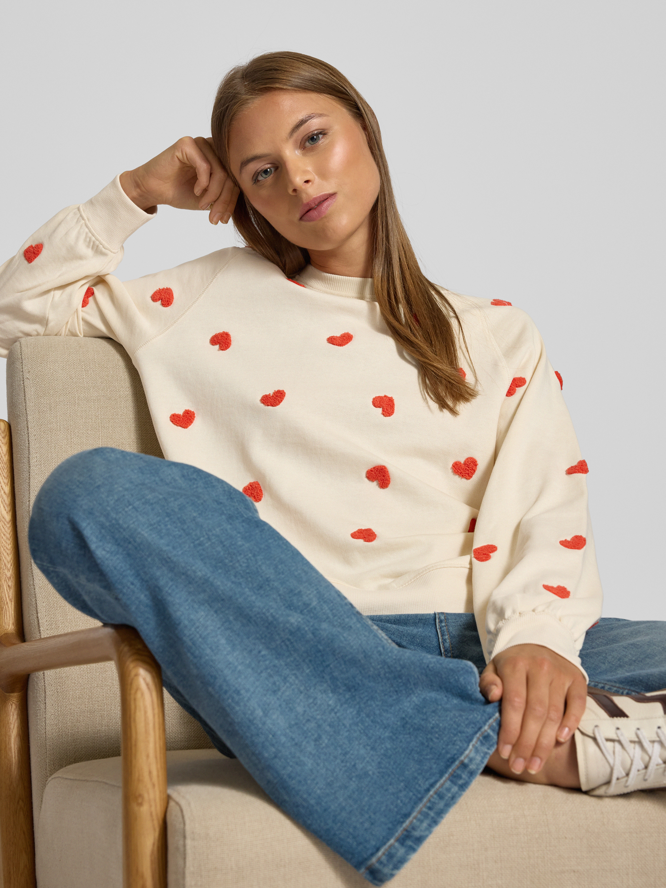 Sweatshirt met ribboorden, model 'KASURA' in offwhite