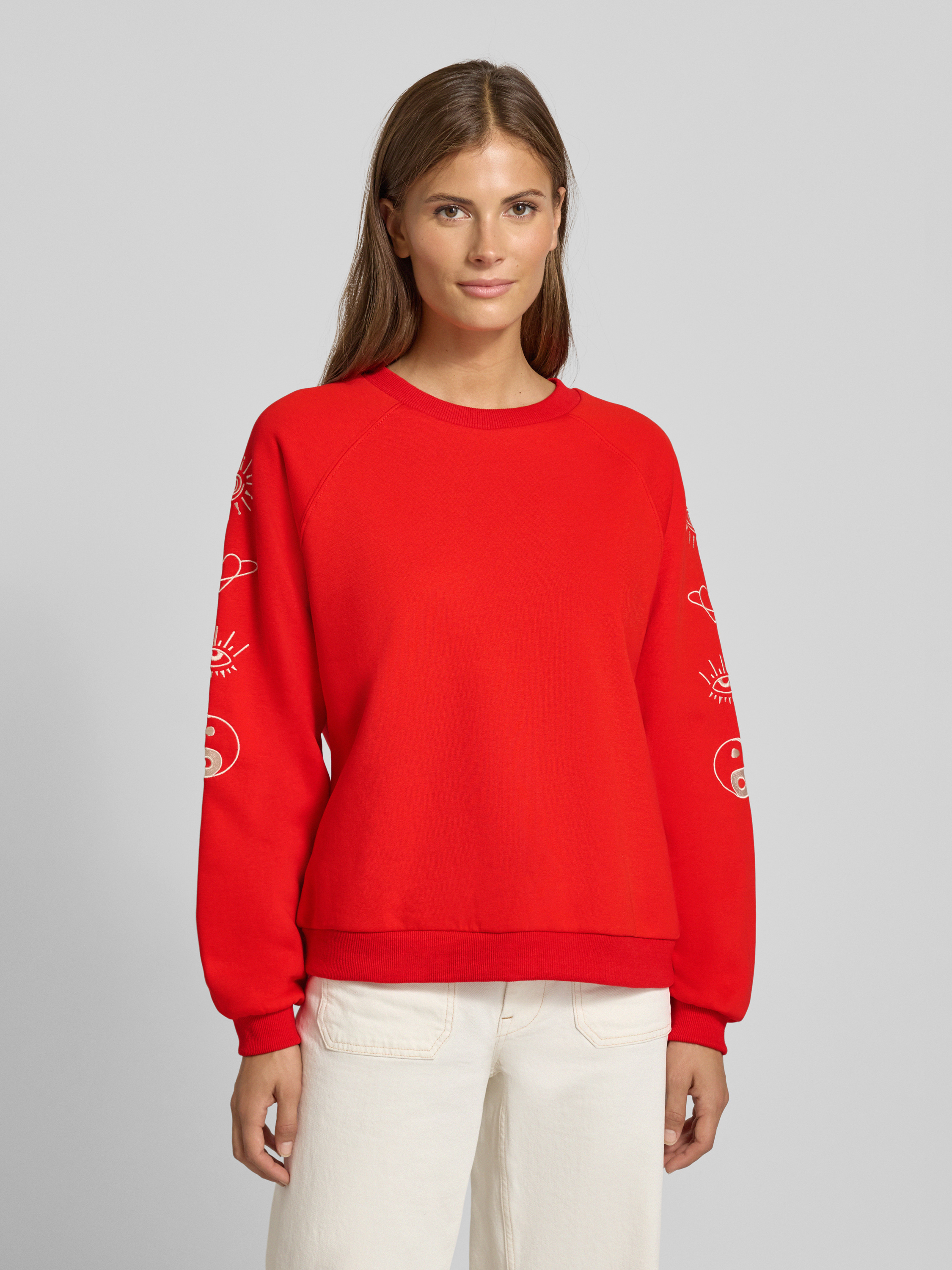 Sweatshirt met ribboorden, model 'LELA' in lichtrood