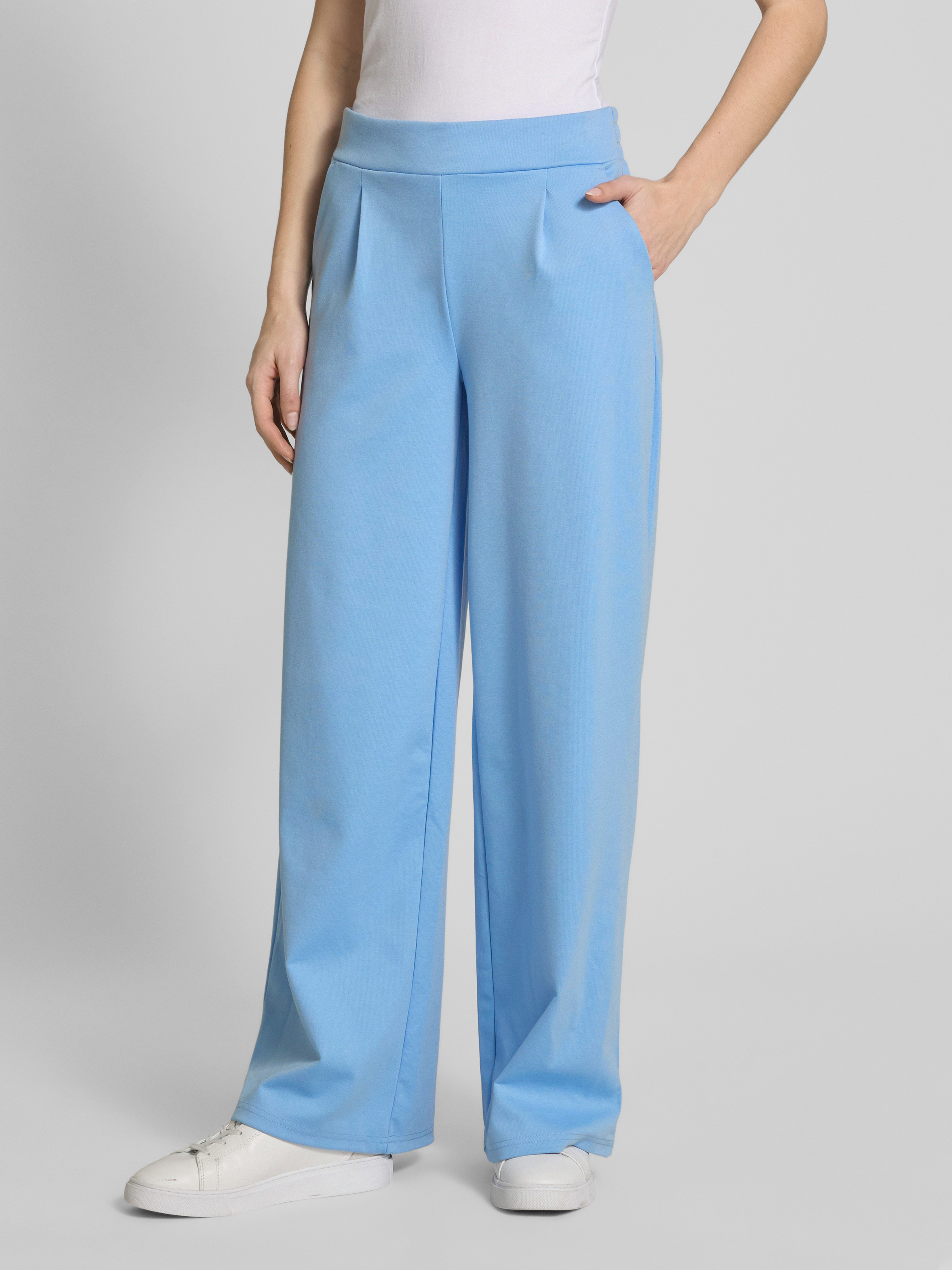Wide leg stoffen broek met bandplooien, model 'KATE Long' in lichtblauw