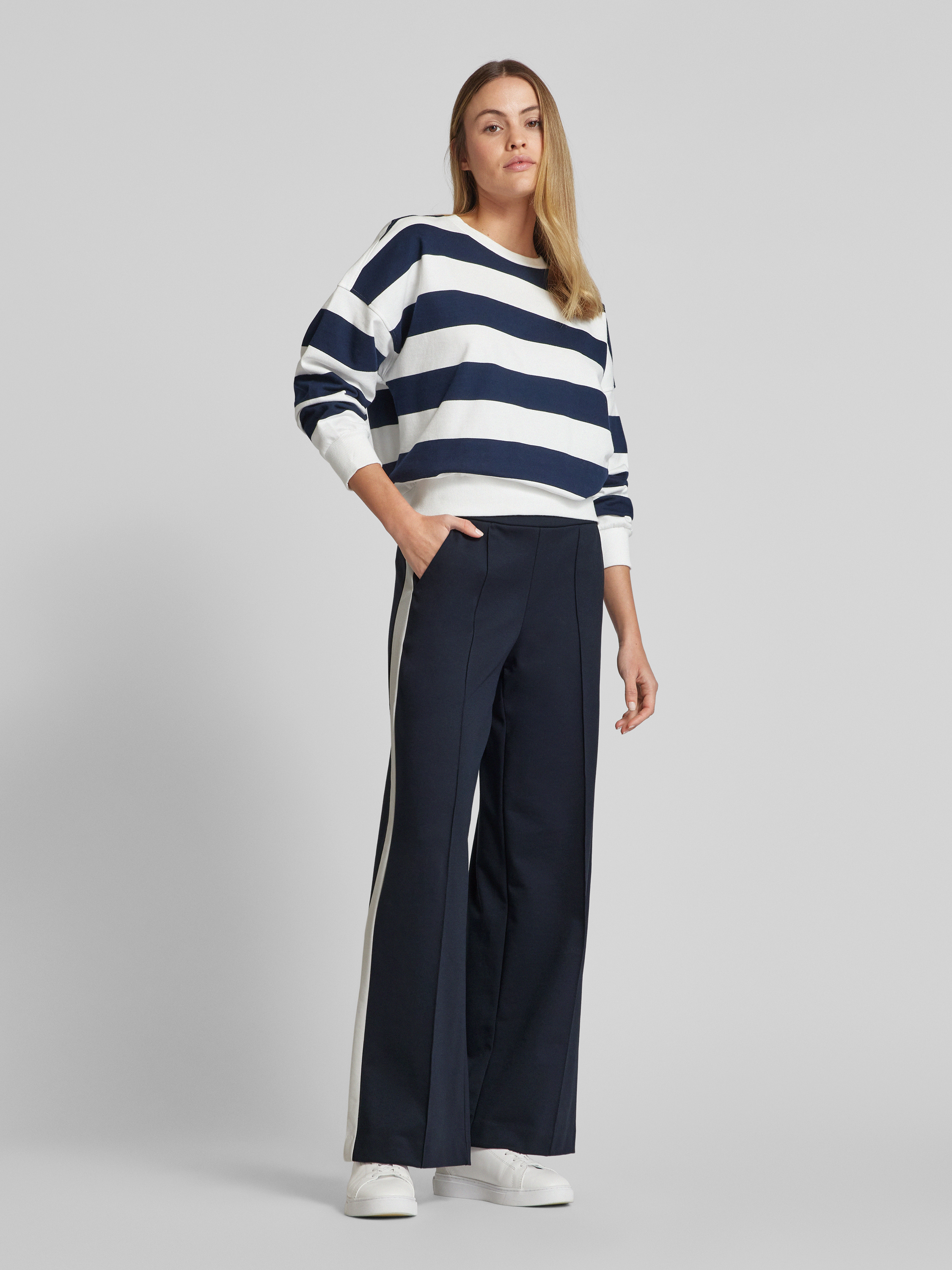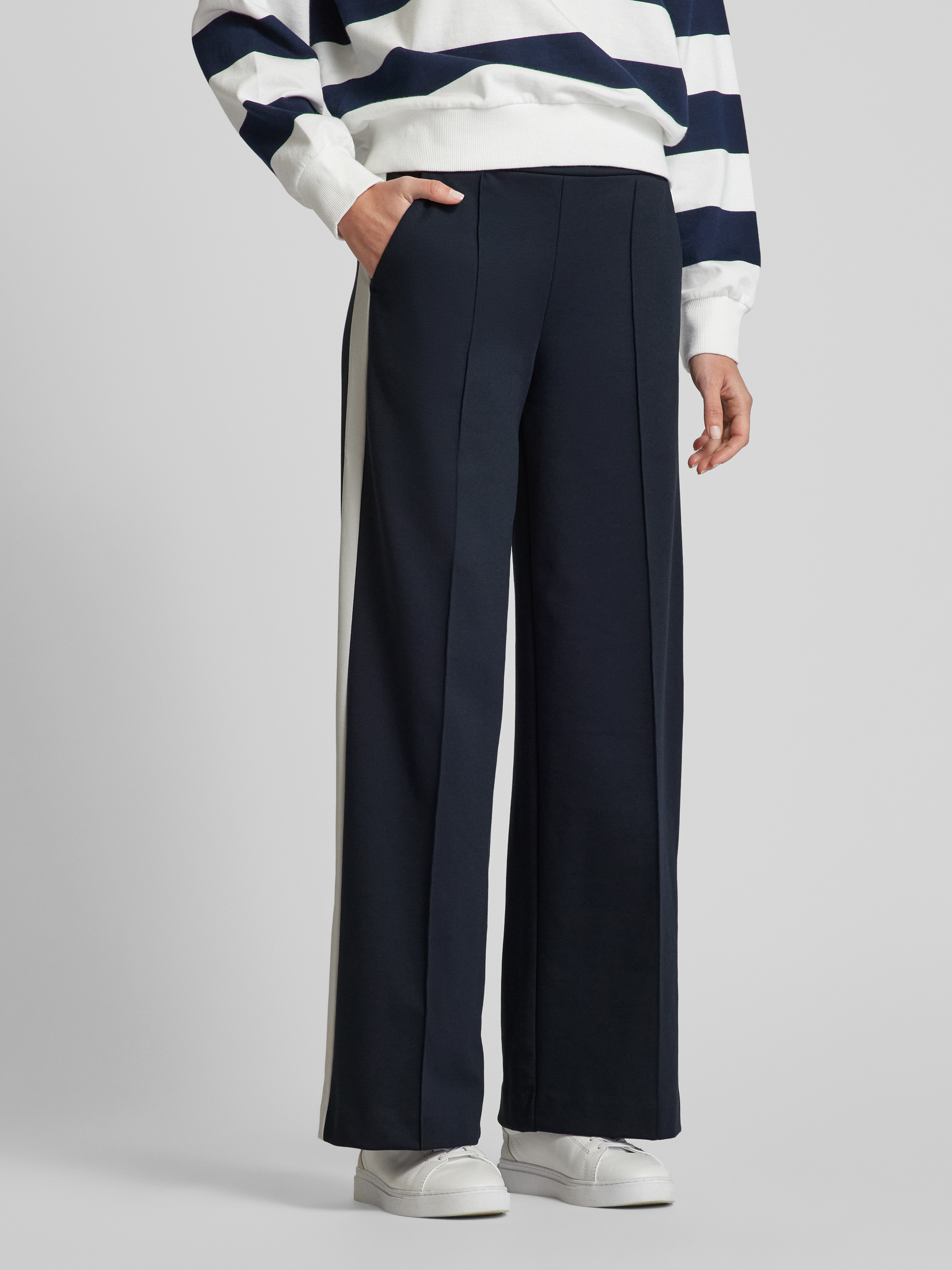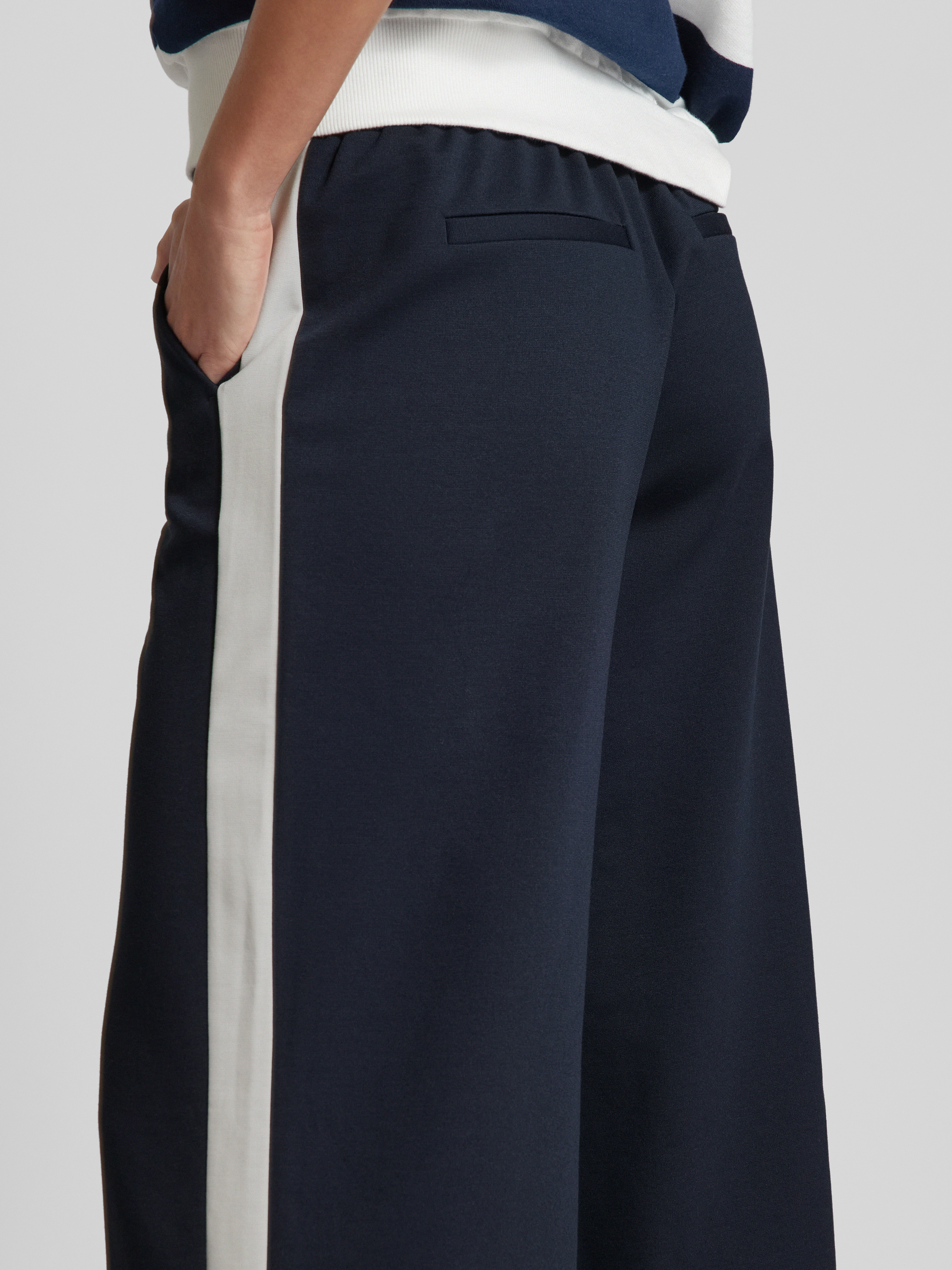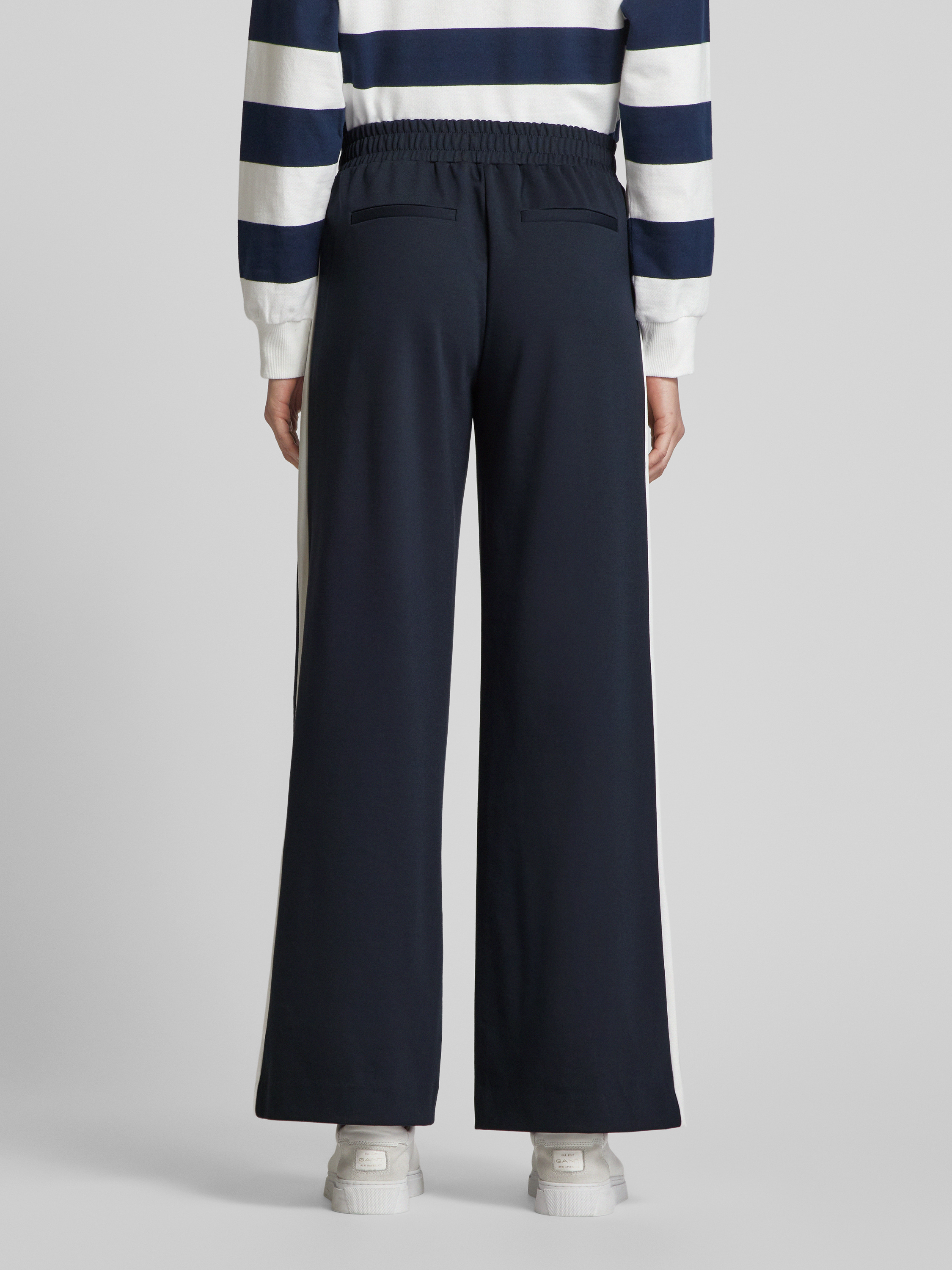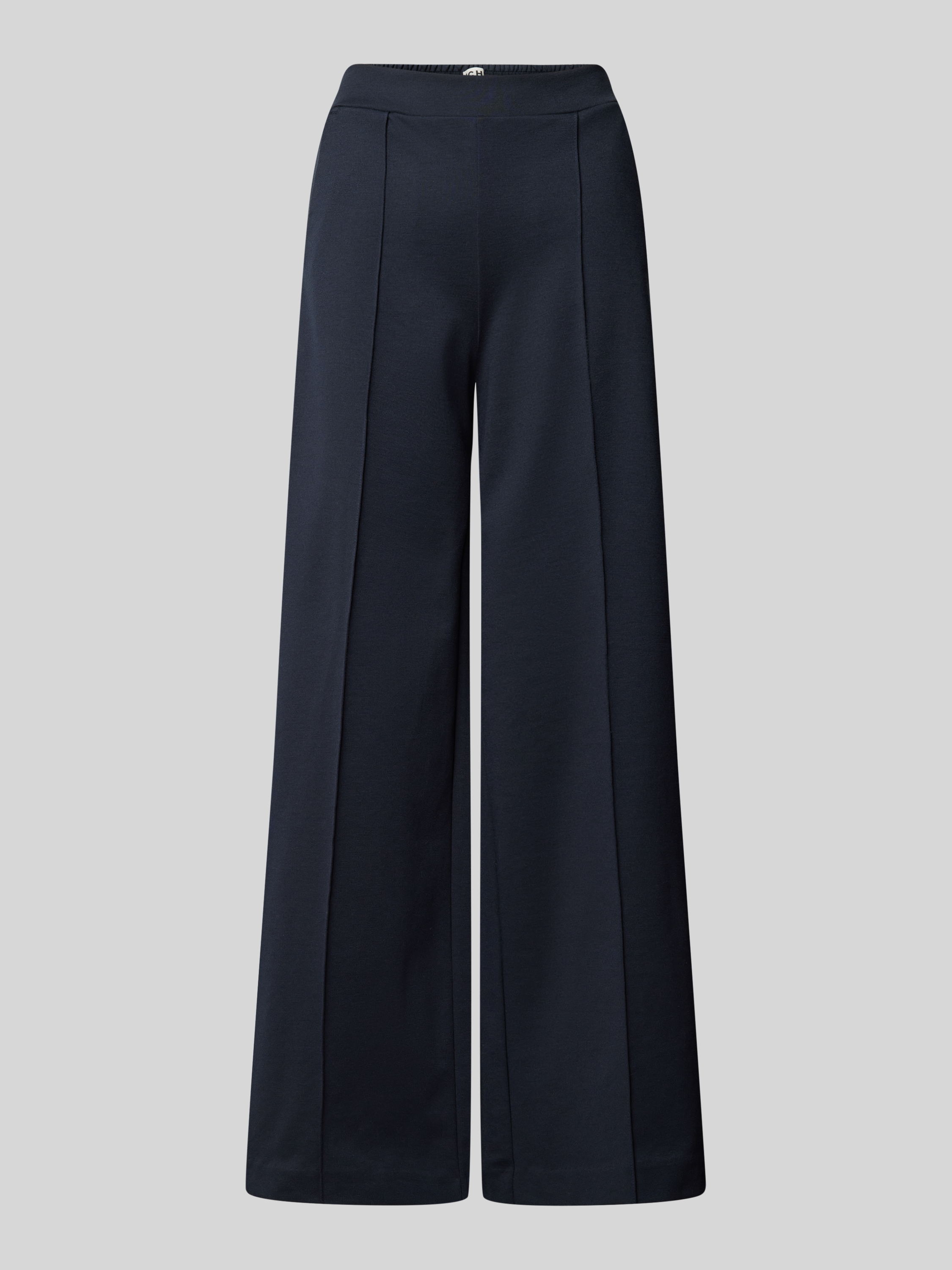 Wide leg stoffen broek met elastische band, model 'KATE' in marineblauw