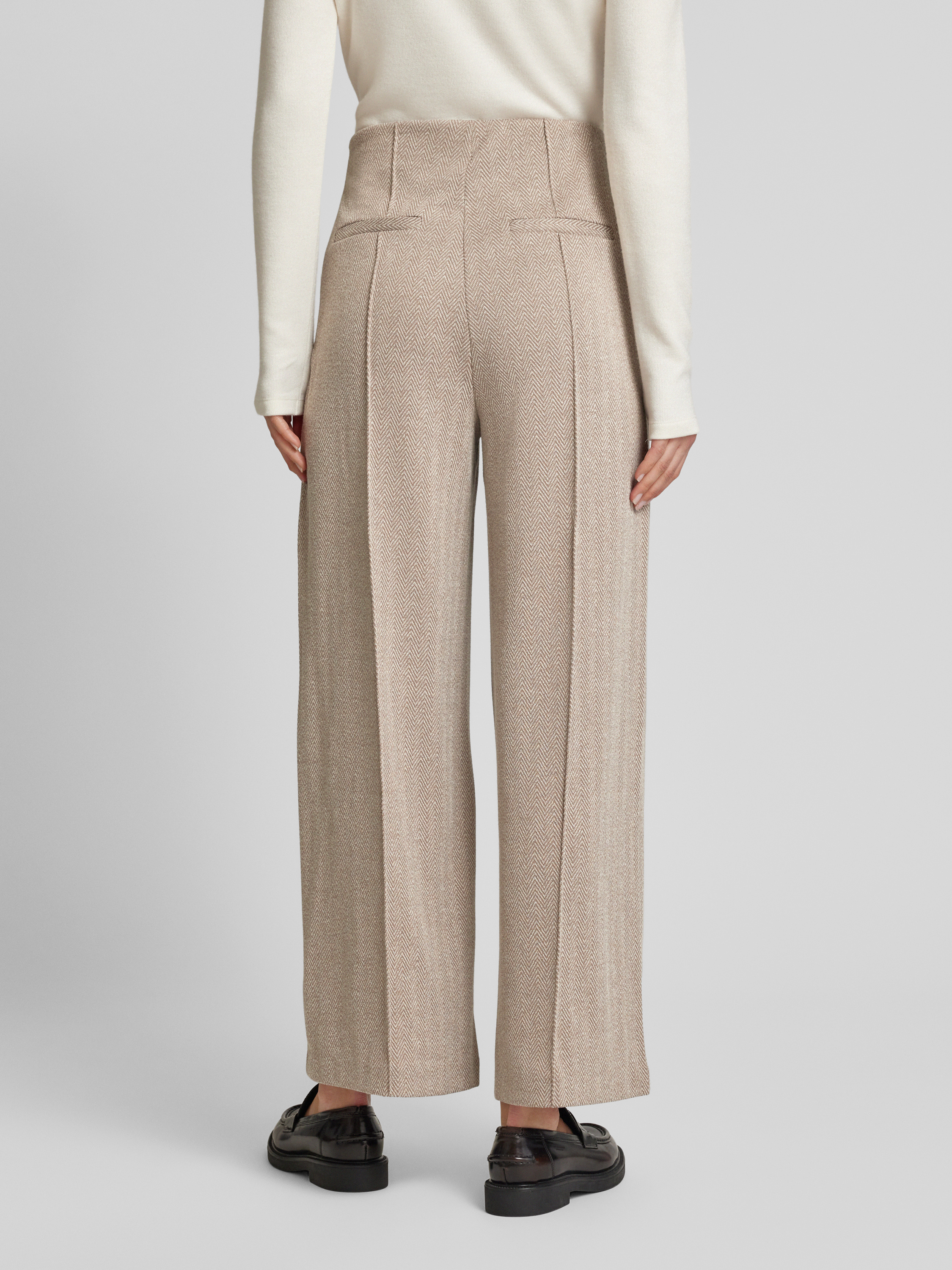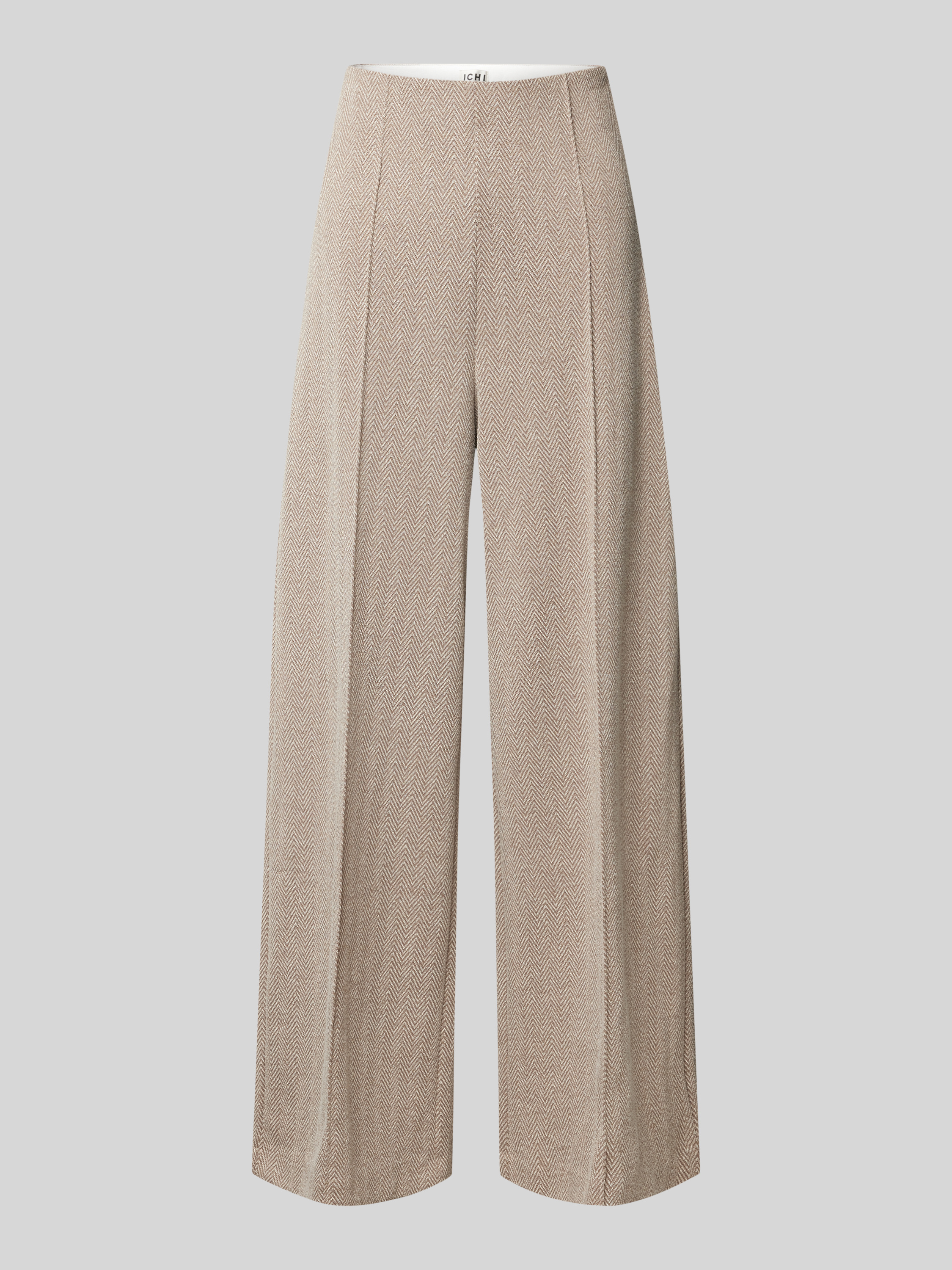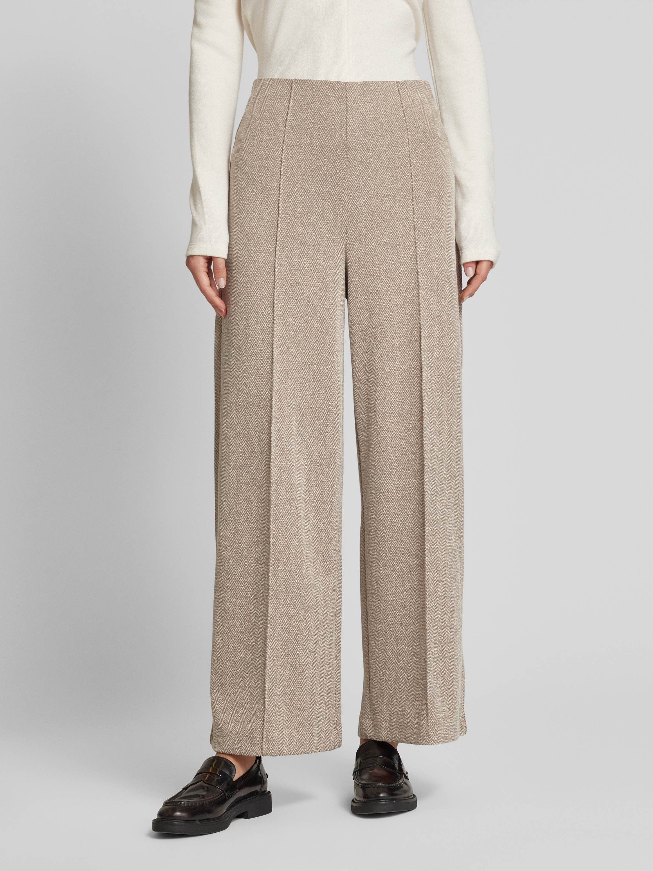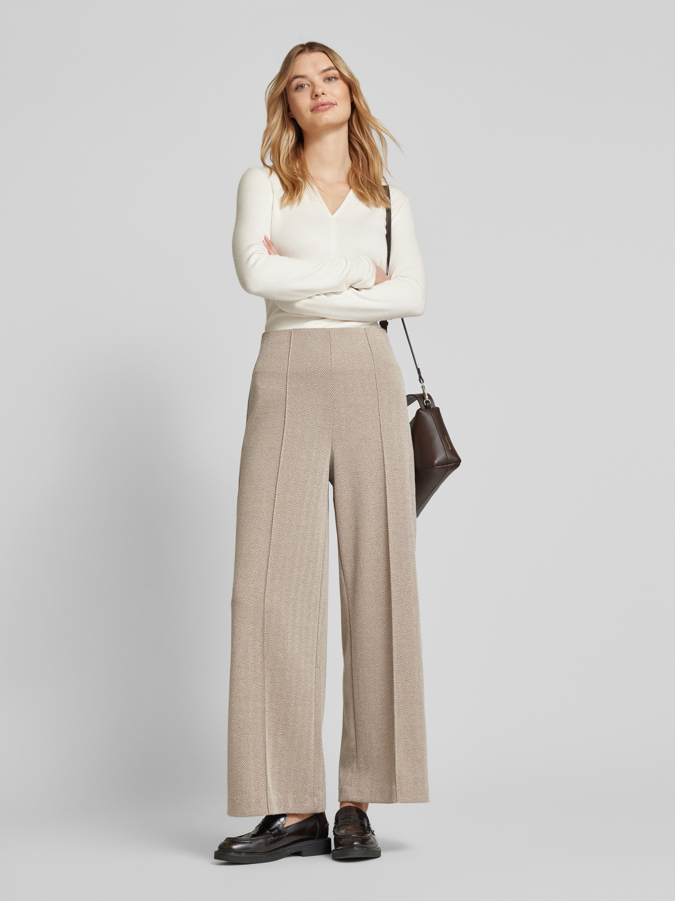 Wide leg stoffen broek met vaste persplooien, model 'KATE' in beige