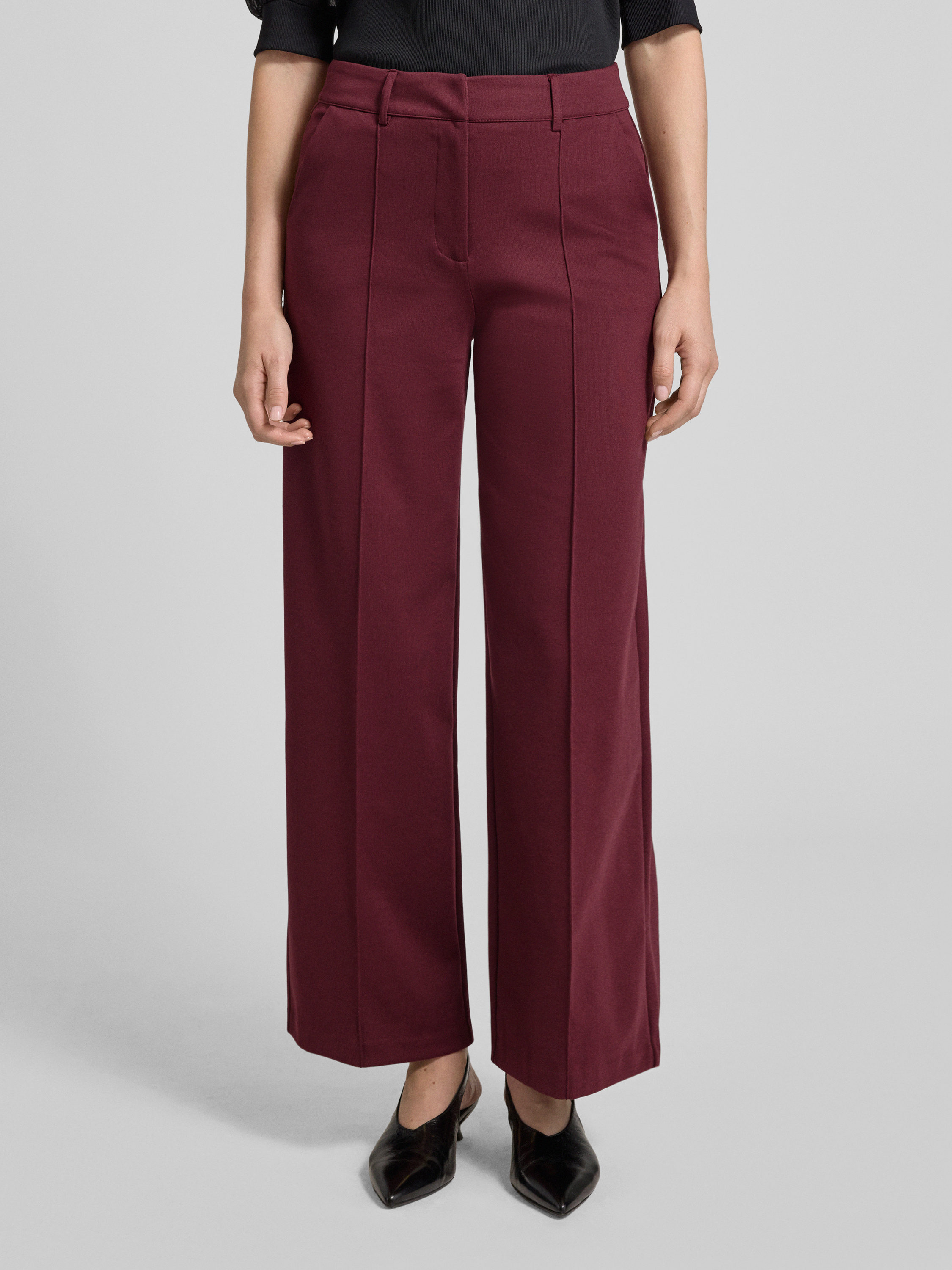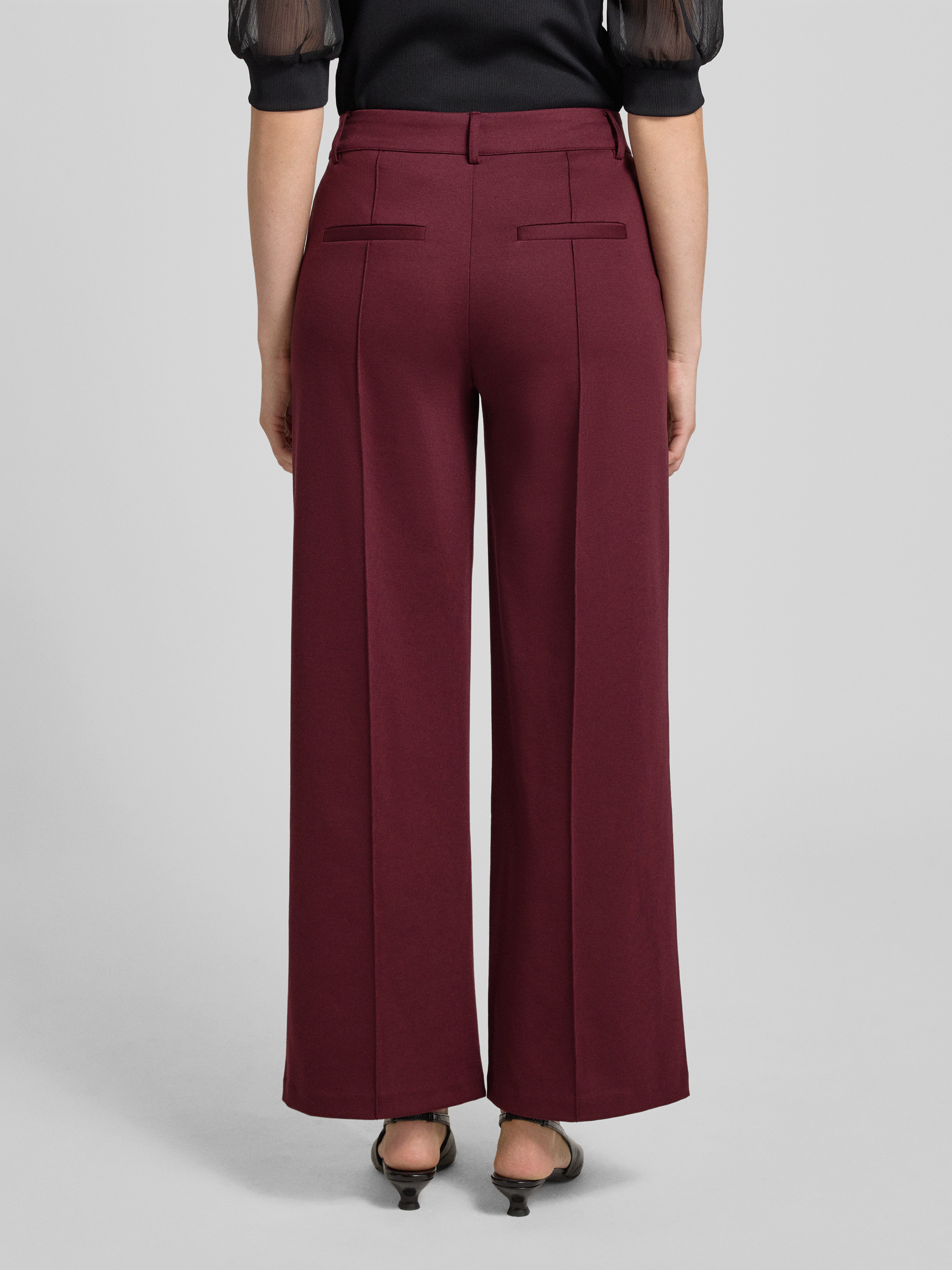 Wide leg stoffen broek met vaste persplooien, model 'KATE' in bordeaux