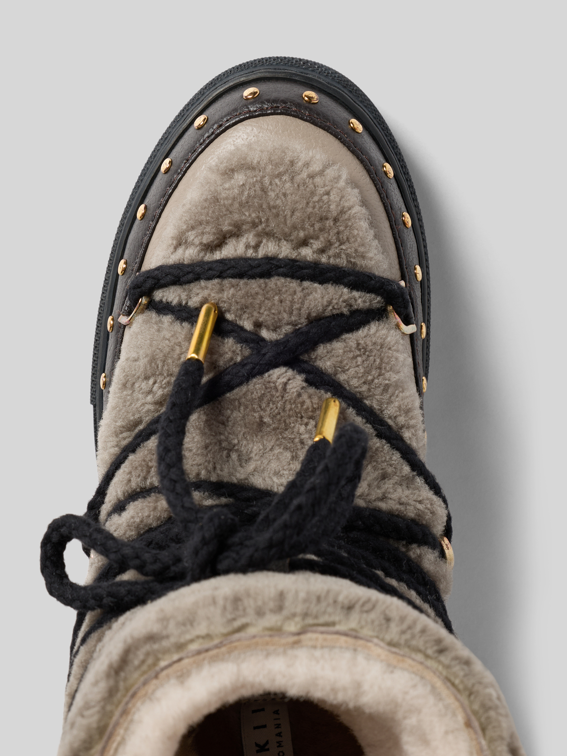 Snowboots van leer met teddybont, model 'CURLY ROCK' in taupe