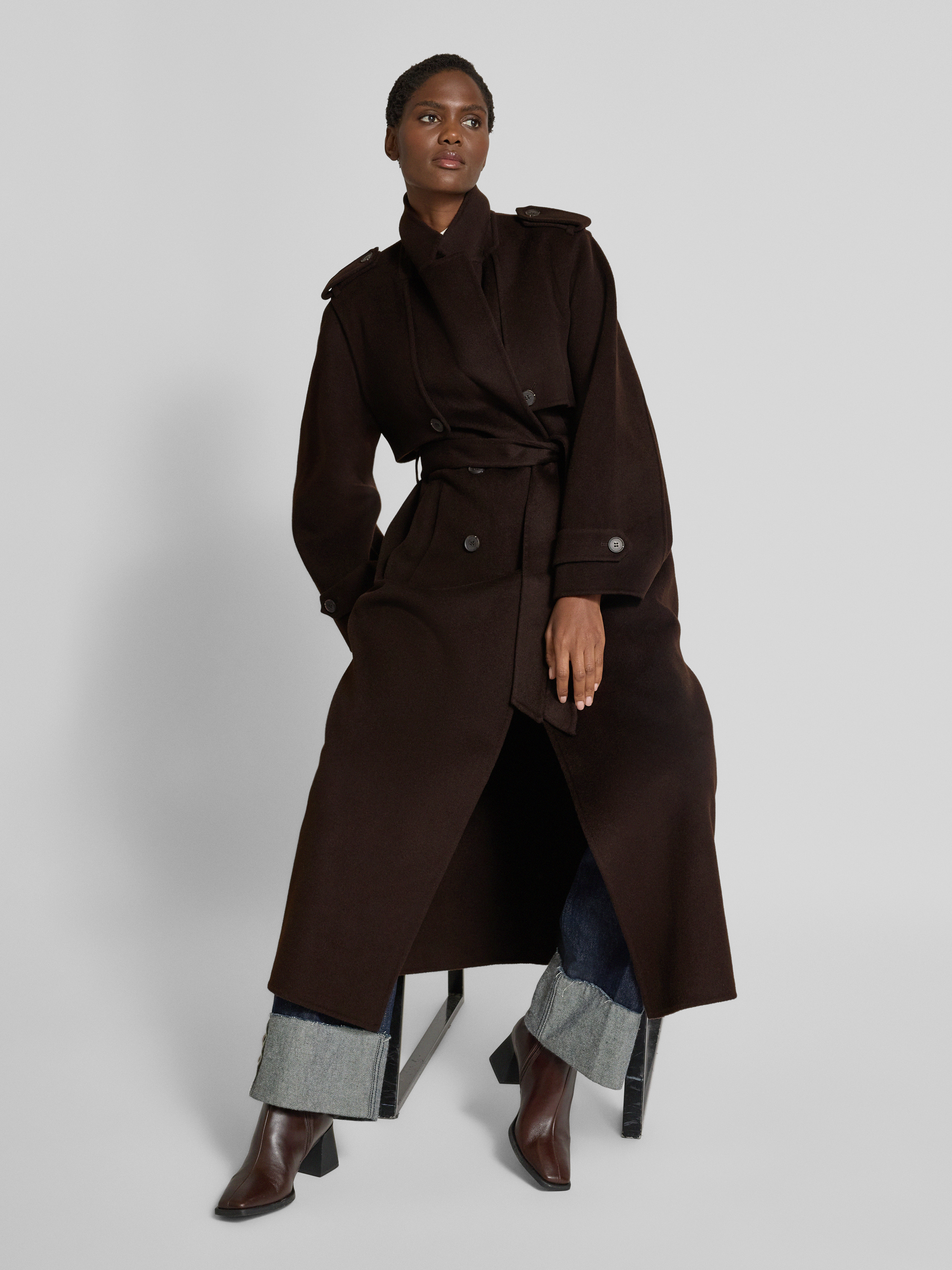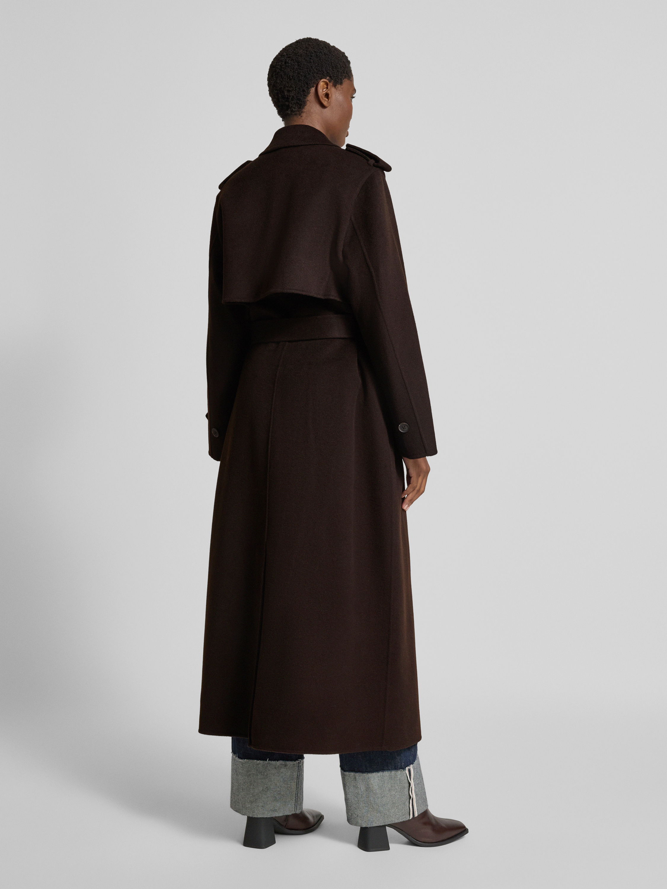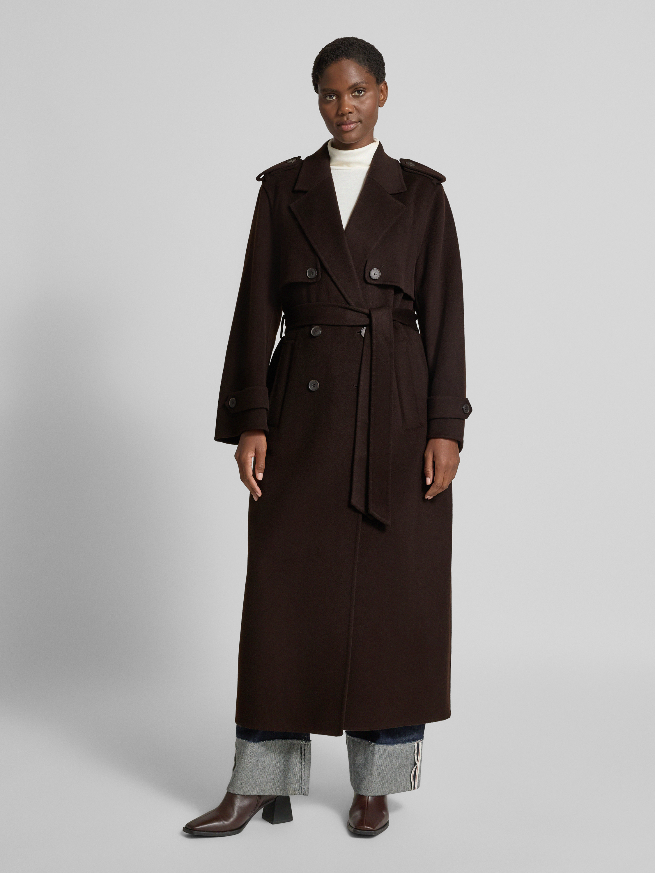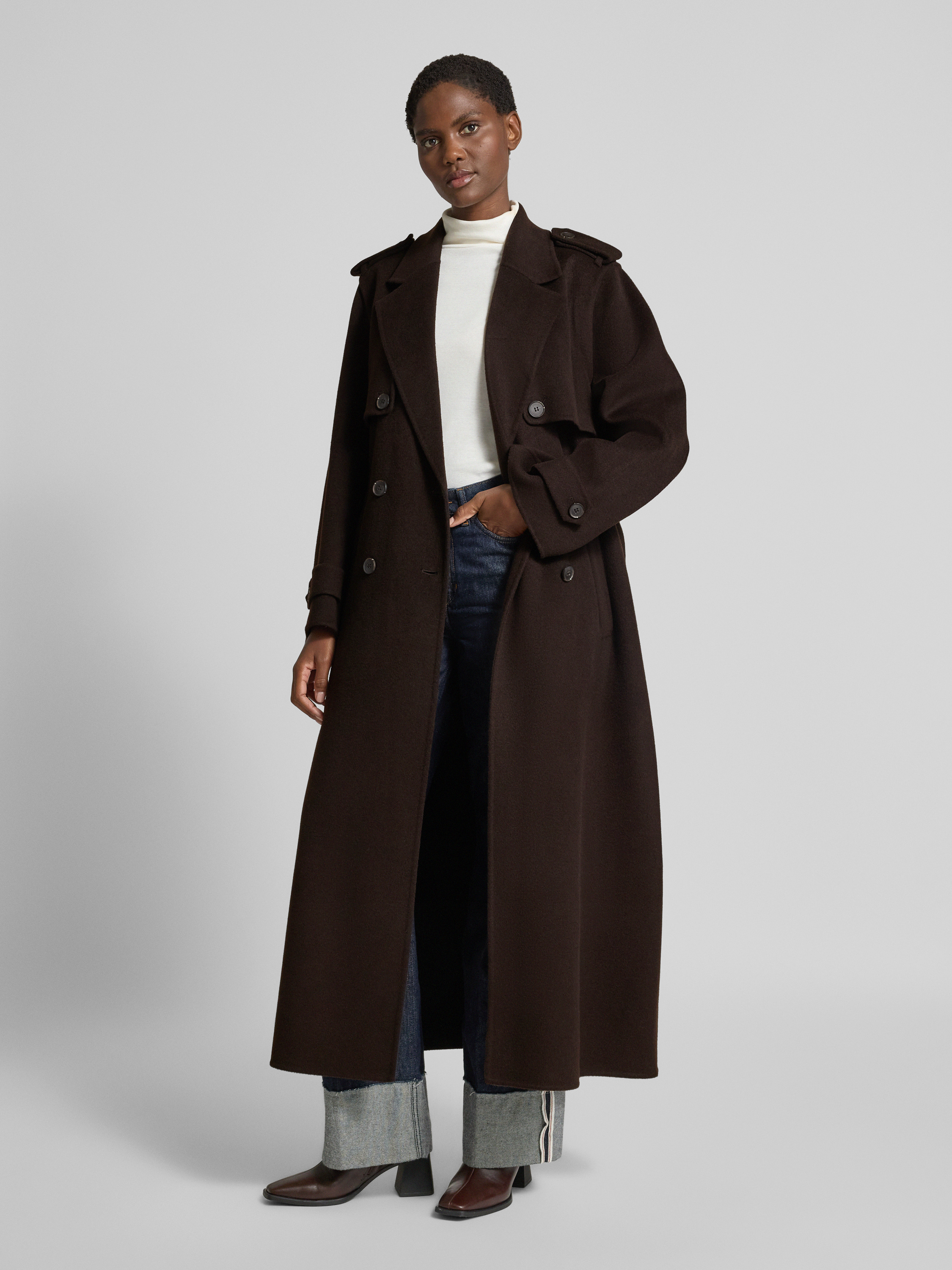 Lange wollen jas van zuivere wol, model 'COLETTE' in donkerbruin