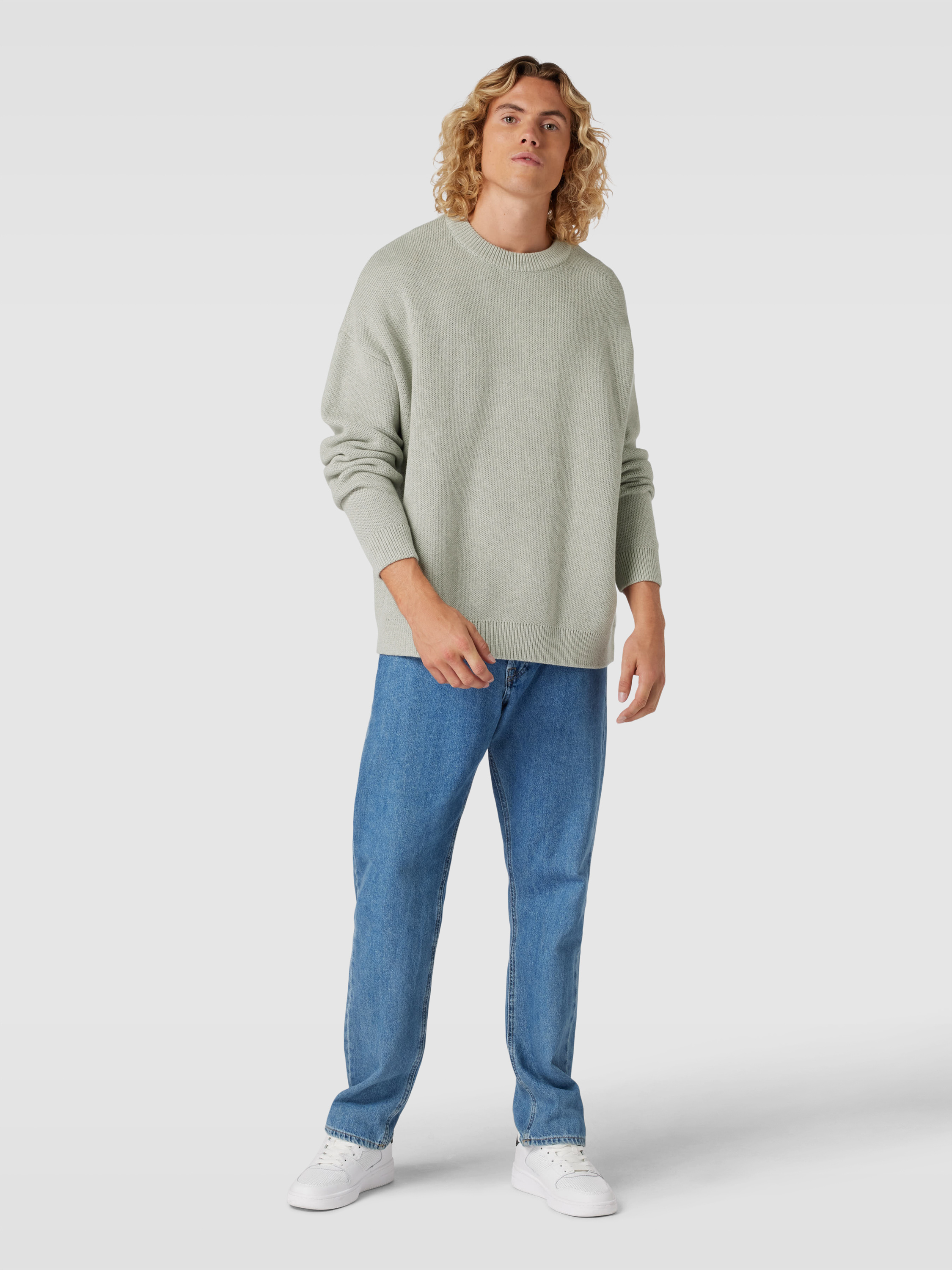 Gebreide pullover in gemêleerde look met oversized schouders in lichtgrijs gemêleerd