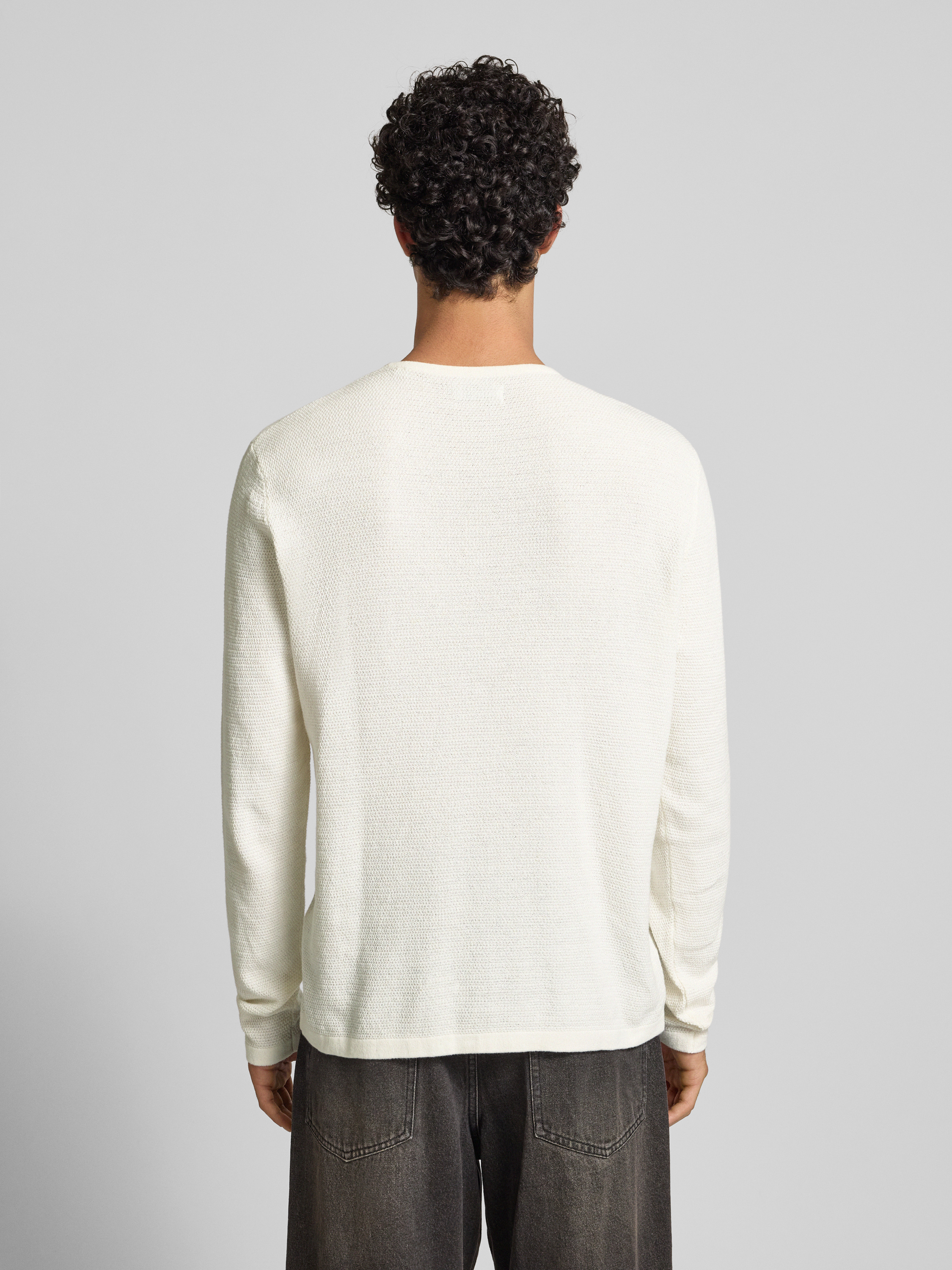 Gebreide pullover met geribde ronde hals, model 'GEORGE' in wit