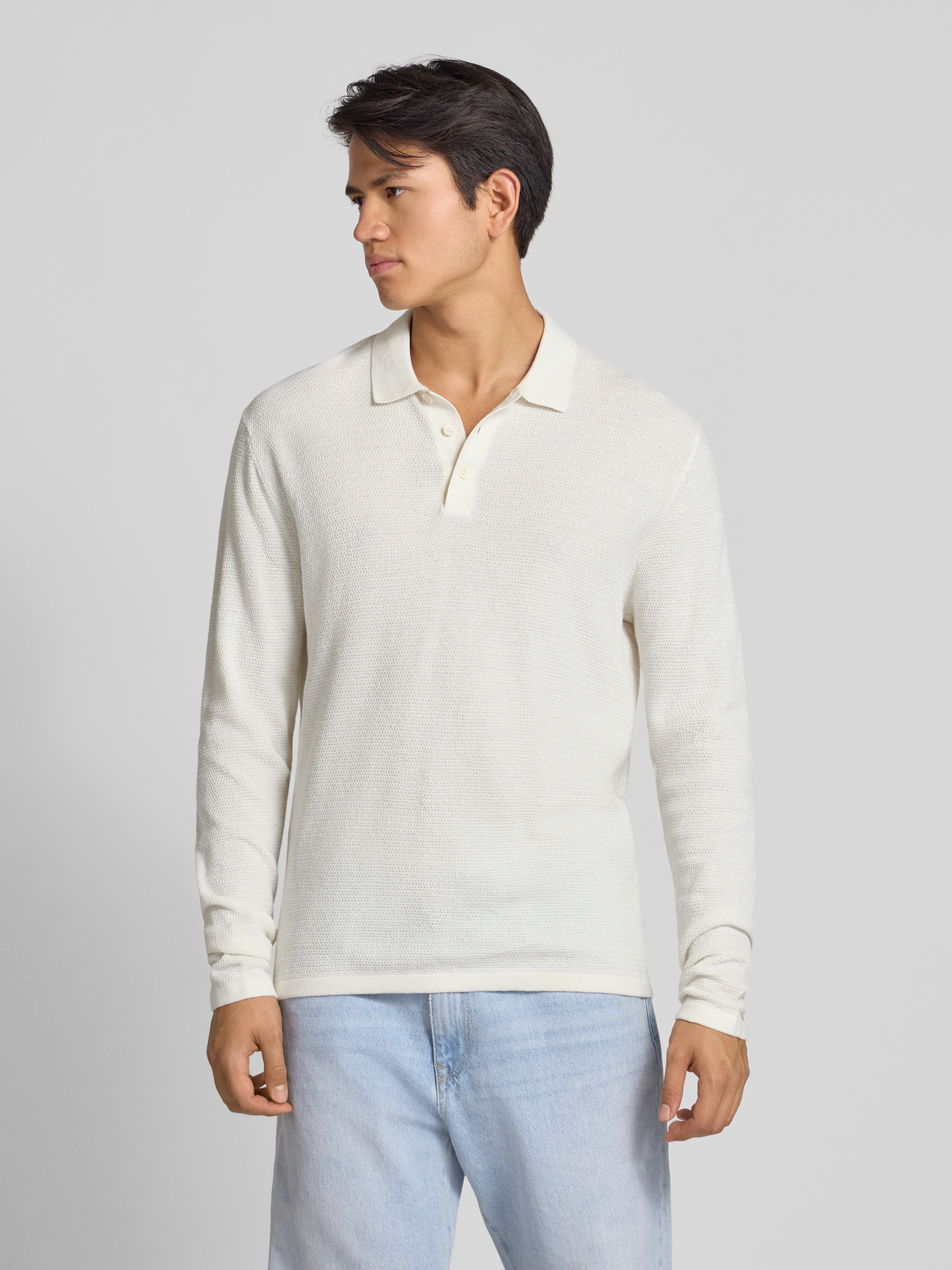 Gebreide pullover met kentkraag in offwhite