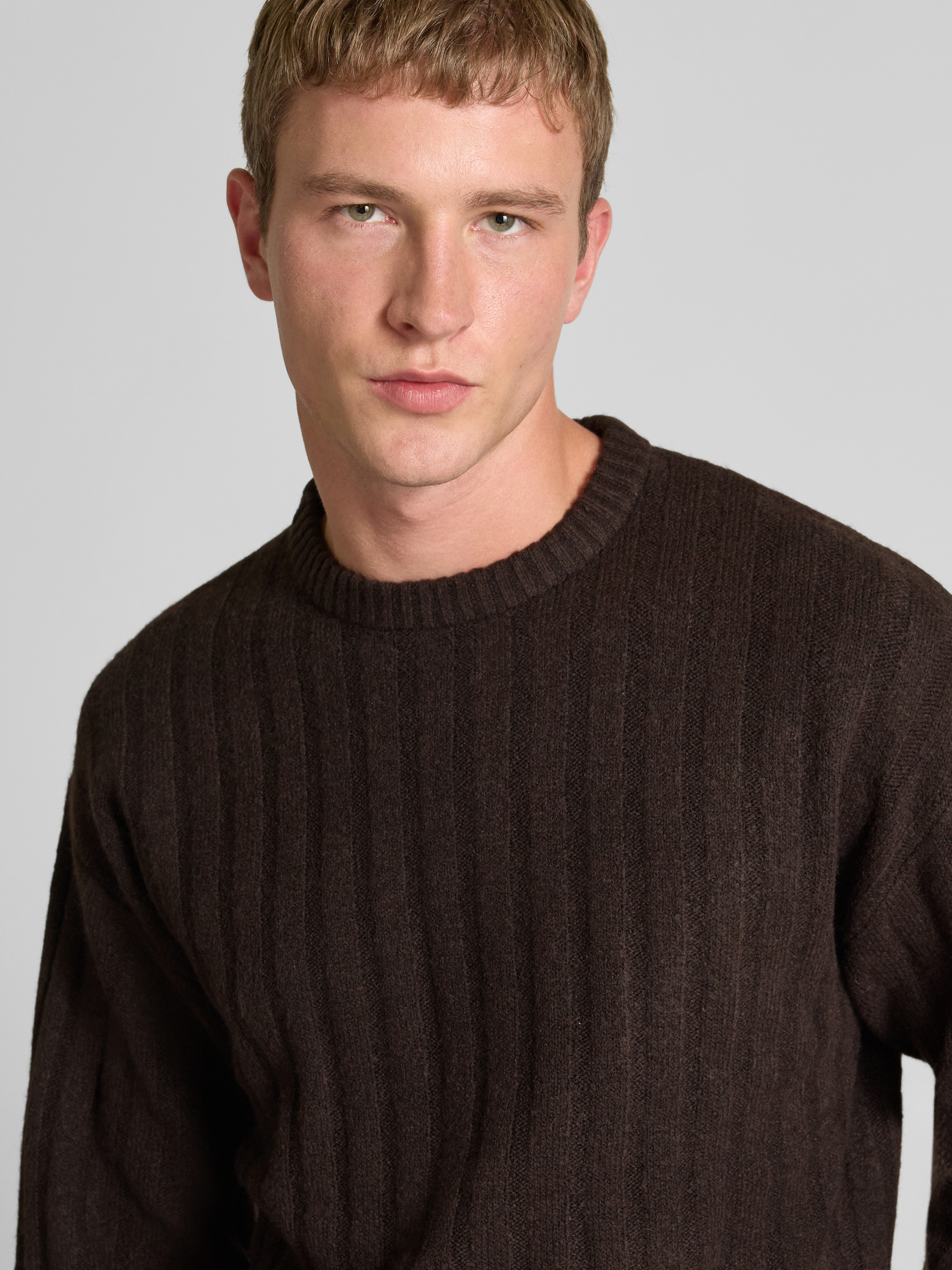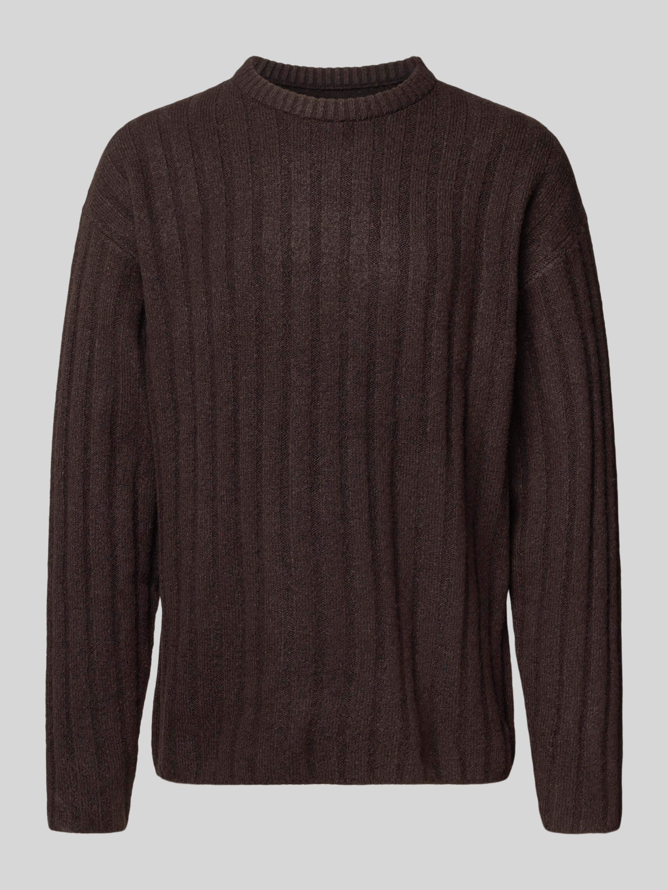 Gebreide pullover met ribboorden, model 'BRADLEY' in donkerbruin