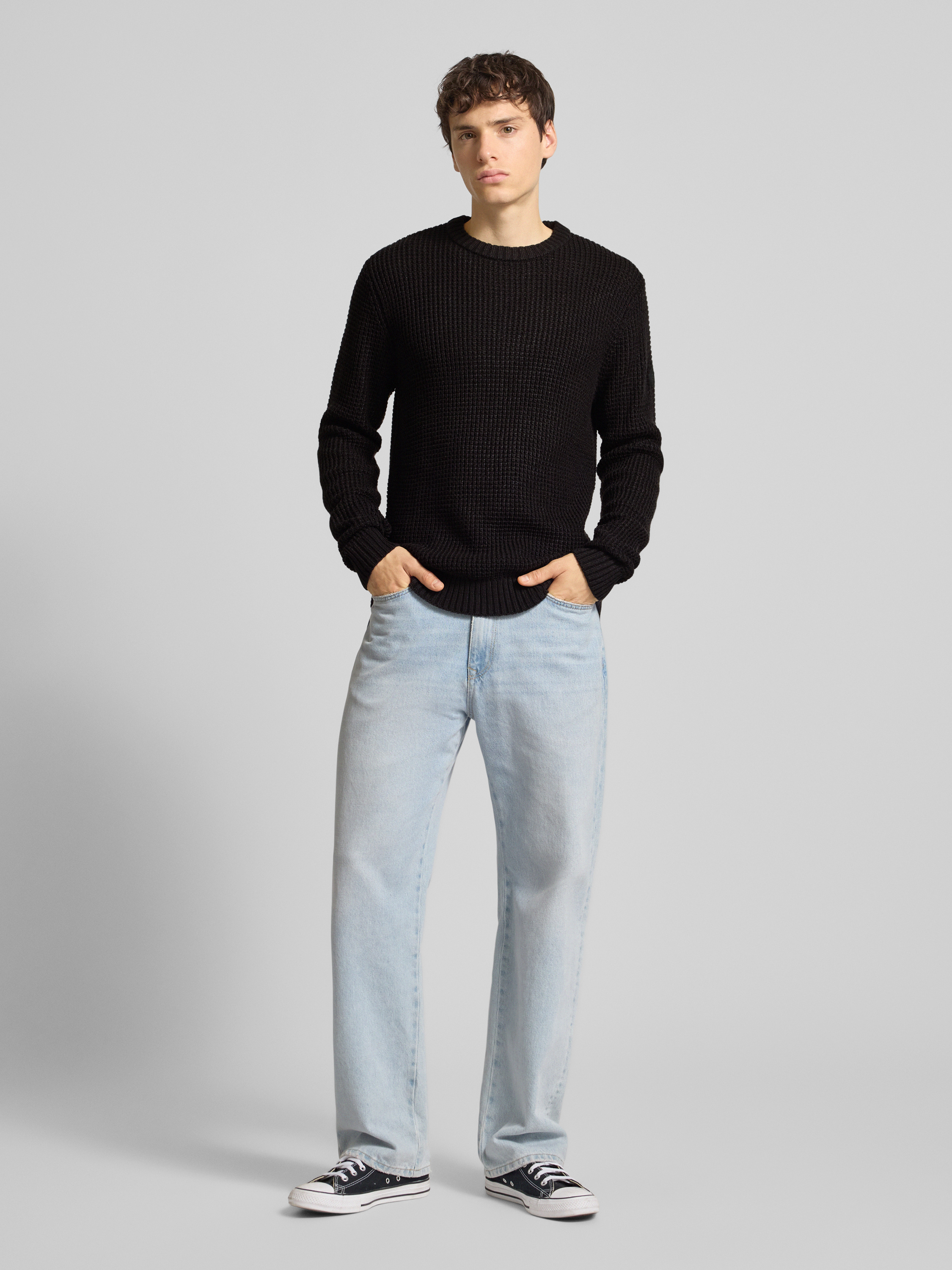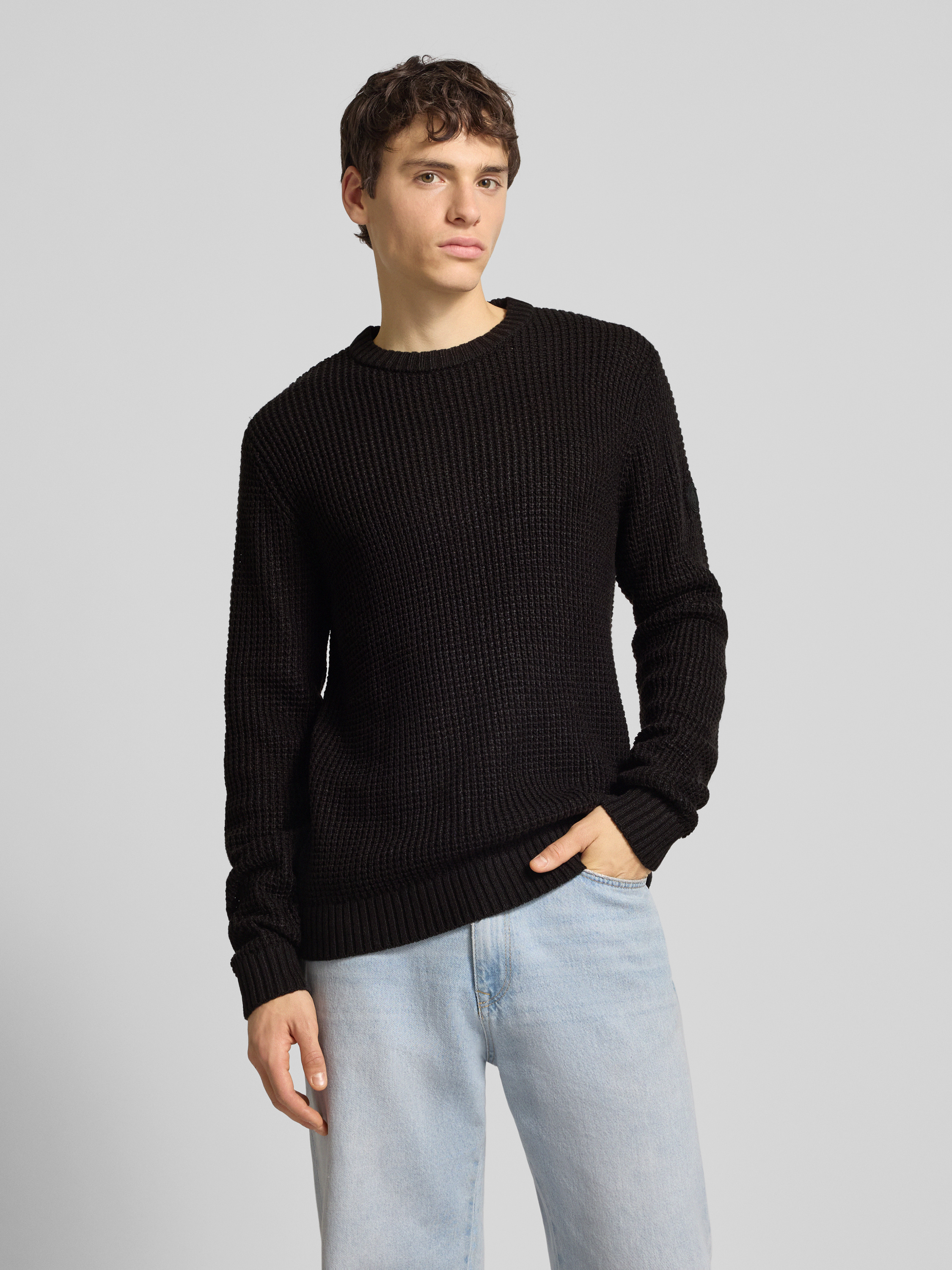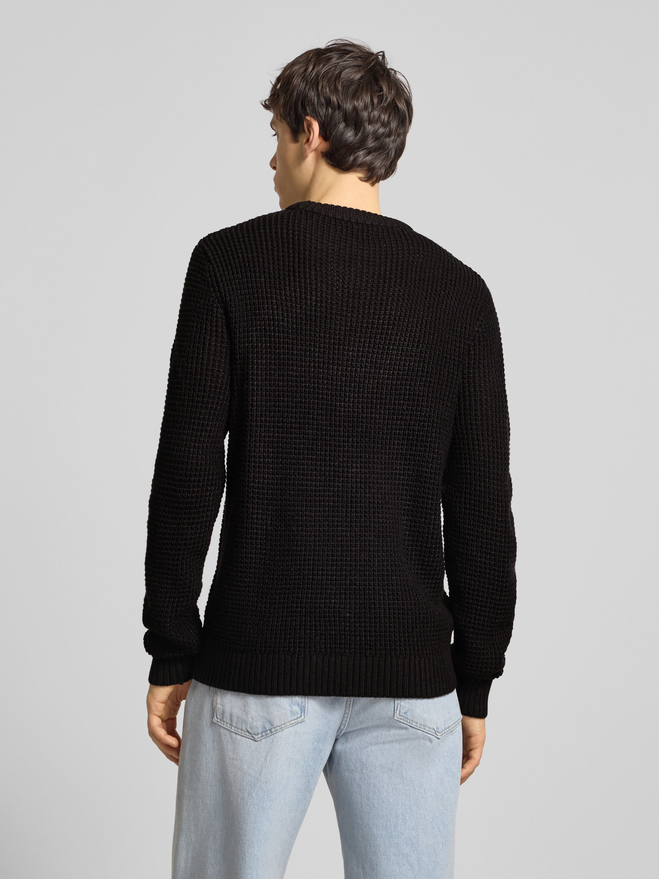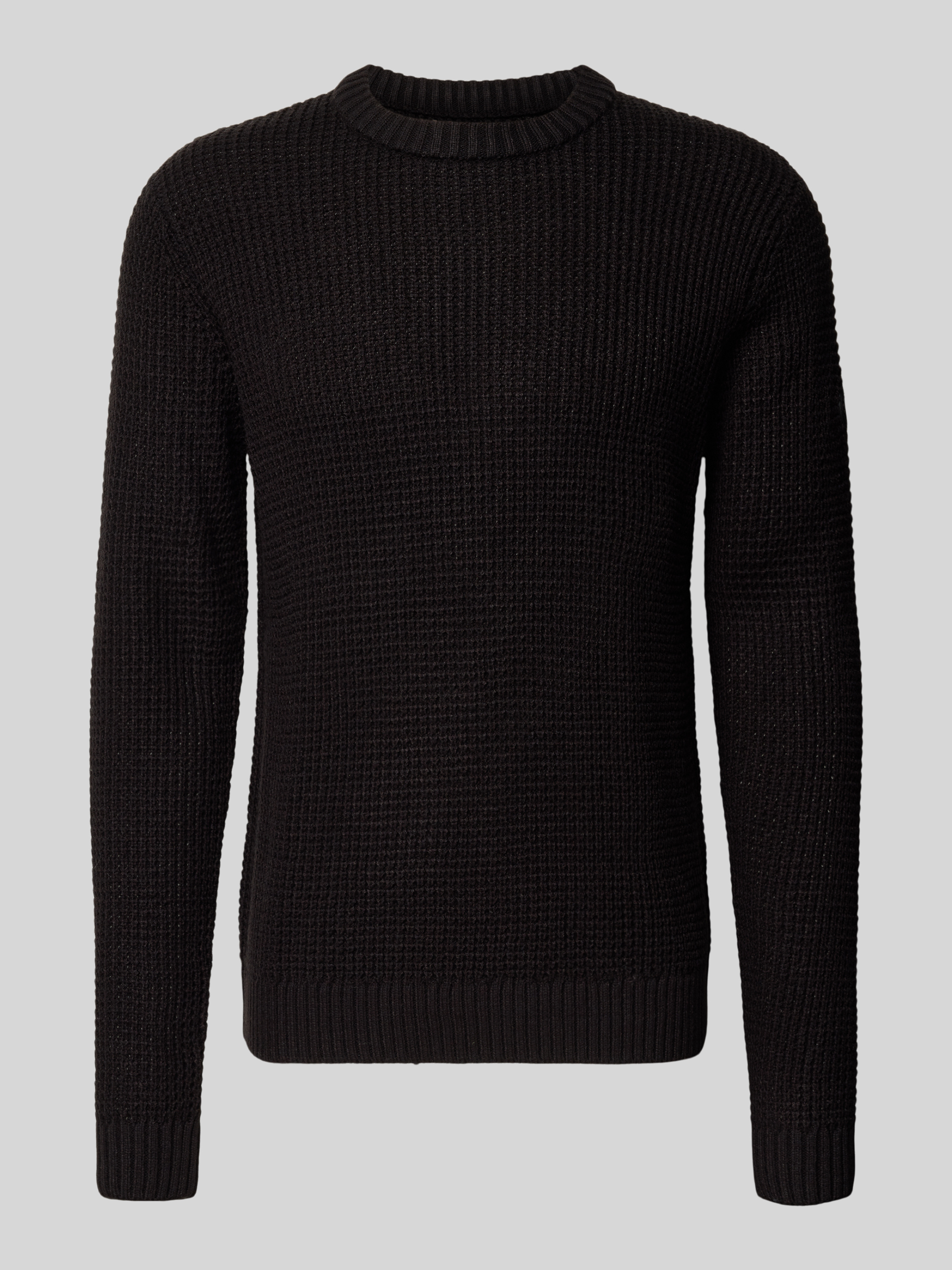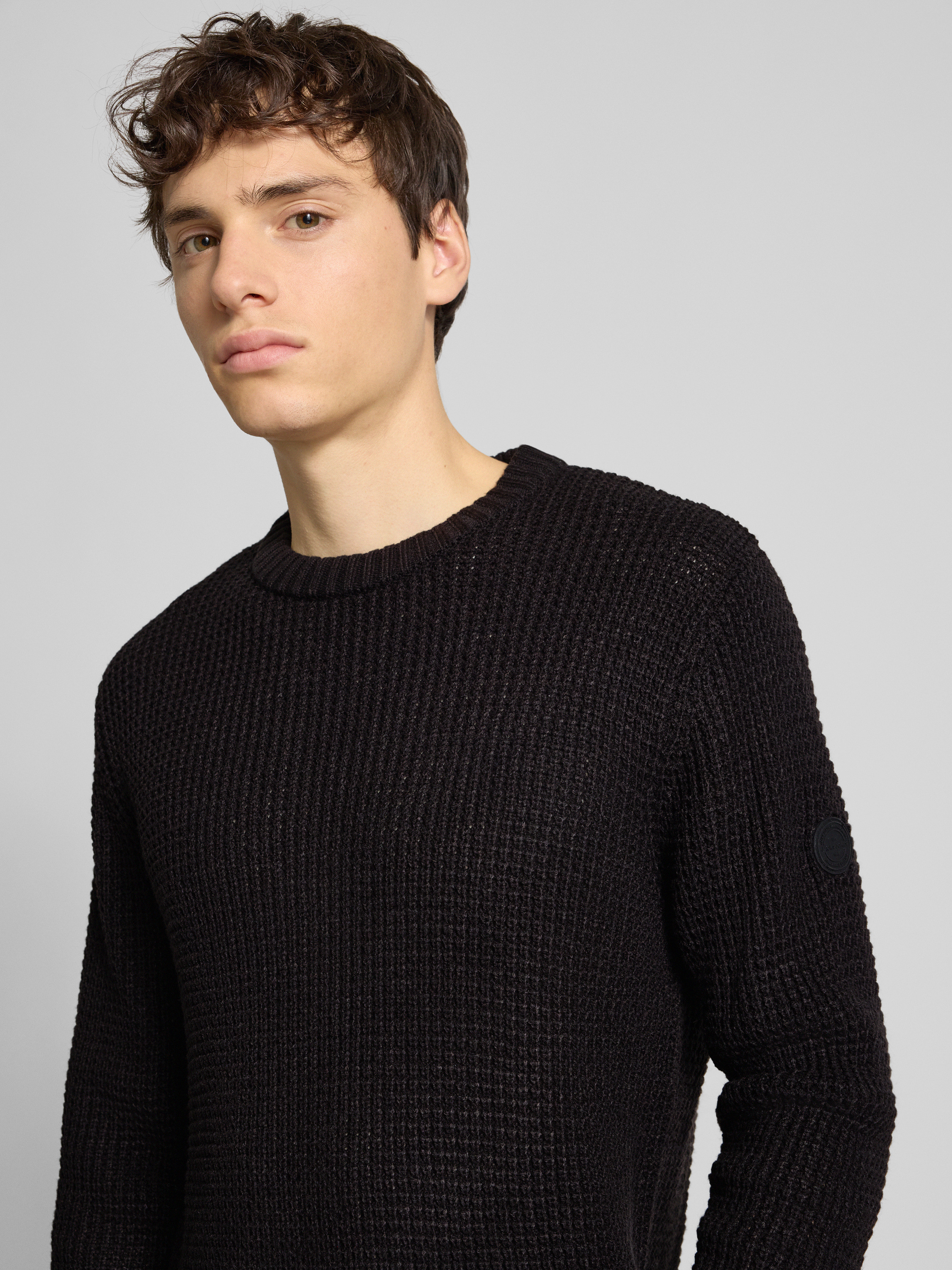 Gebreide pullover met ribboorden, model 'LIAM' in zwart