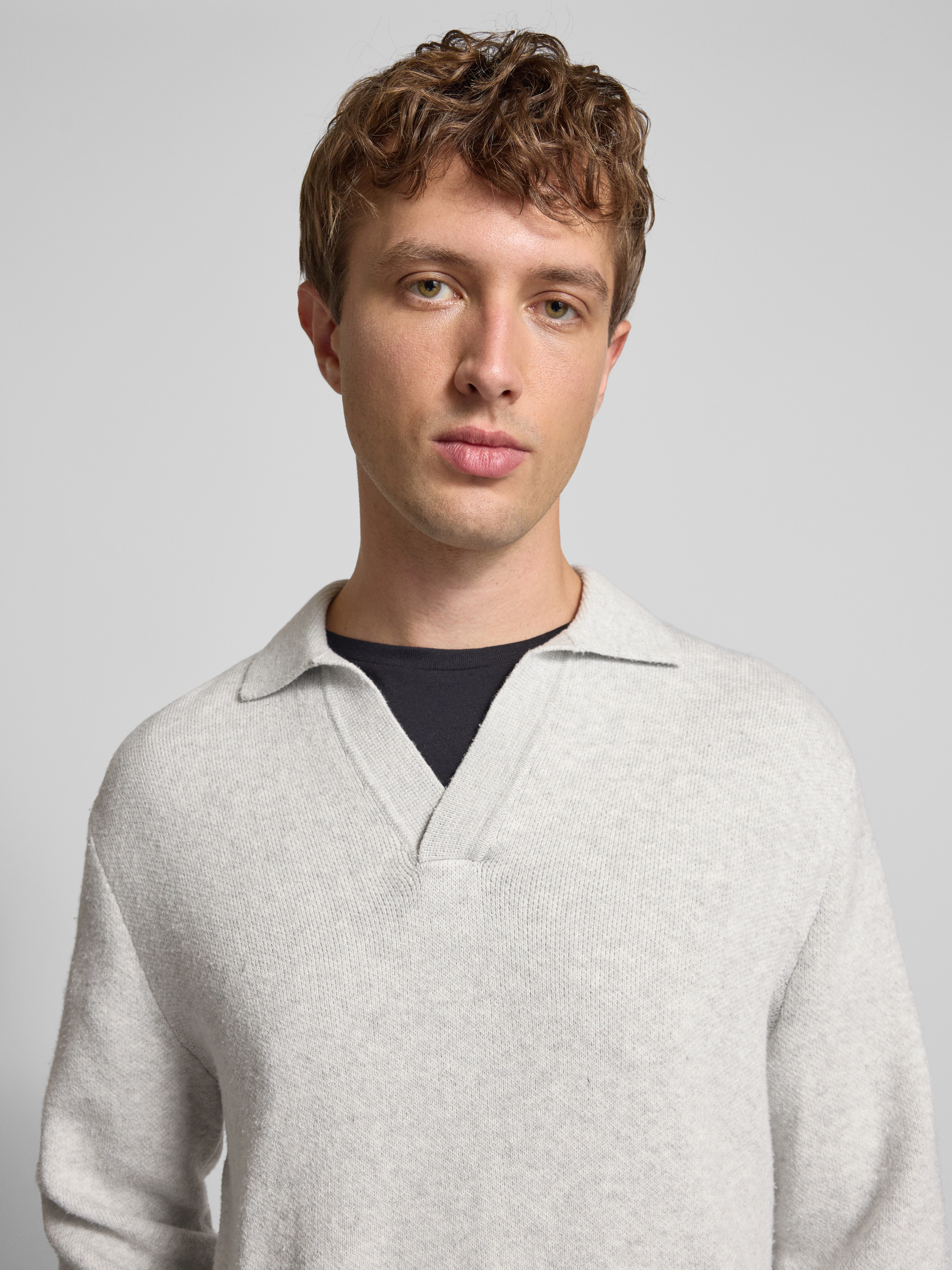 Gebreide pullover met V-hals, model 'COVER' in lichtgrijs gemêleerd