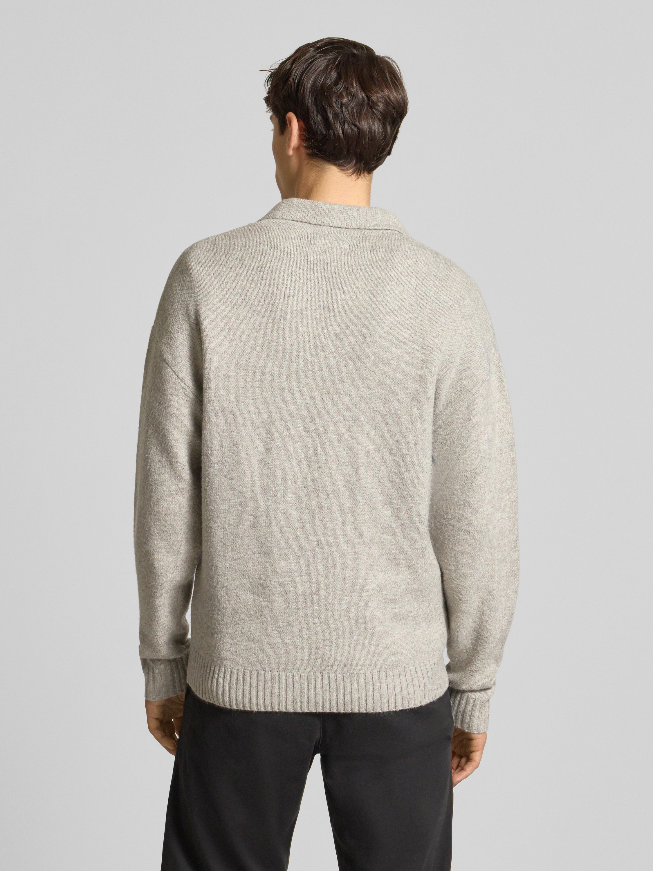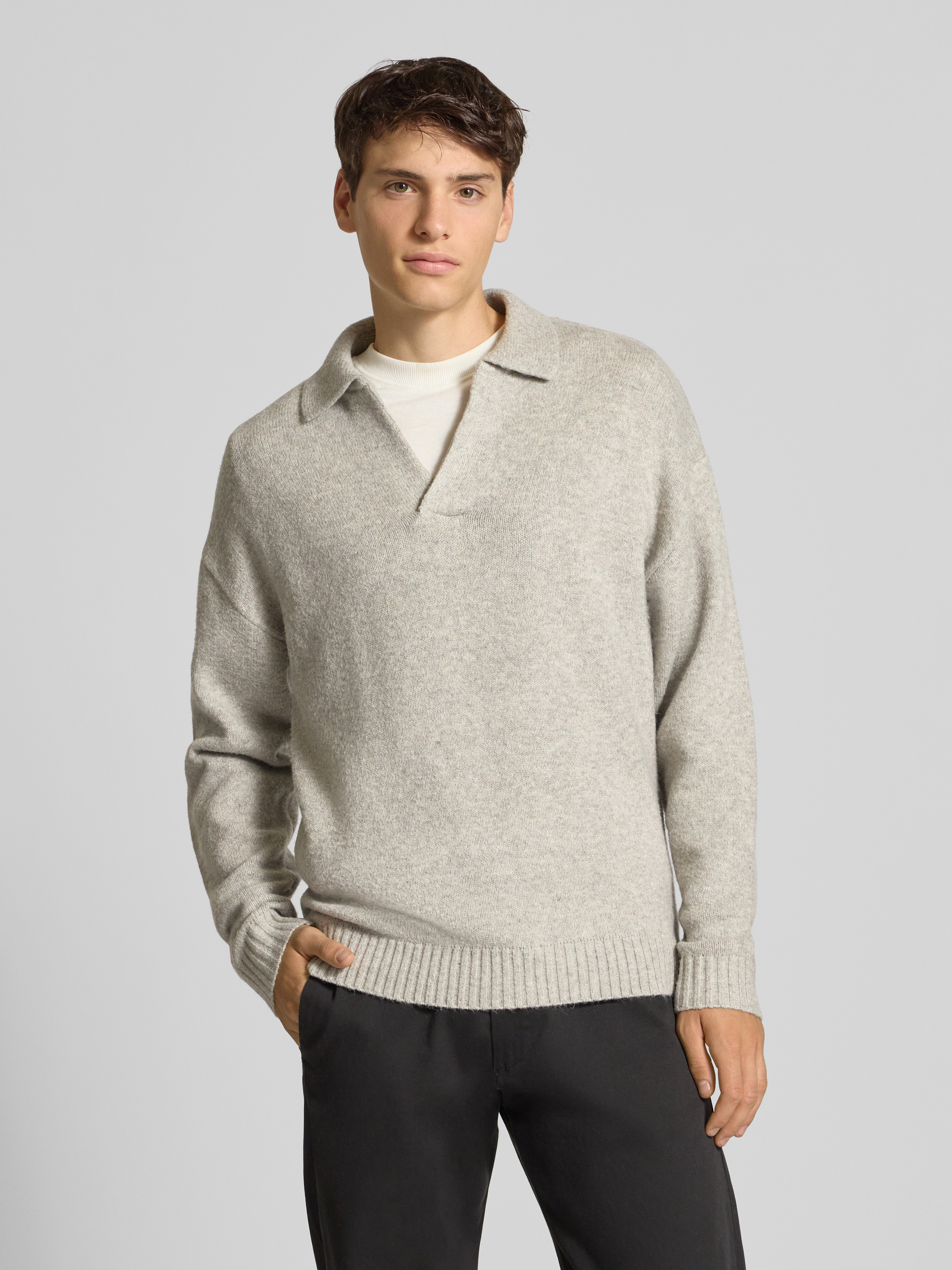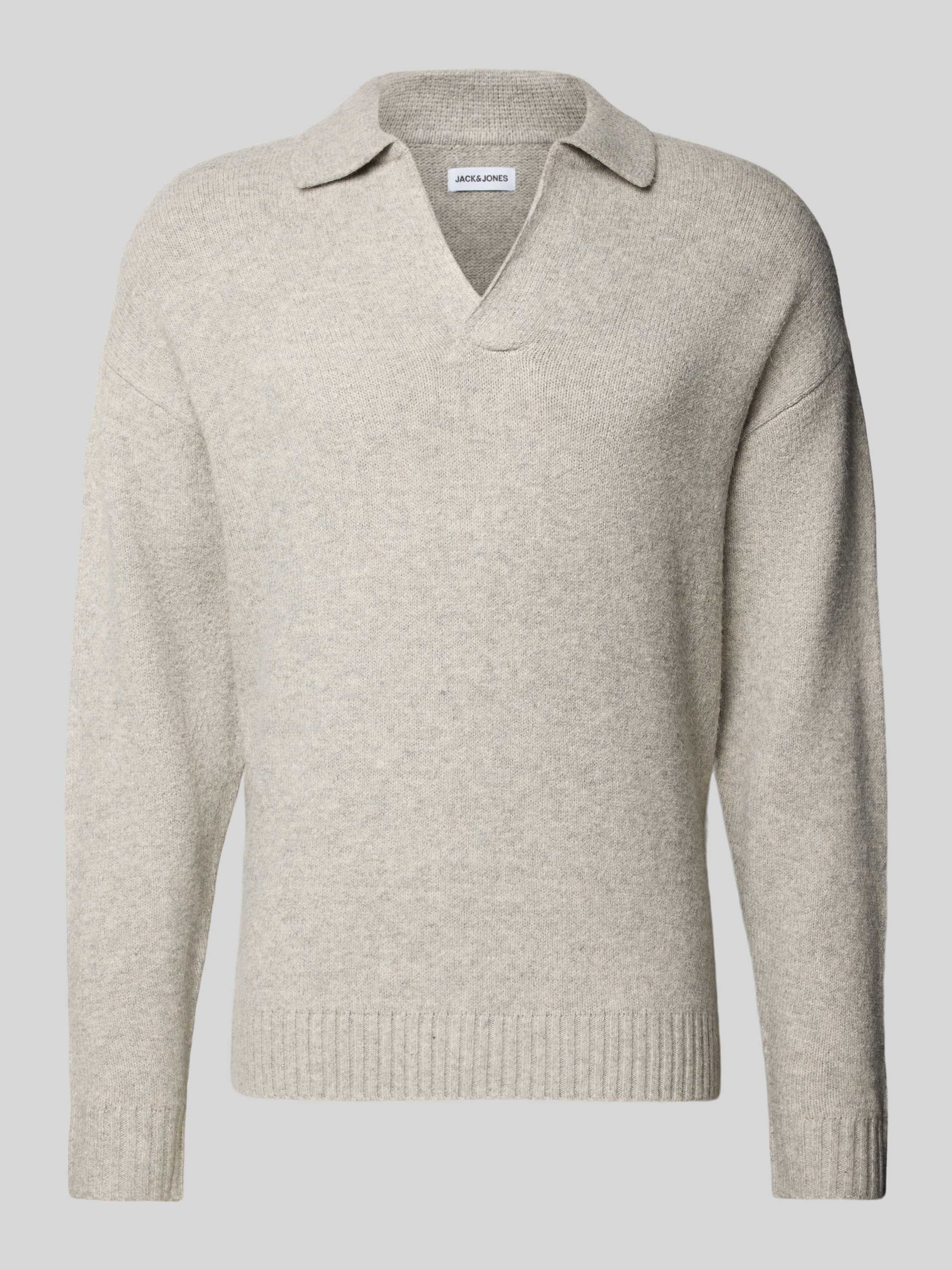 Gebreide pullover met V-hals, model 'SOHO' in lichtgrijs gemêleerd
