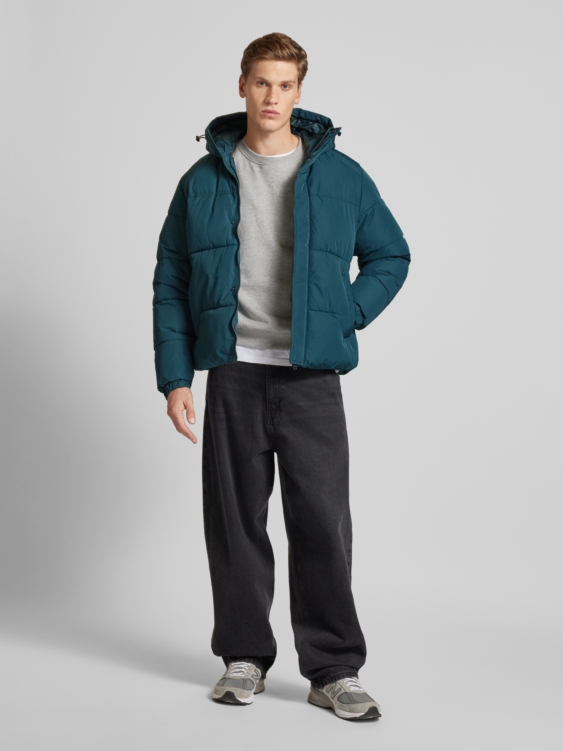 Gewatteerd jack met capuchon, model 'BRADLEY' in petrol