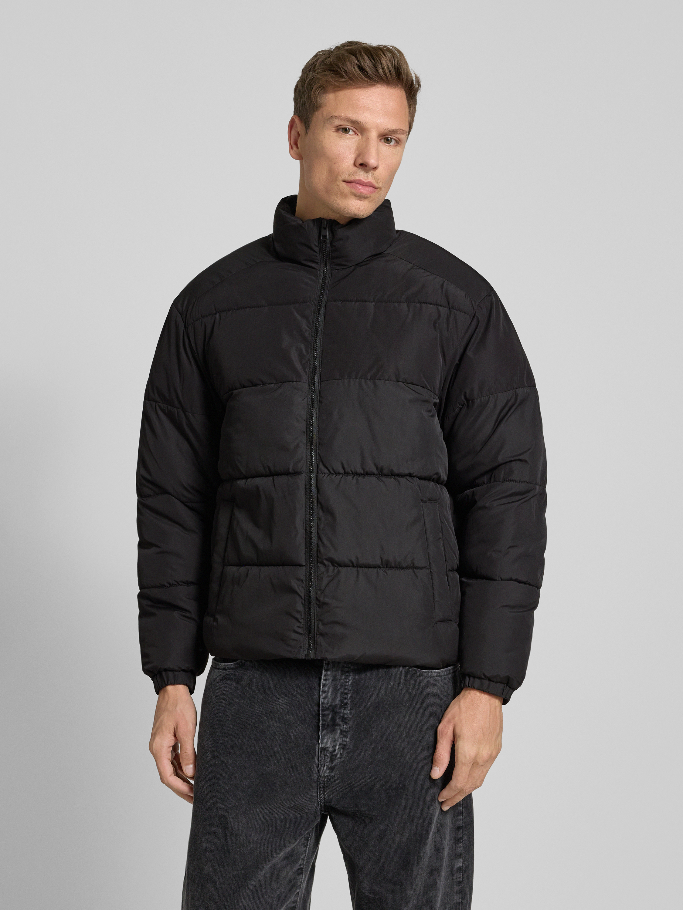 Gewatteerd jack met opstaande kraag, model 'MAZE' in zwart