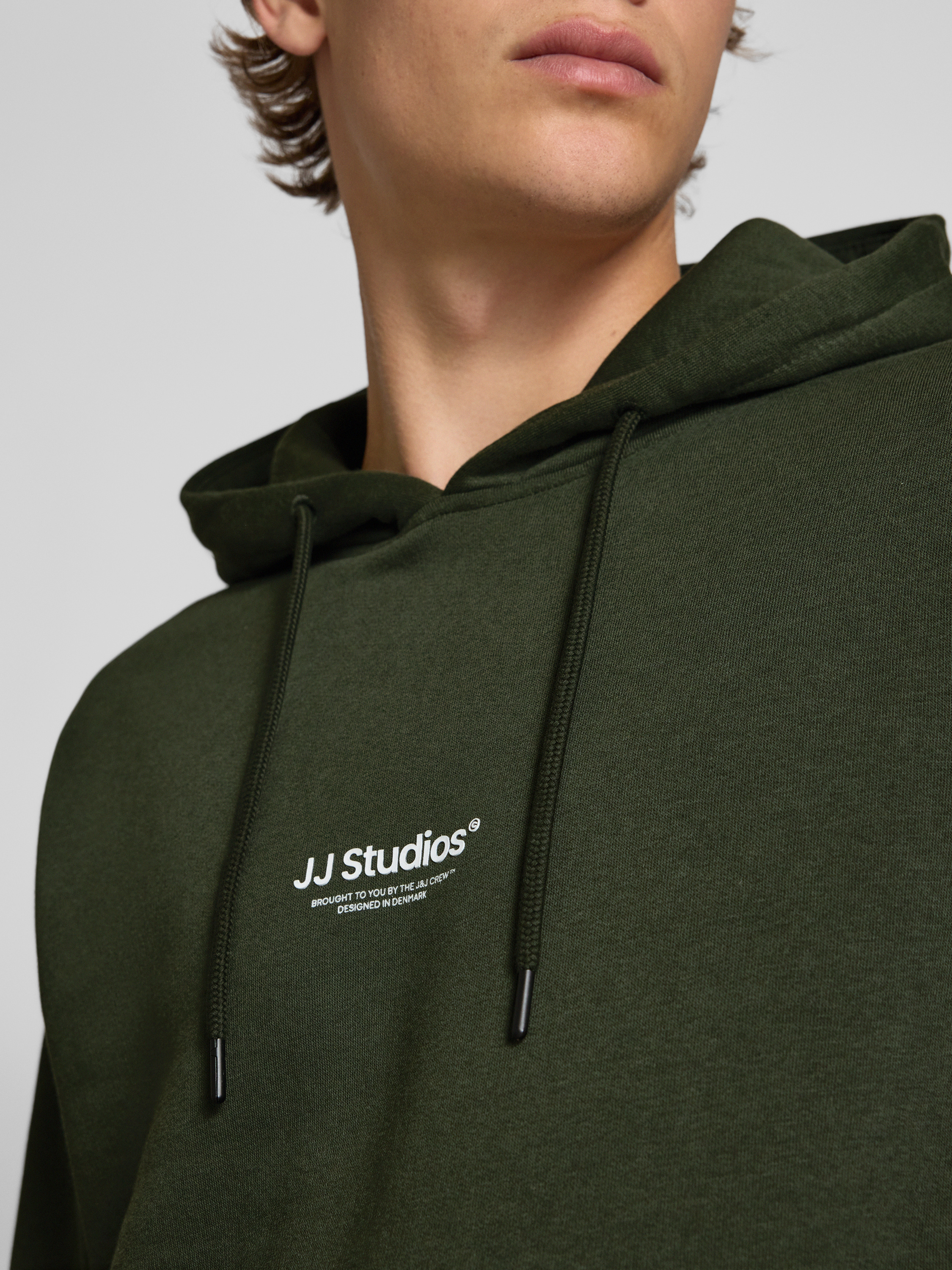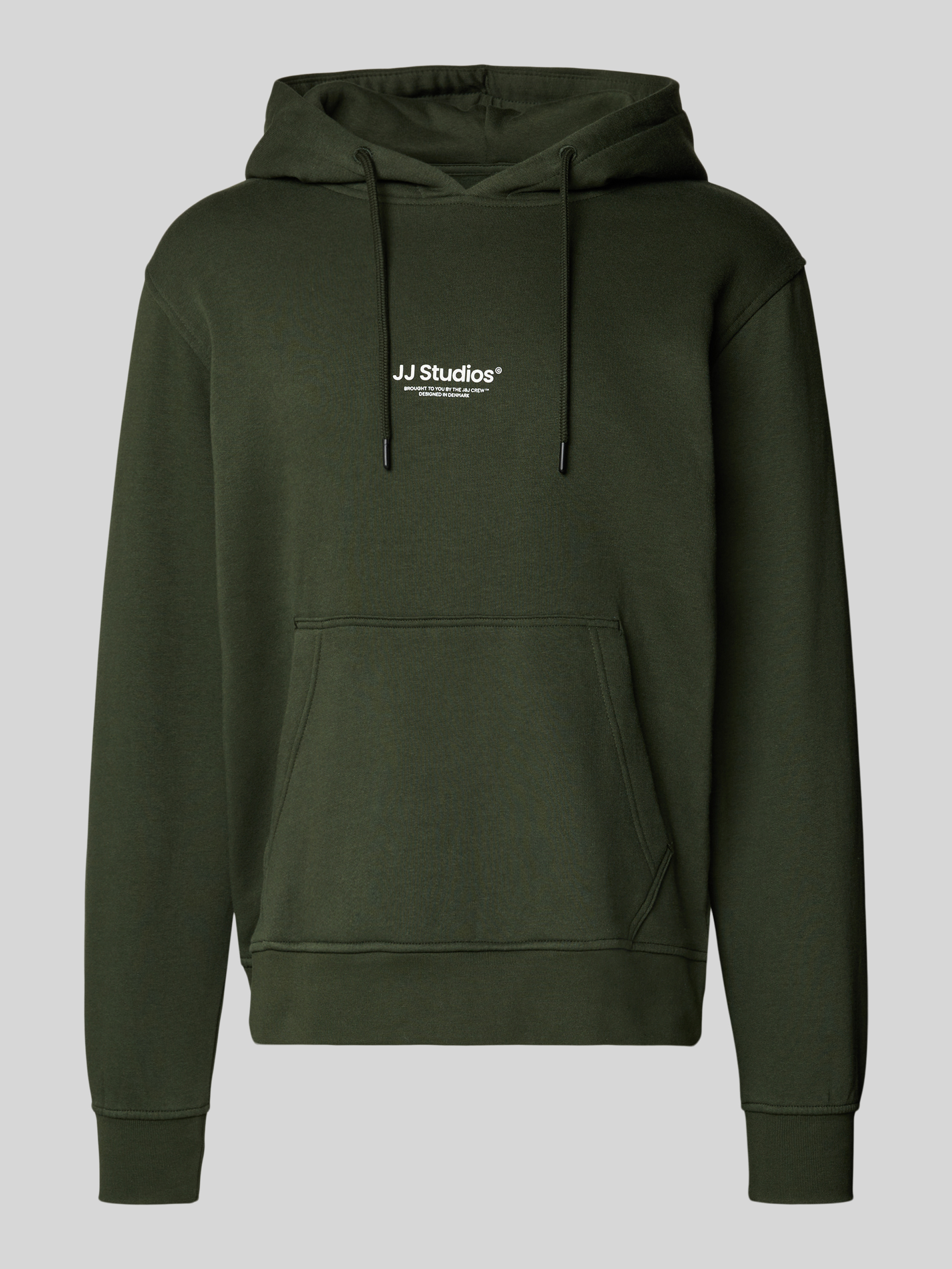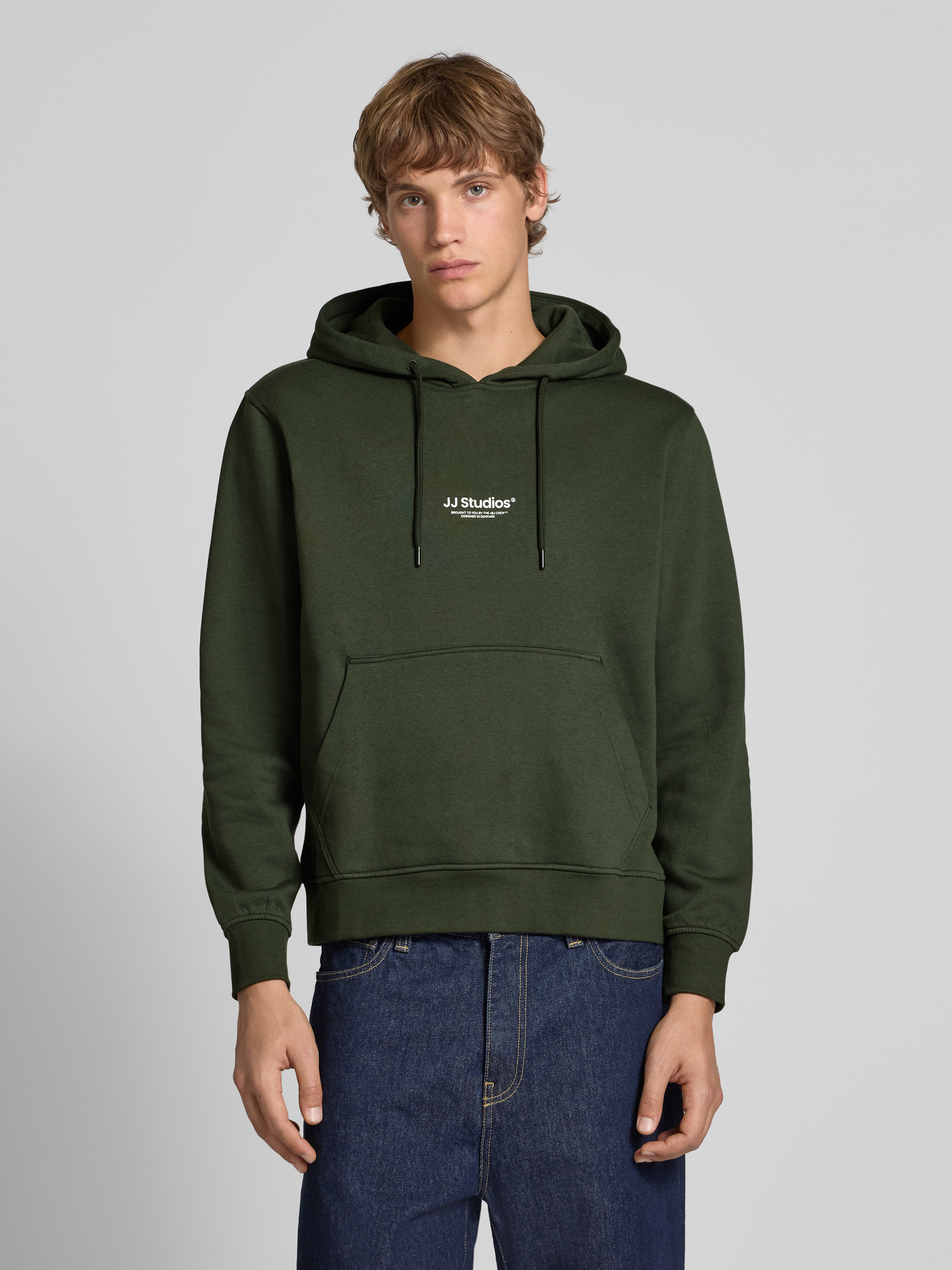 Hoodie met labelprint, model 'SOHO' in donkergroen
