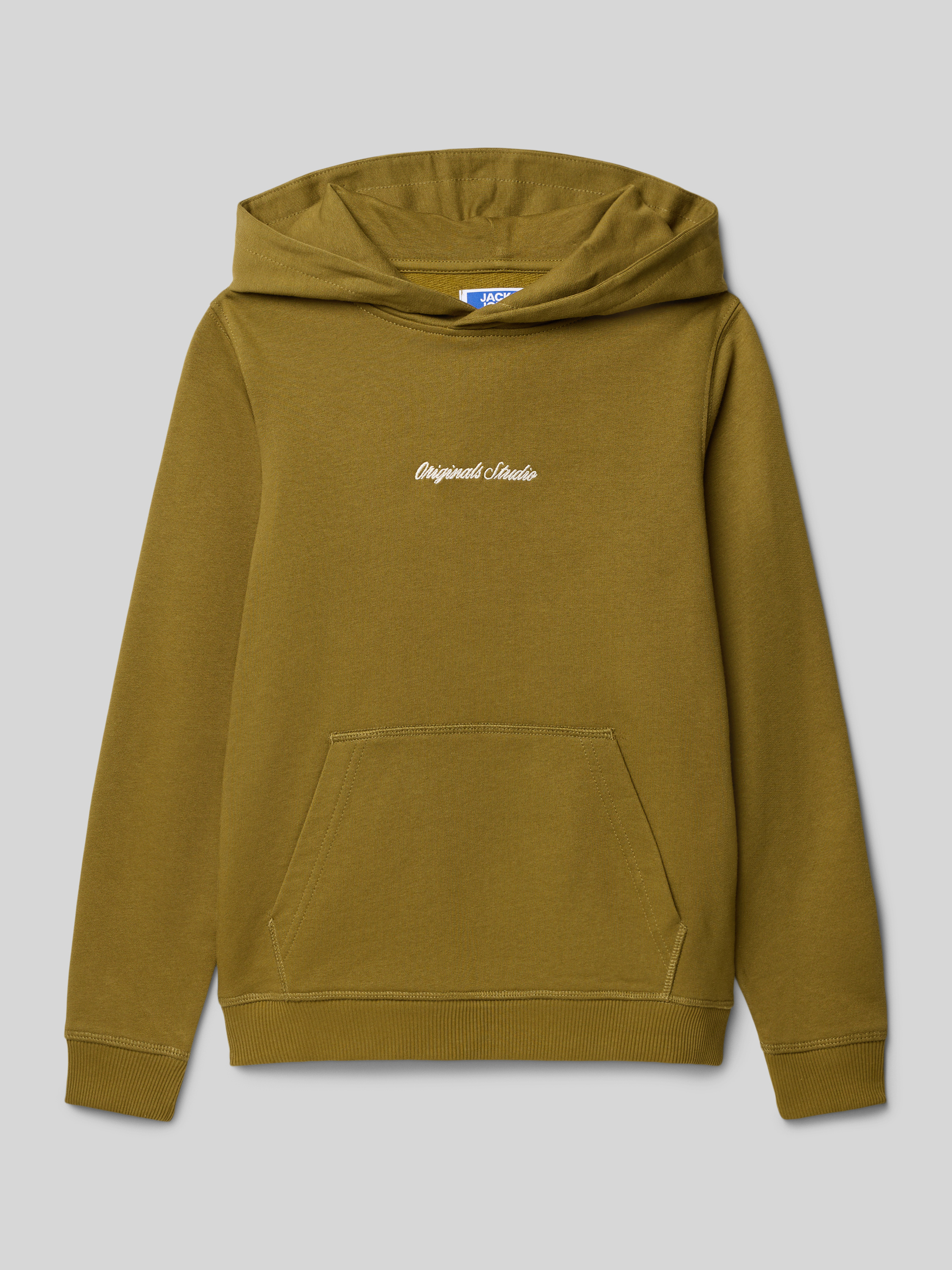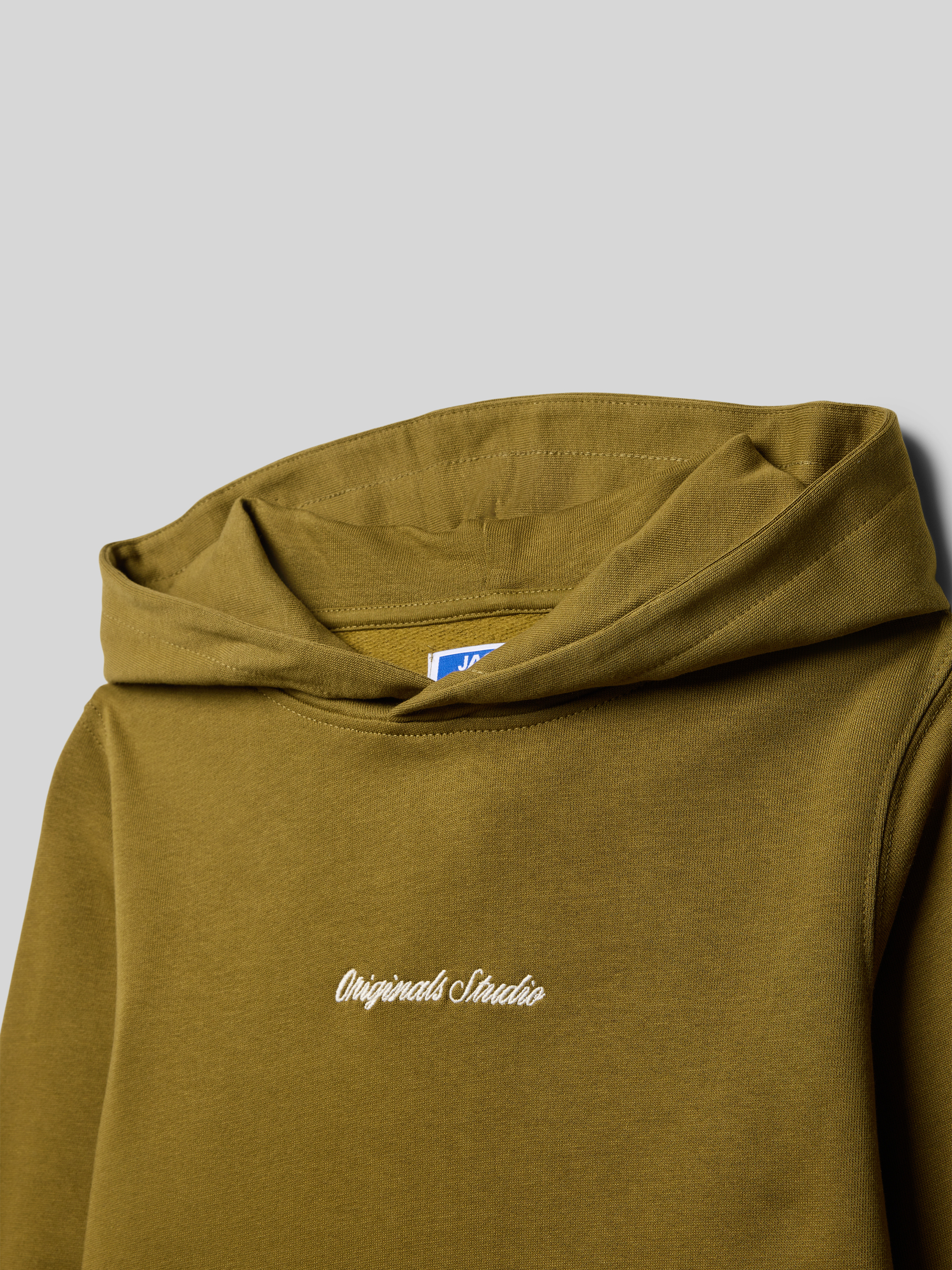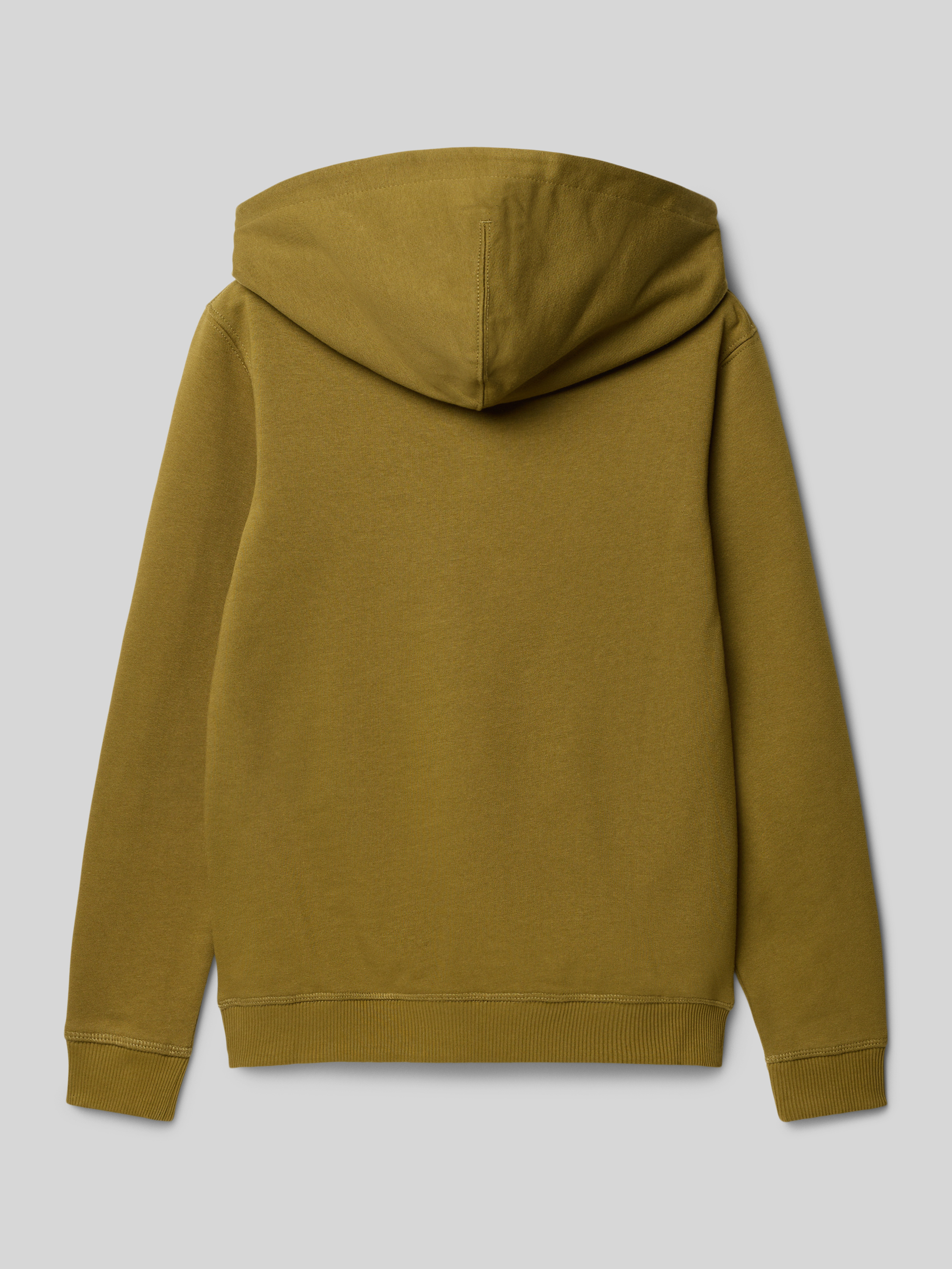 Hoodie met labelstitching en kangoeroezak in olijfgroen
