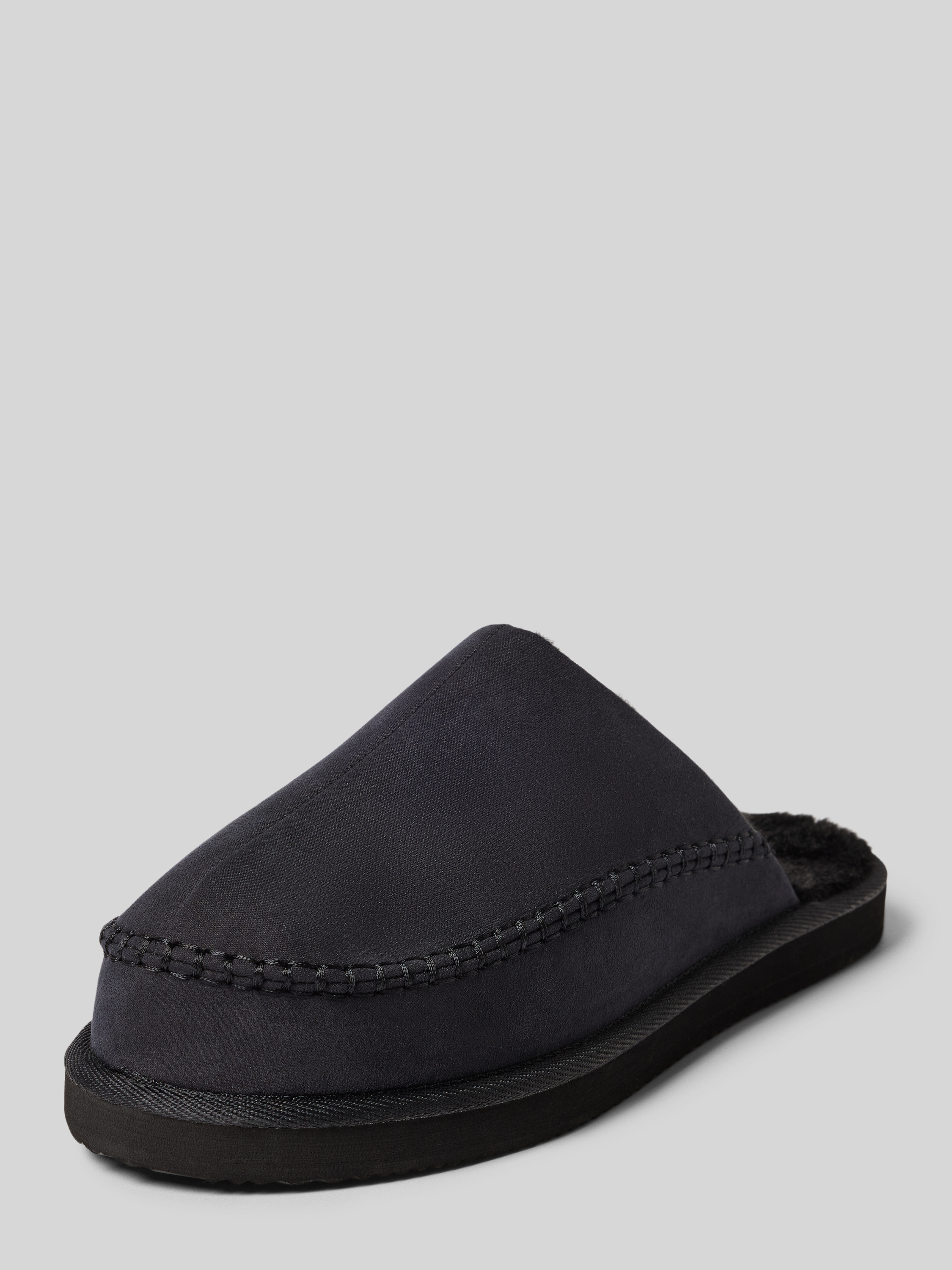Huisschoenen met voering van imitatiebont, model 'MANOR MOC MULE' in zwart