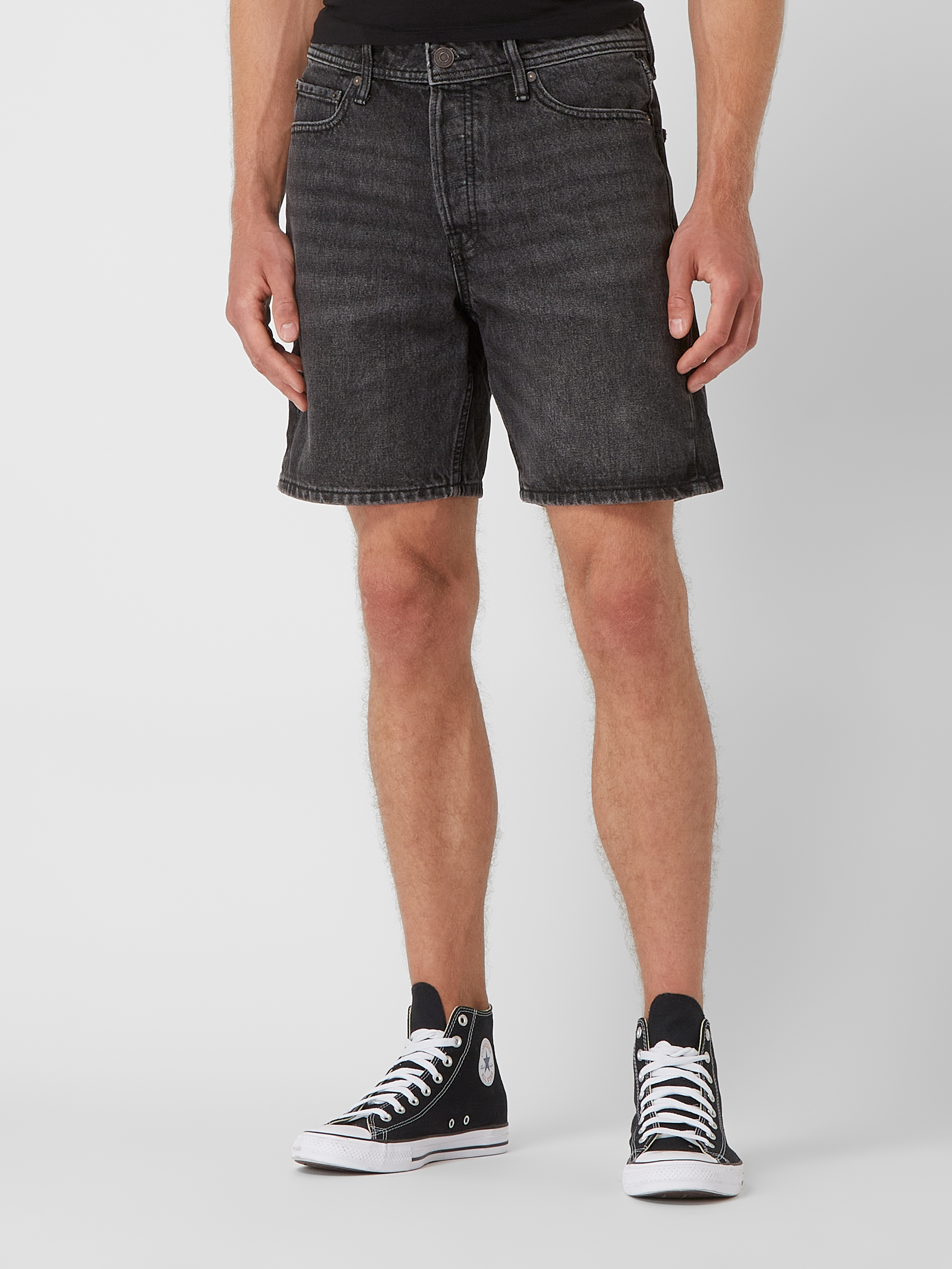 Korte loose fit jeans van katoen, model 'Chris' in antraciet