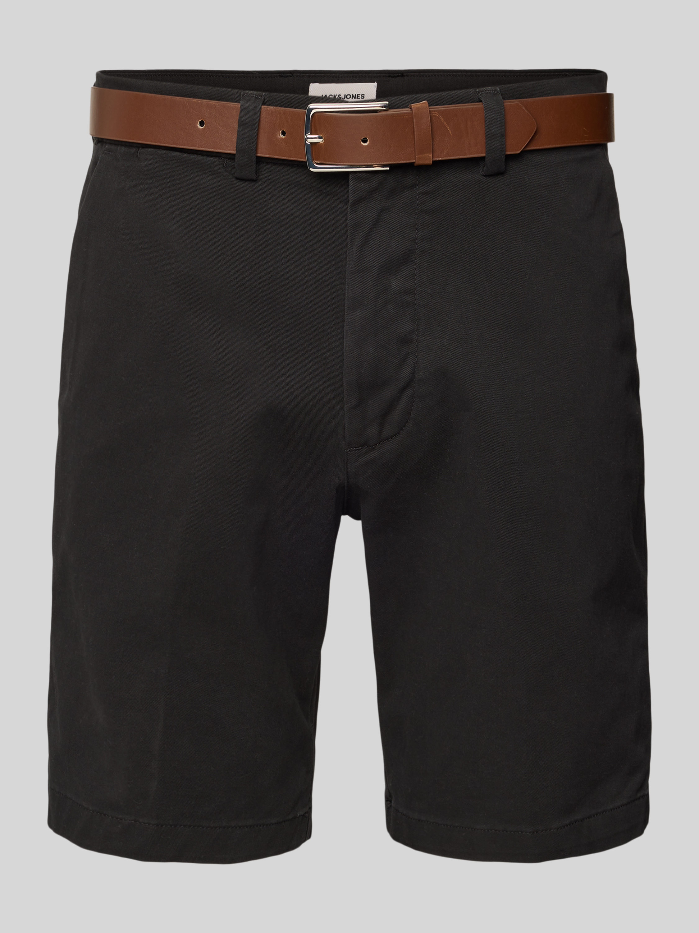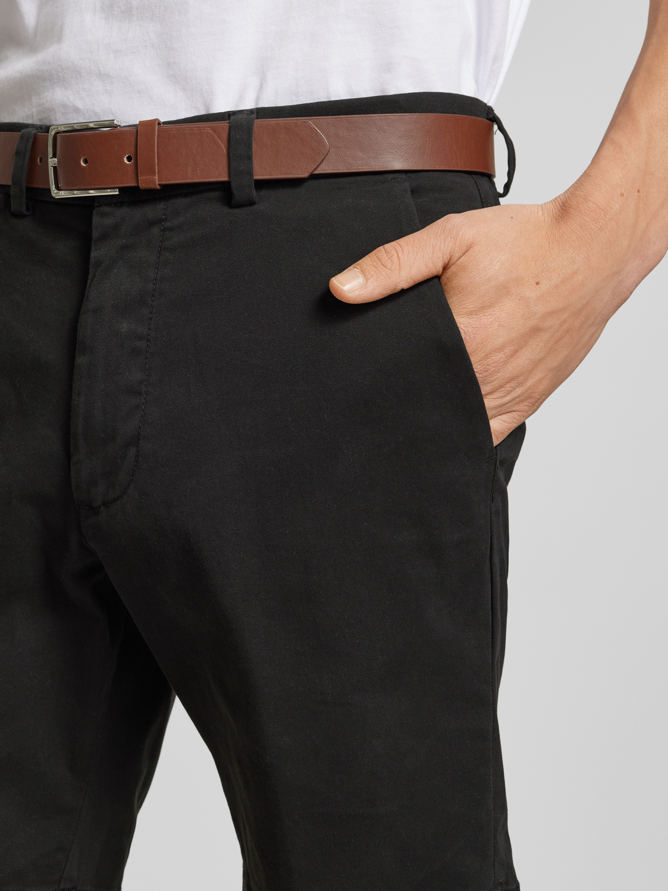Korte regular fit chino met riem, model 'MARCO FRANCO' in zwart