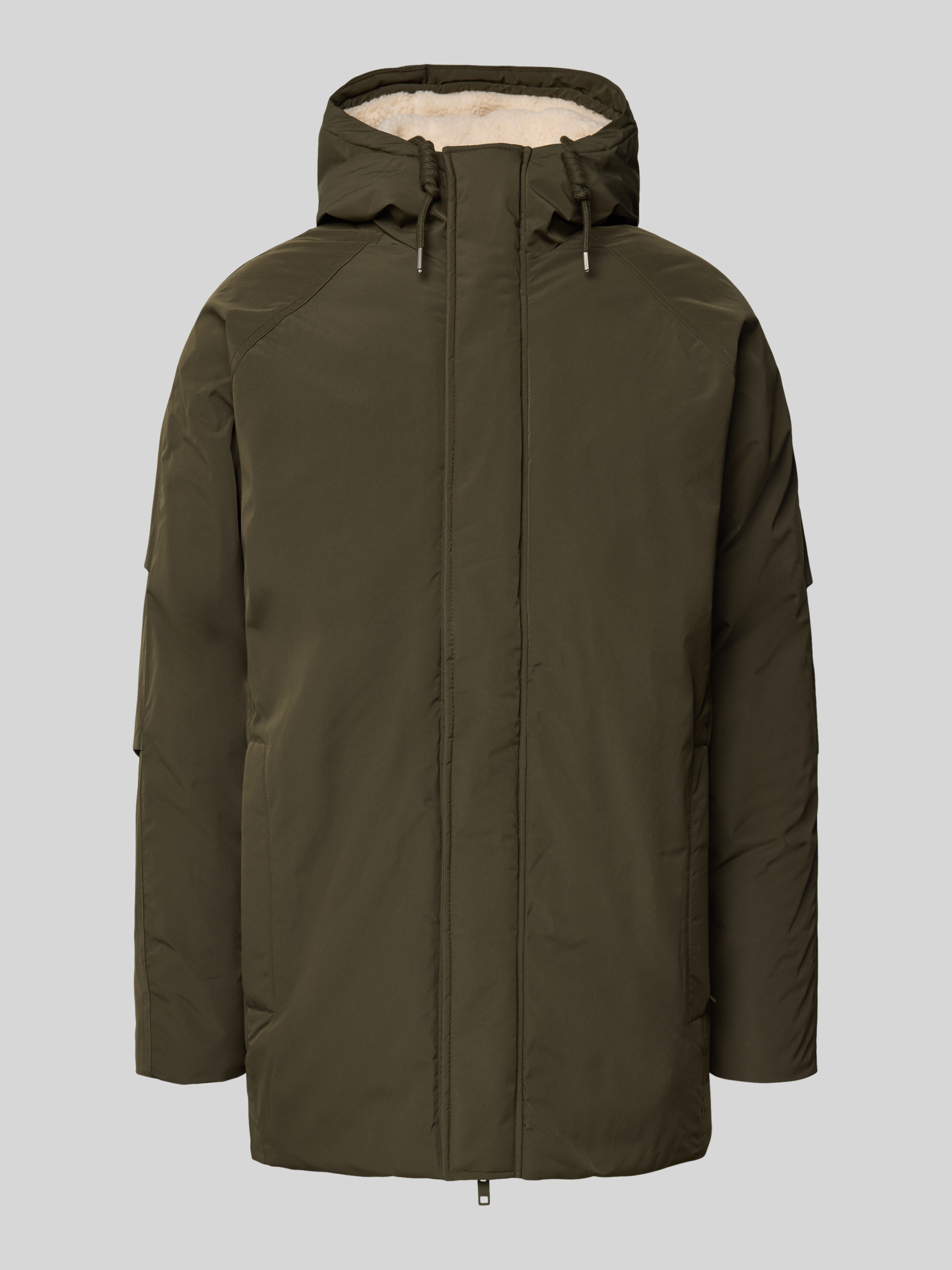 Parka met capuchon, model 'WOOD' in olijfgroen