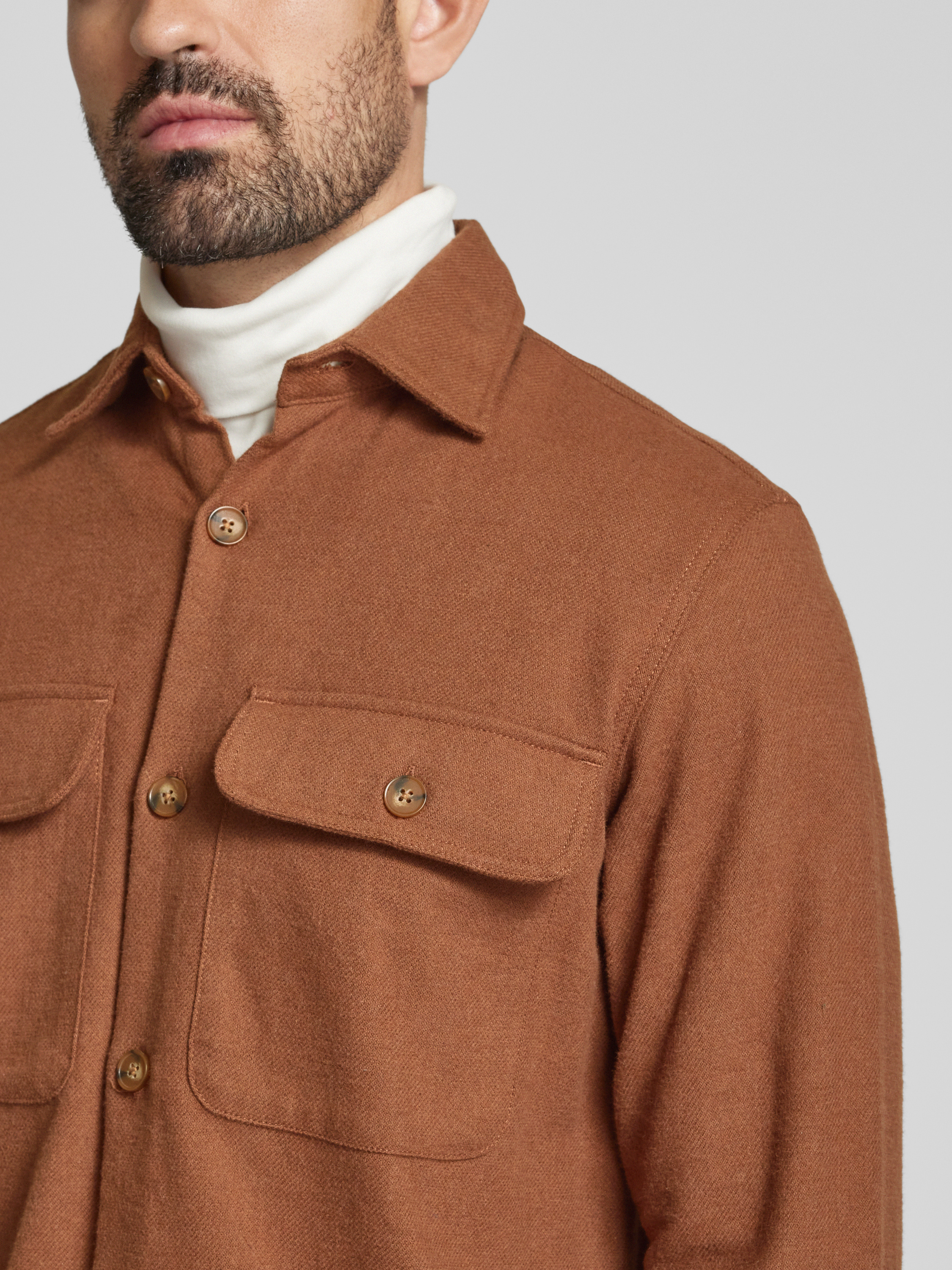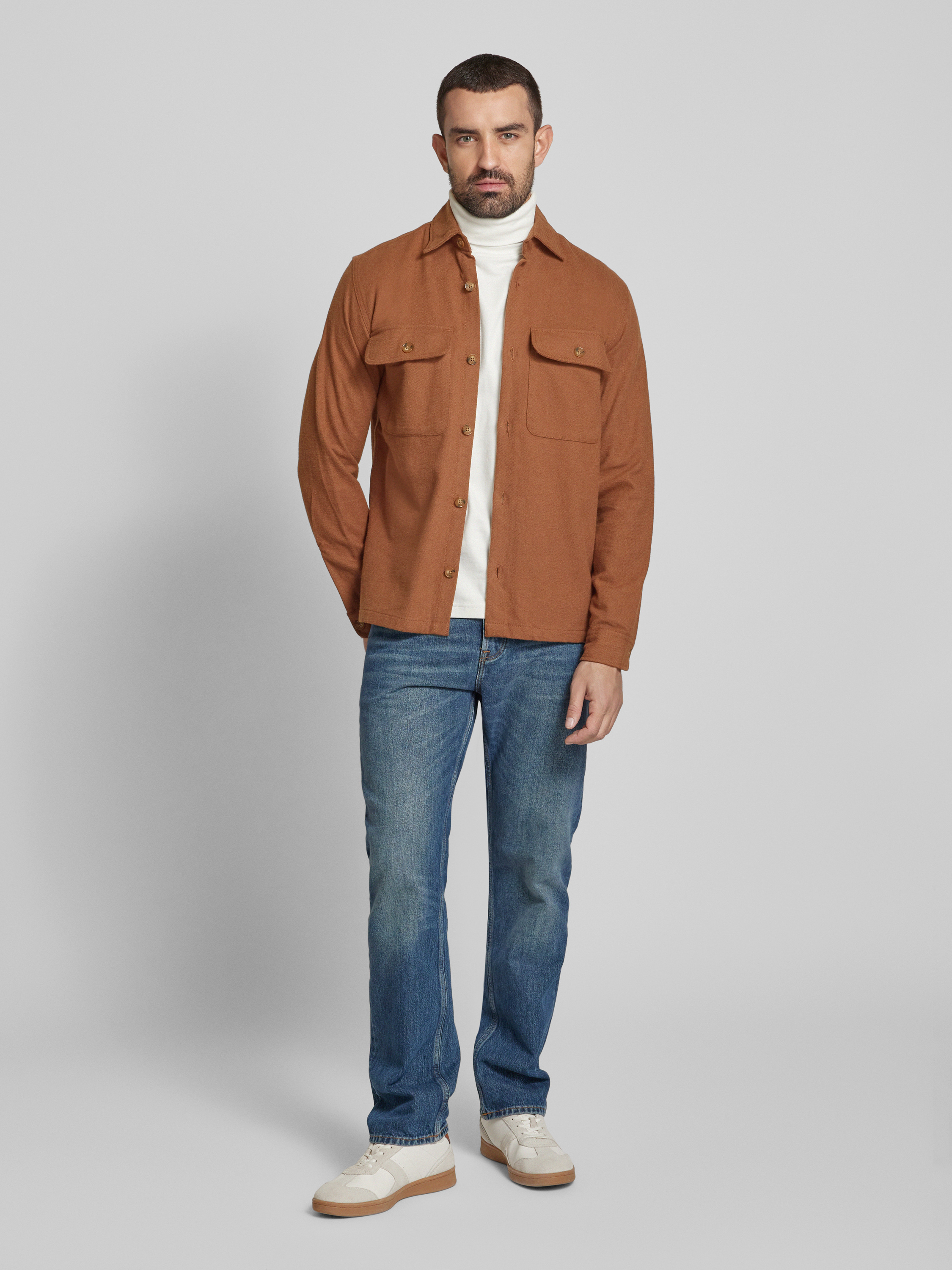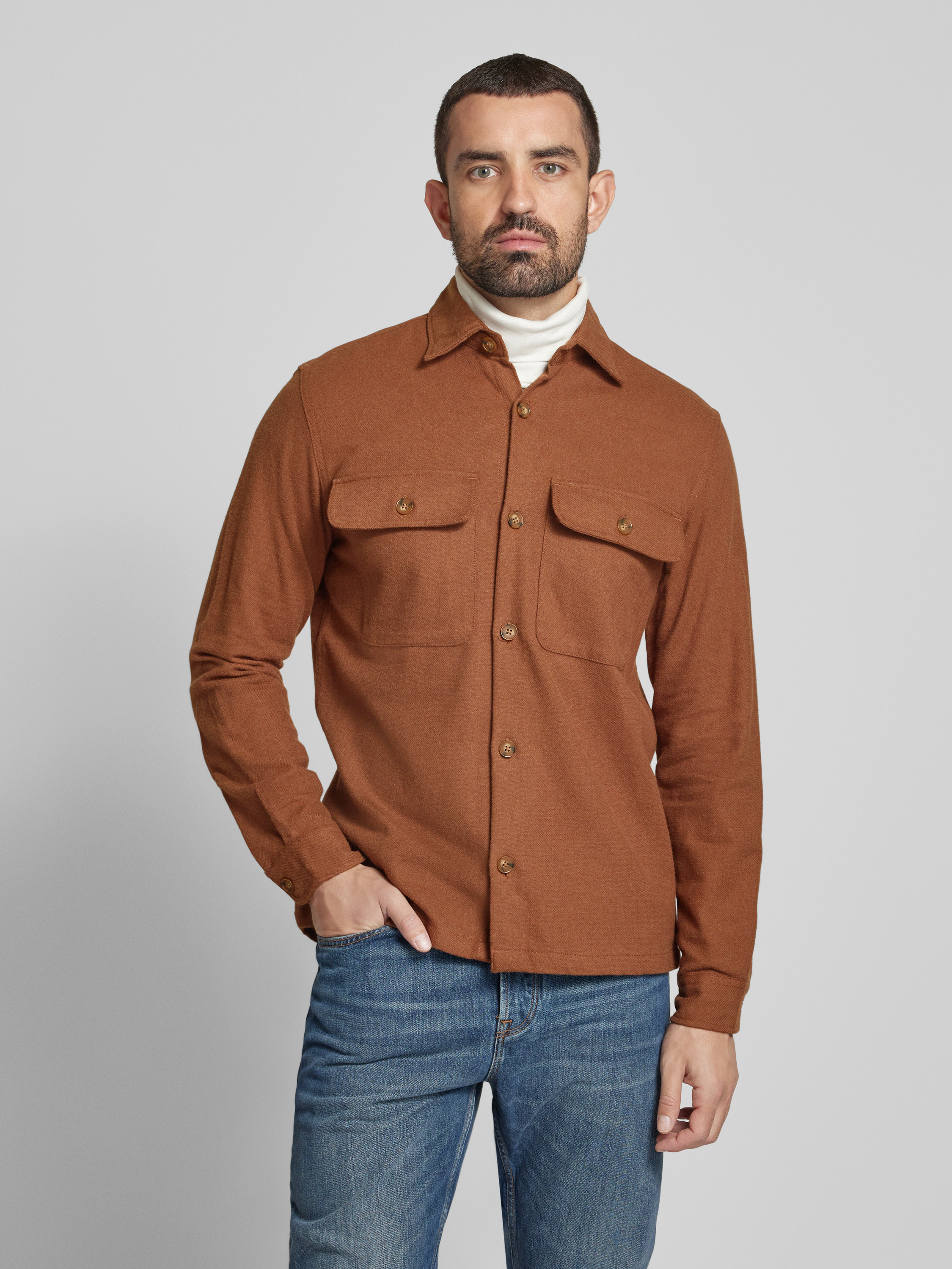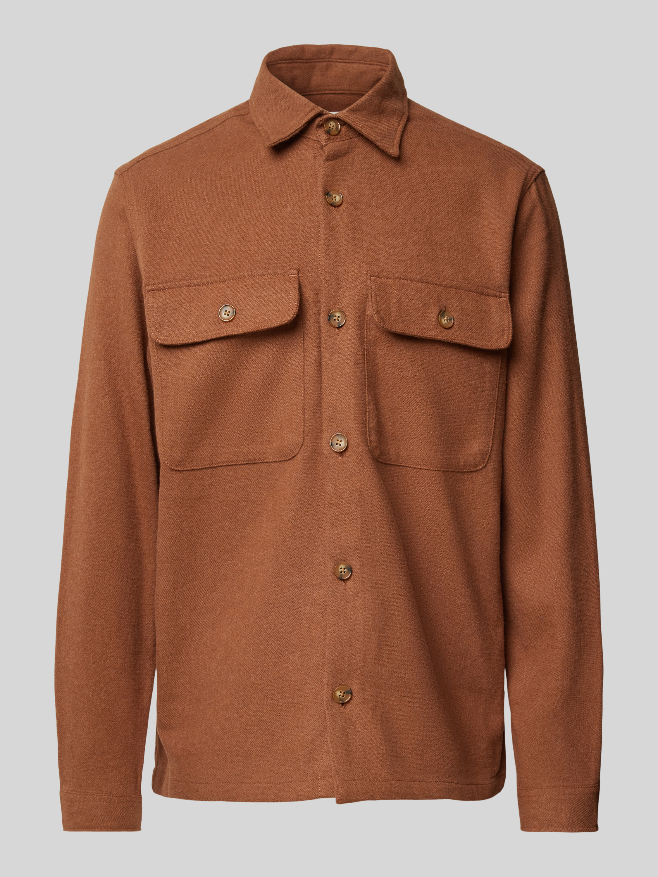 Comfort fit overhemdjack met klepzakken op de borst, model 'RAYMOND' in cognac