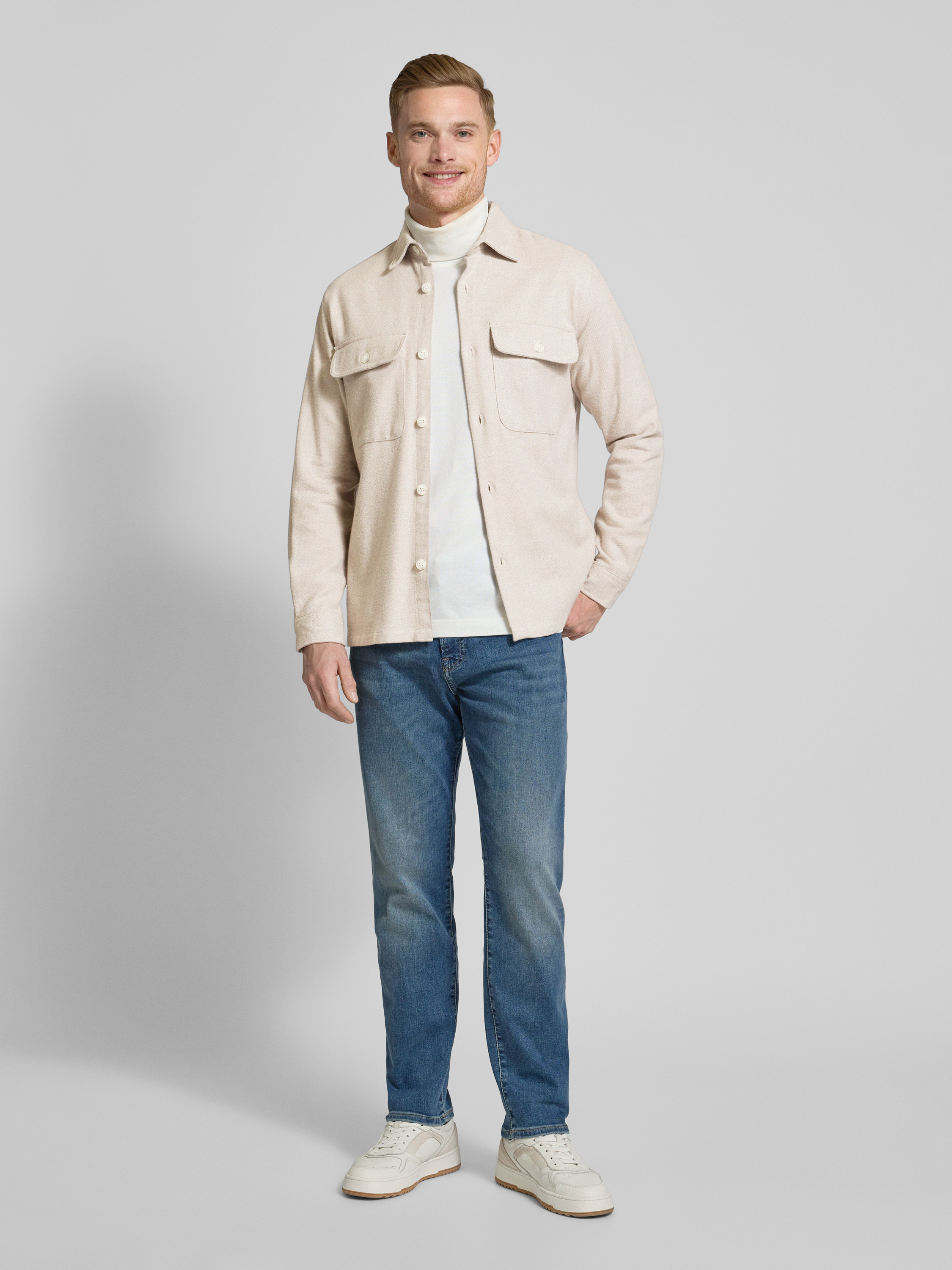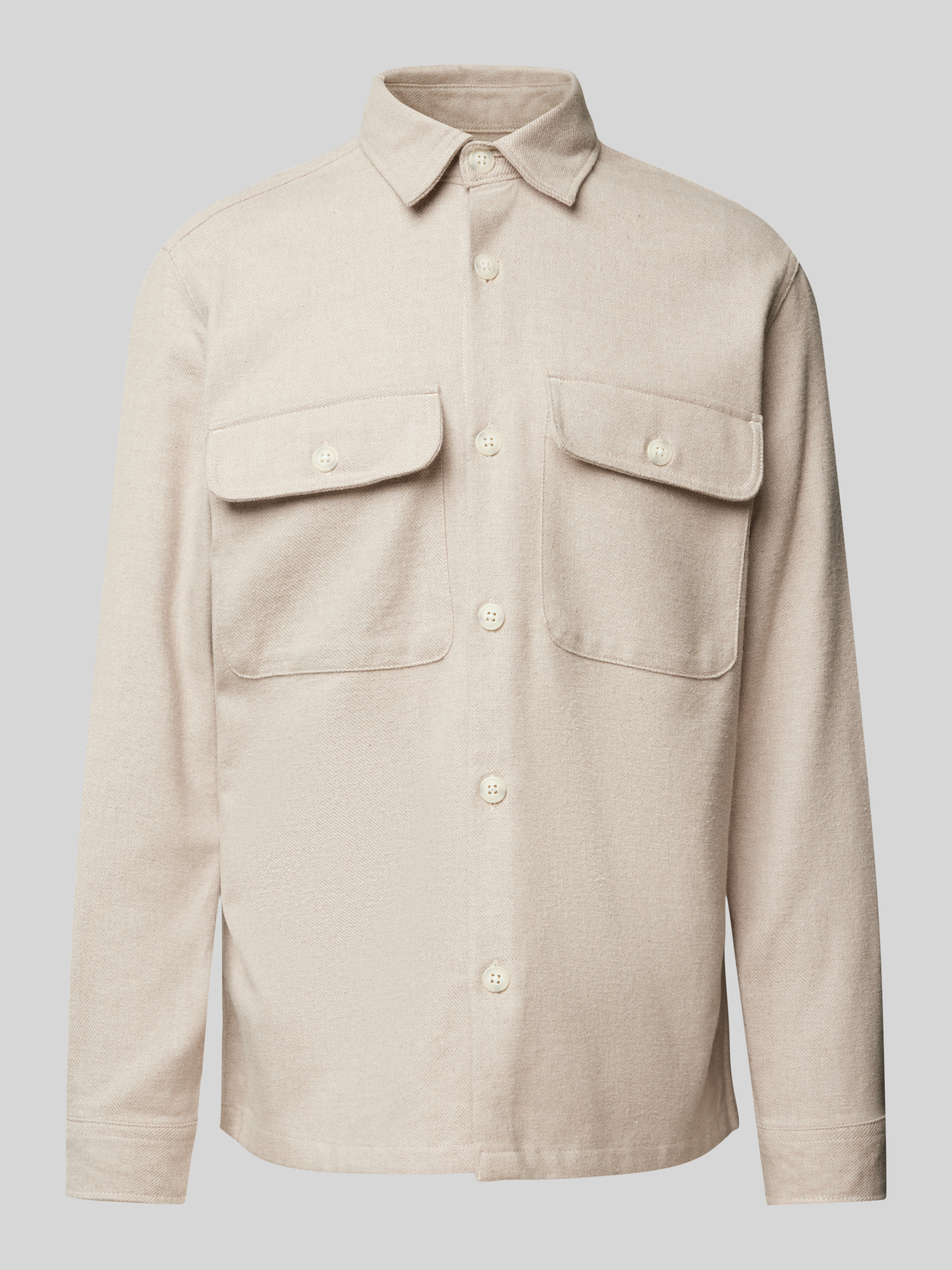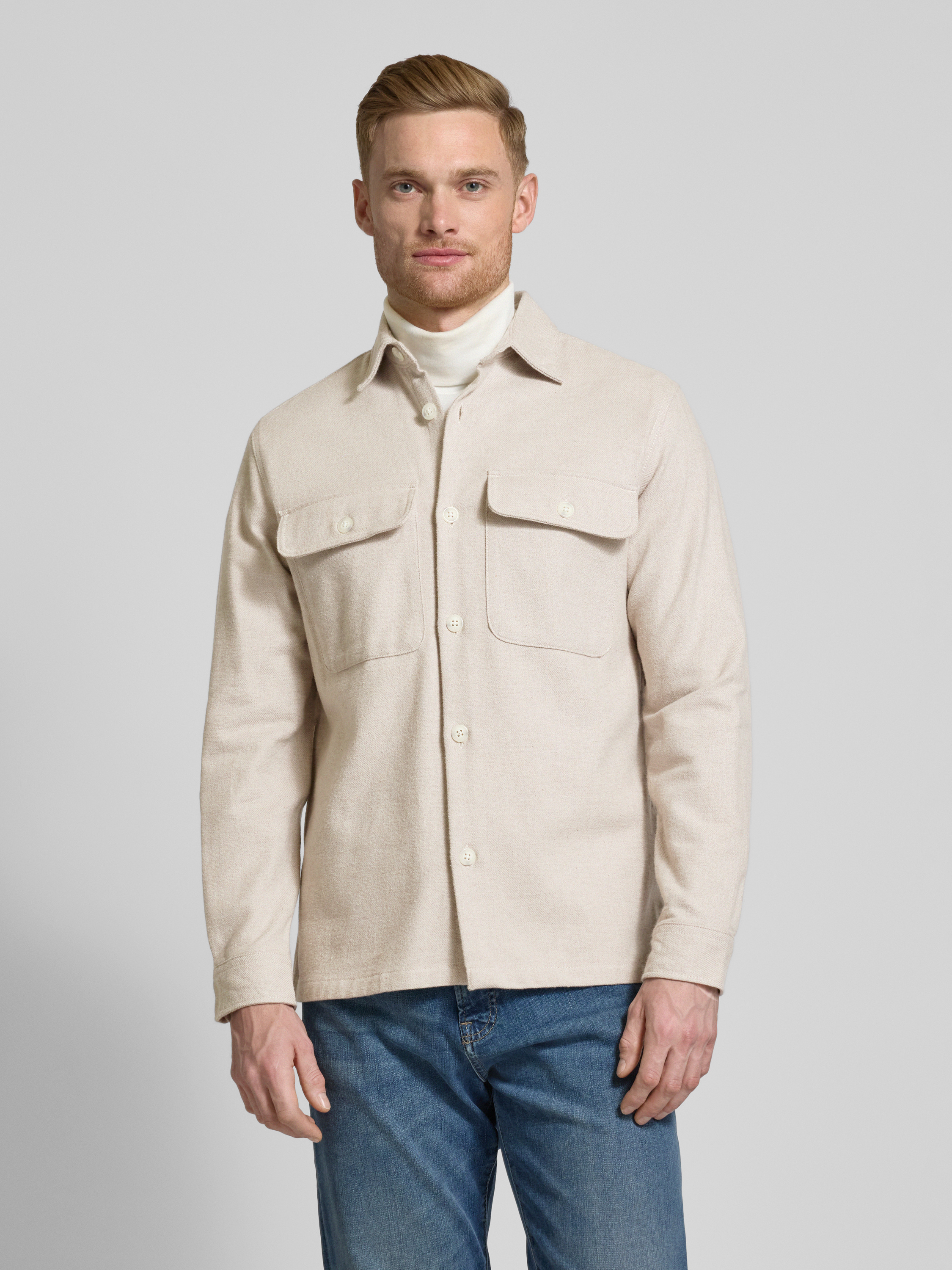 Comfort fit overhemdjack met klepzakken op de borst, model 'RAYMOND' in zand