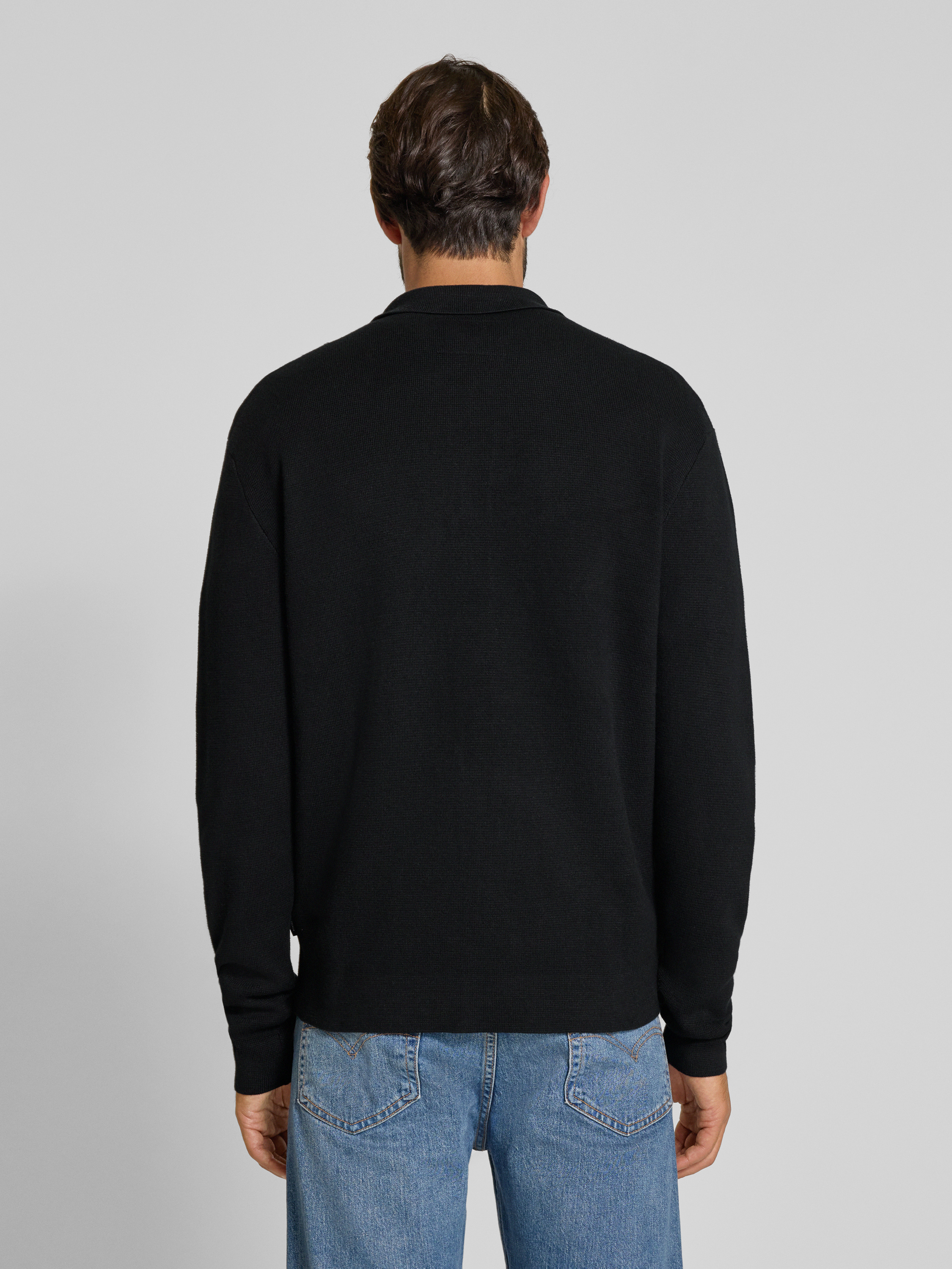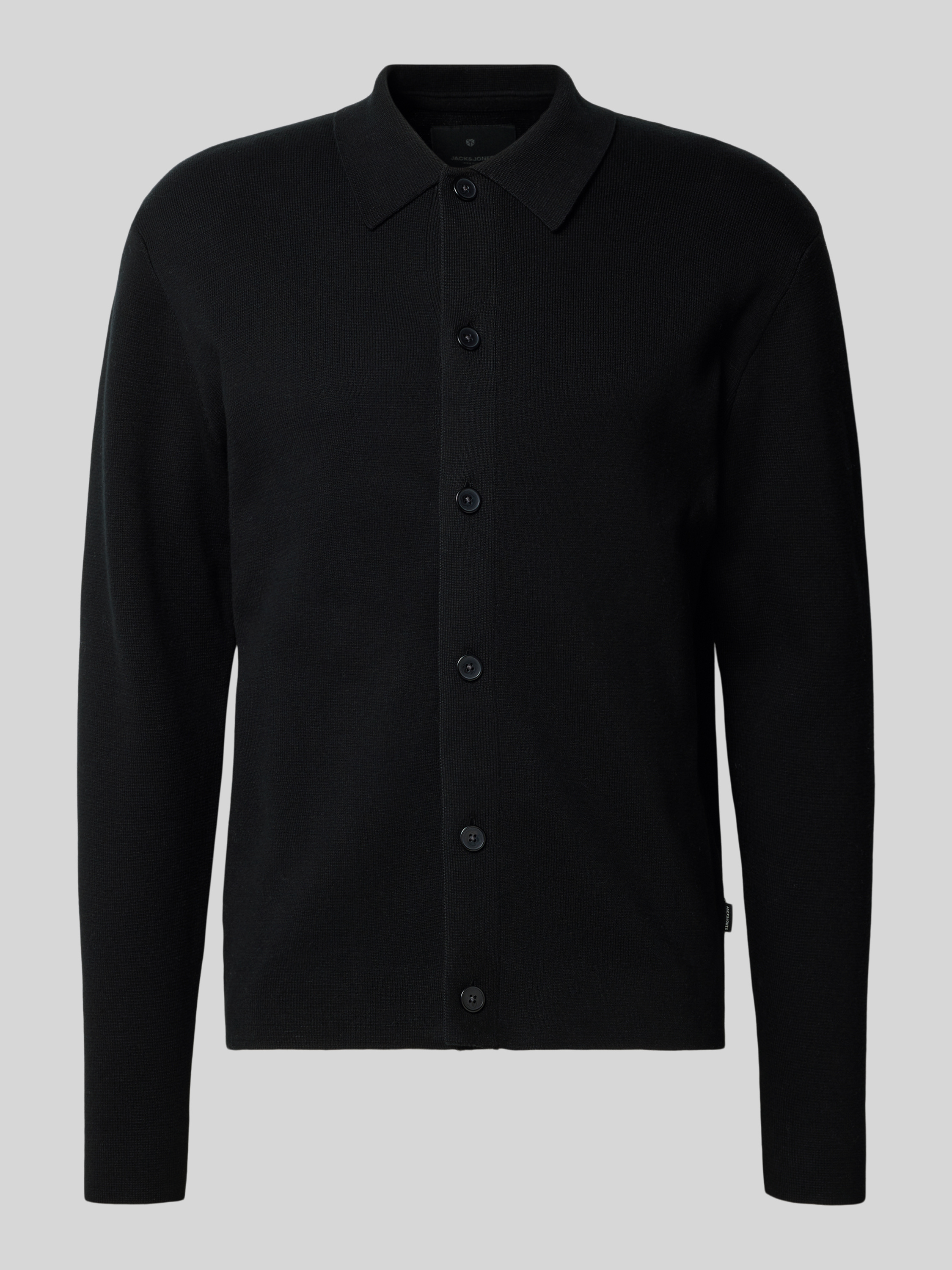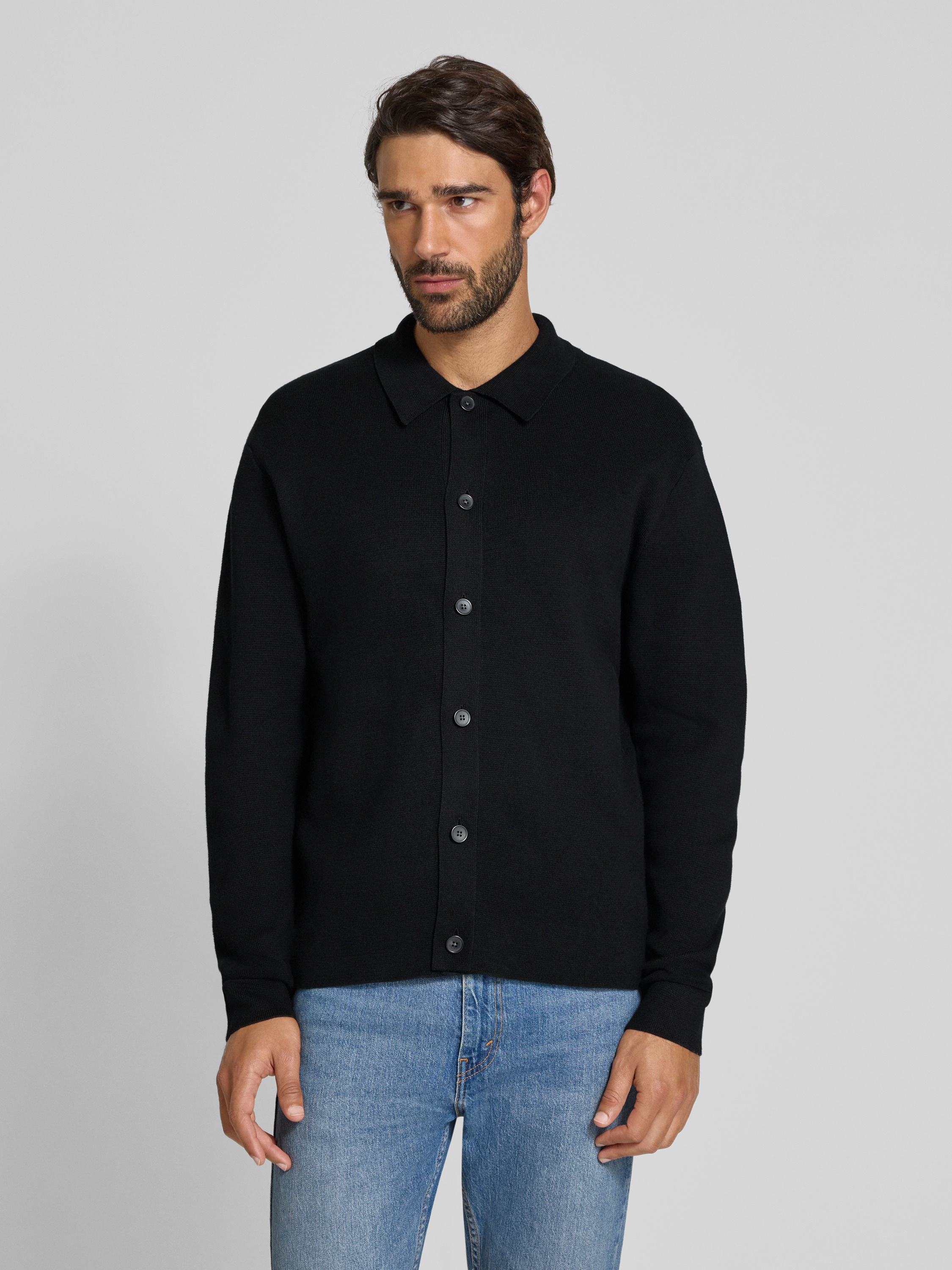 Gebreid jack met kentkraag, model 'MILANO' in zwart