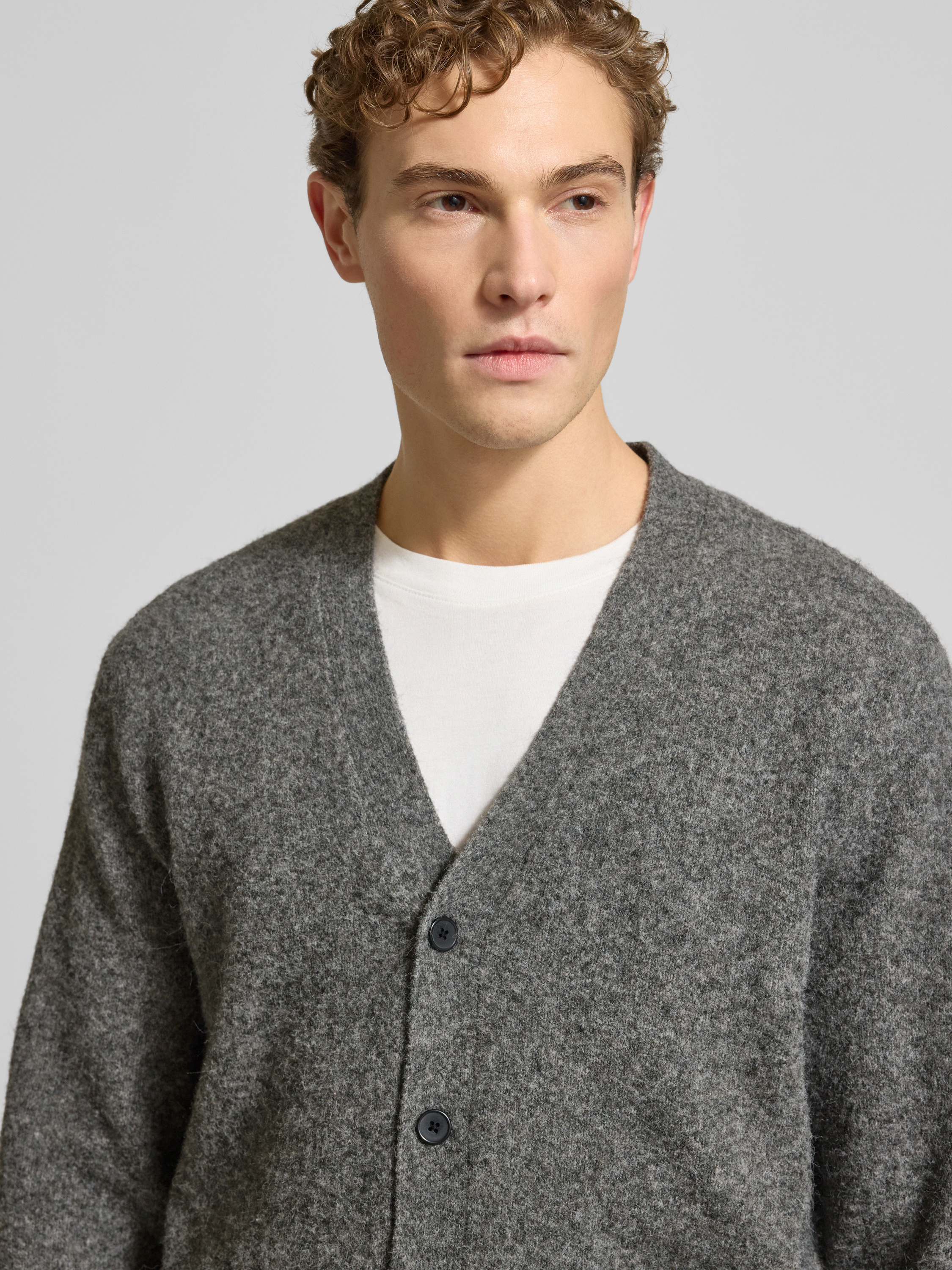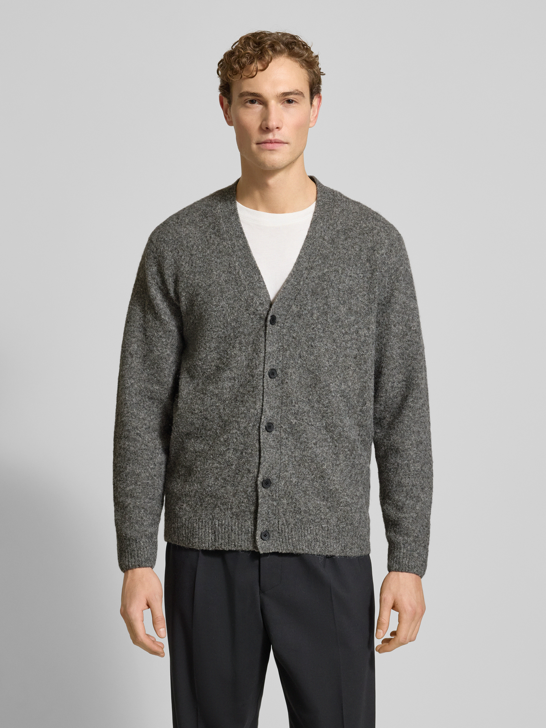 Jack & Jones PremiumGebreid jack met knoopsluiting, model 'BLASIMON' in middengrijs gemêleerd